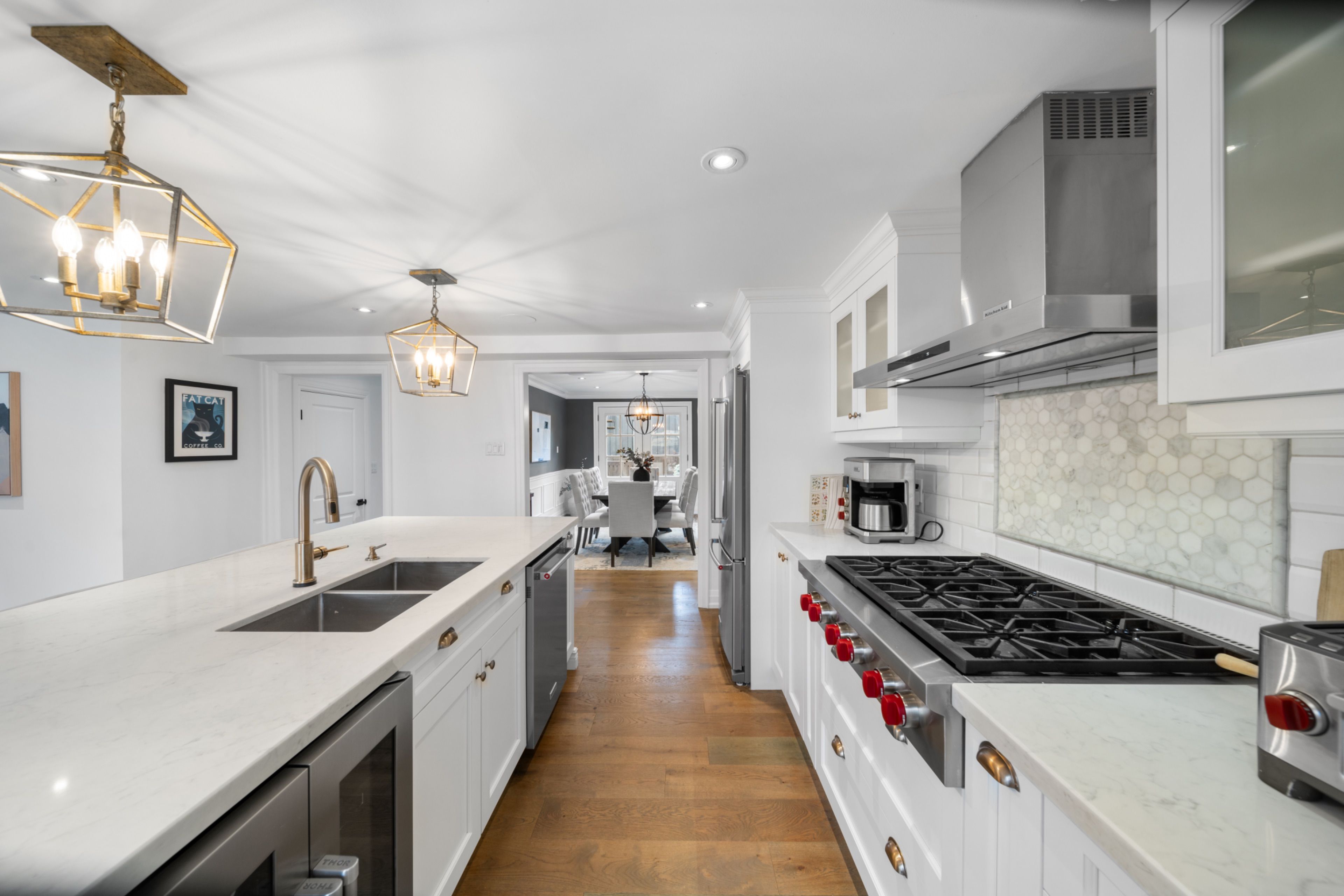 • Fully renovated kitchen featuring modern appliances and breakfast bar.