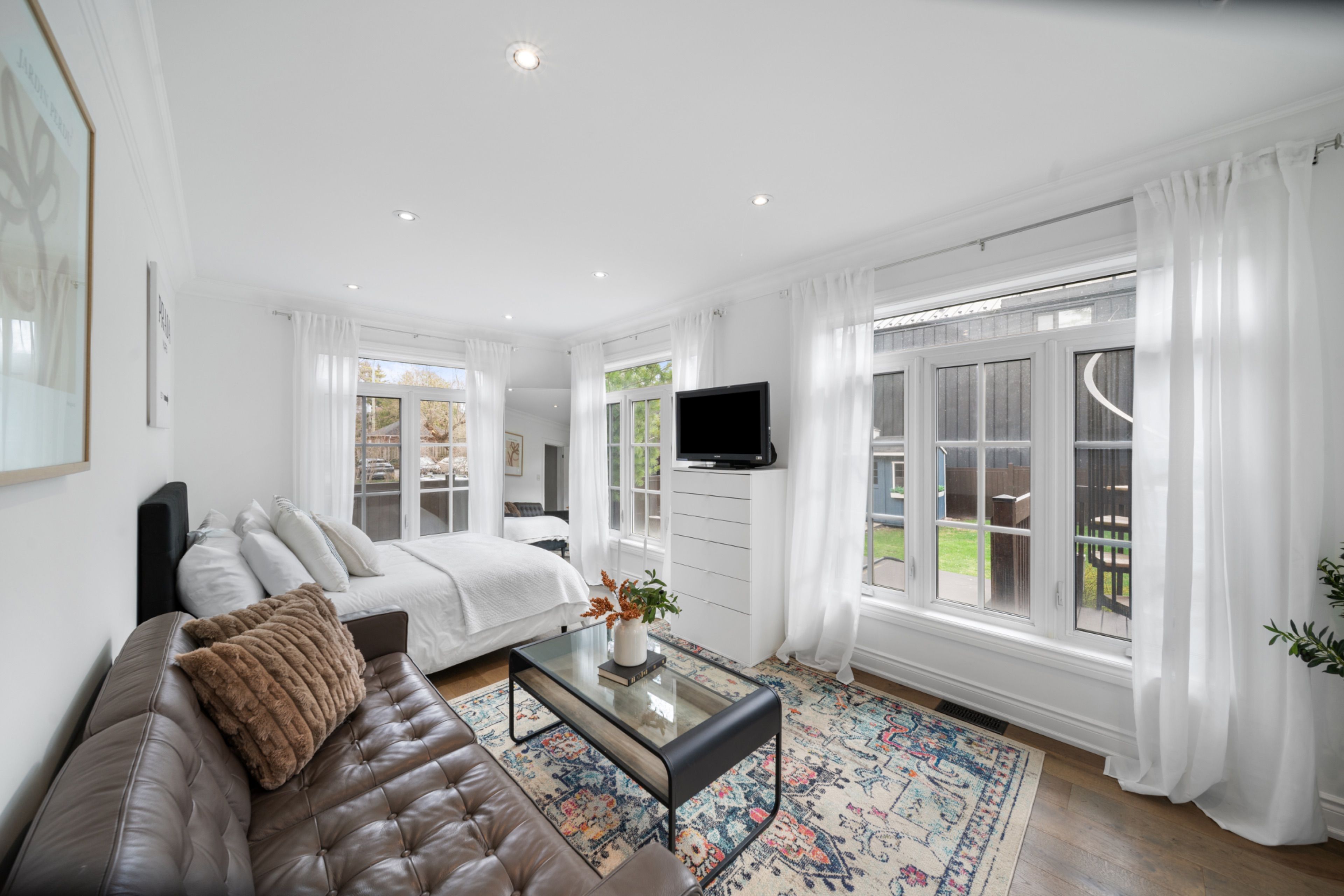Situated on prestigious mississauga road in the heart of the village of port credit, this refined 4-bedroom, 2-bathroom home offers an elevated lifestyle just moments from the lakefront, marina, waterfront parks, and vibrant local amenities. The home features an open-concept main floor with hardwood flooring, pot lights, expansive windows that flood the space with natural light, and built-in surround sound! The fully renovated kitchen (2019) features quartz countertops, a generous breakfast bar, wolf stove, double ovens, double sink, wine fridge, and flows seamlessly into the dining room with walkout to the backyard deck. Upstairs, the primary bedroom includes a vaulted ceiling and walkout to a private rooftop terrace a second bedroom also offers direct terrace access with views over the landscaped backyard, complemented by a striking outdoor spiral staircase connecting both levels. Both bathrooms are finished with elegant marble countertops, while the finished basement provides additional versatile living space. Outdoors, enjoy a thoughtfully landscaped backyard complete with a deck, hot tub, and garden shed. Recent upgrades include a new driveway and curbs (2024) and new fencing (2023), with parking for up to five vehicles. Ideally located within walking distance to the go station, top-rated schools, boutique shops, and dining, with convenient access to the qew.