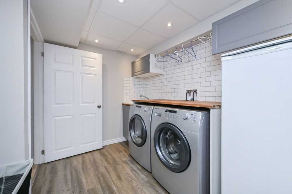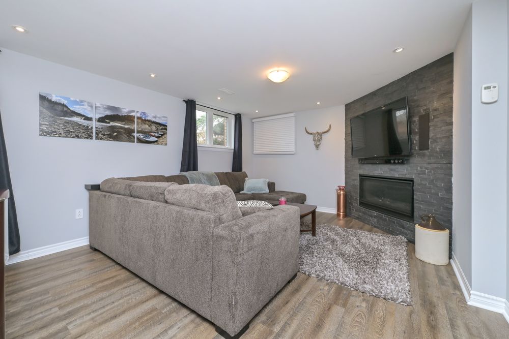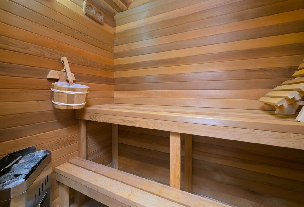 • Fully finished basement with a rec room, gas fireplace, and sauna.