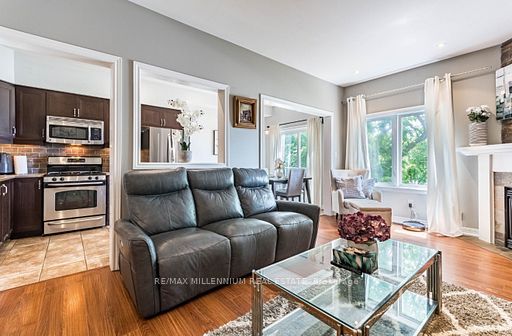 Location, location, location!!! Nestled in a quiet cul de sac, this 4 bed, 4 bath executive townhome is your new sanctuary. Enjoy gorgeous views of the treed ravine as you cozy up beside your gas fireplace, or decompress in your large soaker tub. Modern sophisticated design and attention to detail describe the finishes of this home. Main level includes an updated kitchen with quartz counters, stainless steel appliances, herringbone pattern backsplash and walk-in pantry. Sliding doors off the dining area lead to your elevated deck with picturesque views beyond. Living room has hardwood floors, gas fireplace and more scenic views. The updated powder room with wood slat accent wall completes the main level. Split upper level offers a large primary bedroom with 4 piece ensuite and walk-in closet, 2 additional bedrooms, 4 piece main bath, upper level laundry and den area. Lower level includes a cozy rec room, additional bedroom, full bathroom and walkout to rear patio. Conveniently located close to hwy 403 and the linc. Minute walk to all your daily stores- walmart, canadian tire and more. Truly a pleasure to view! Pride of ownership is evident!!