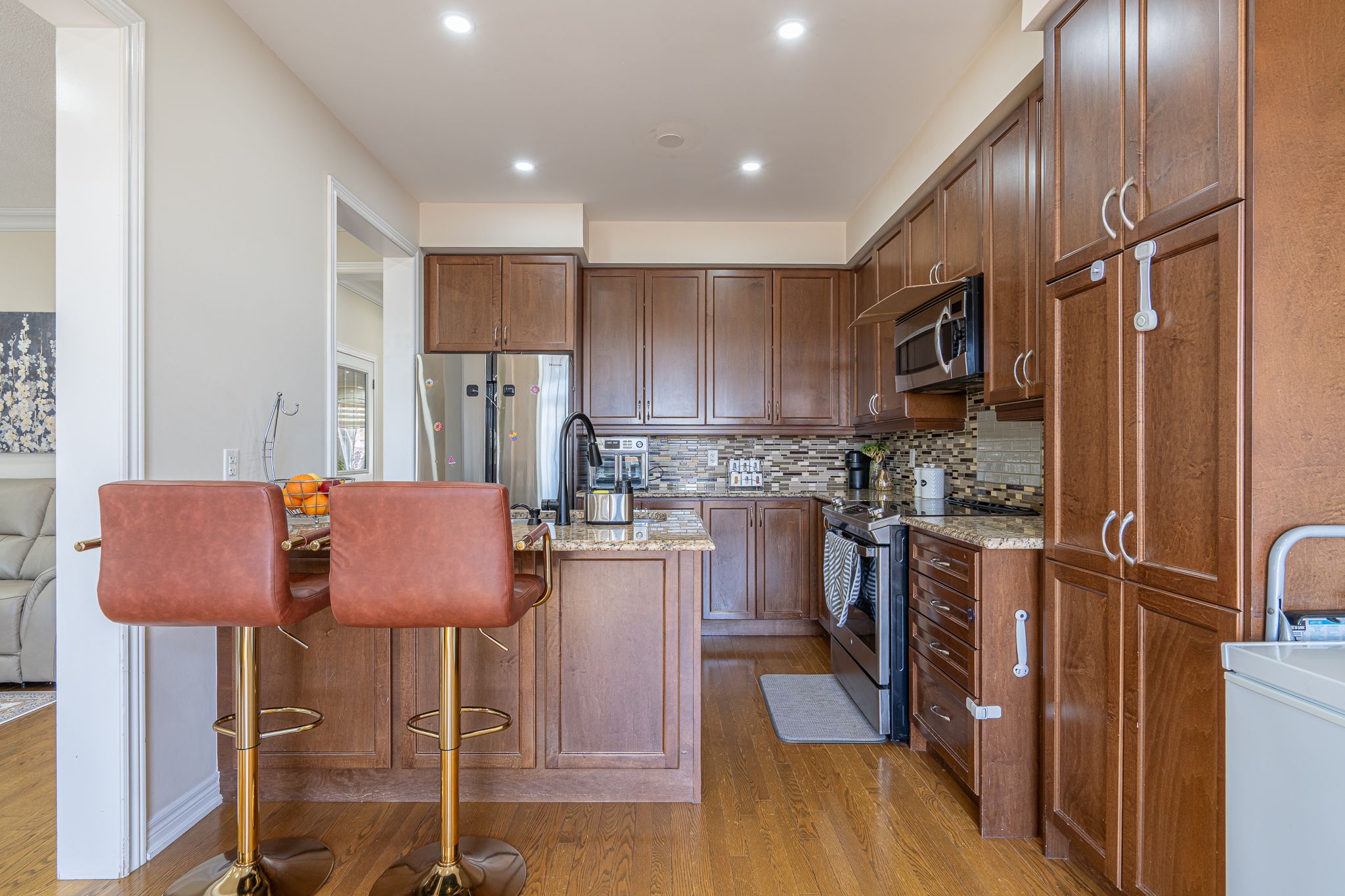 Beautifully upgraded and spacious approx. 2,400 sqft. Home featuring 4+2 bedrooms and 4 bathrooms, including a professionally finished basement with separate entrance offering 2 bedrooms and a full bath-ideal for extended family or potential rental income. The second floor boasts a luxurious primary suite with a 5-piece ensuite and walk-in closet. The main level offers a functional layout with separate family room and combined living and dining areas, complemented by 9 ft ceilings, hardwood flooring, elegant oak staircase, and modern pot lights throughout. The upgraded kitchen is equipped with stainless steel appliances and a bright breakfast area with walk-out to the backyard deck. Situated in a highly sought-after location close to schools, hospitals, shopping plazas, and convenient access to highway 410, this stunning home presents an exceptional opportunity not to be missed.