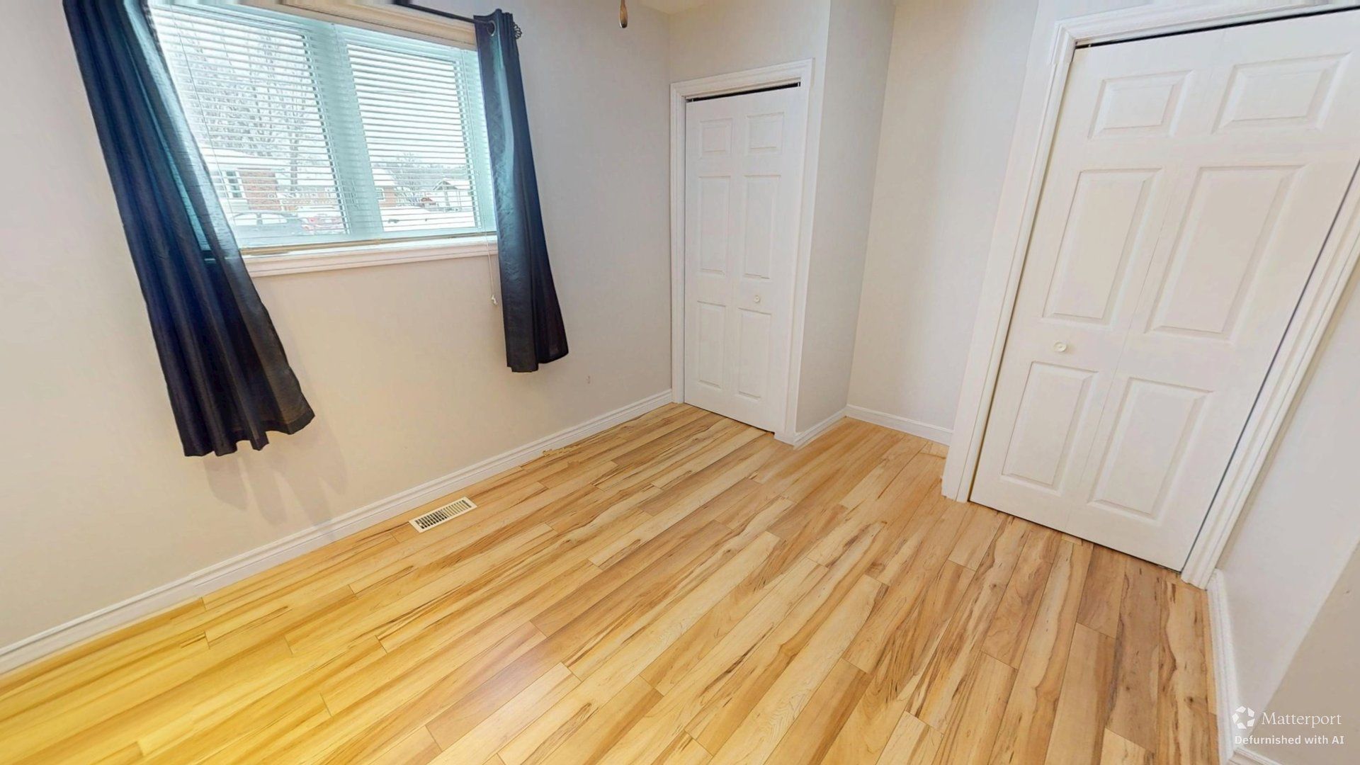 • Bright living room with large windows and beautiful floors for relaxation.