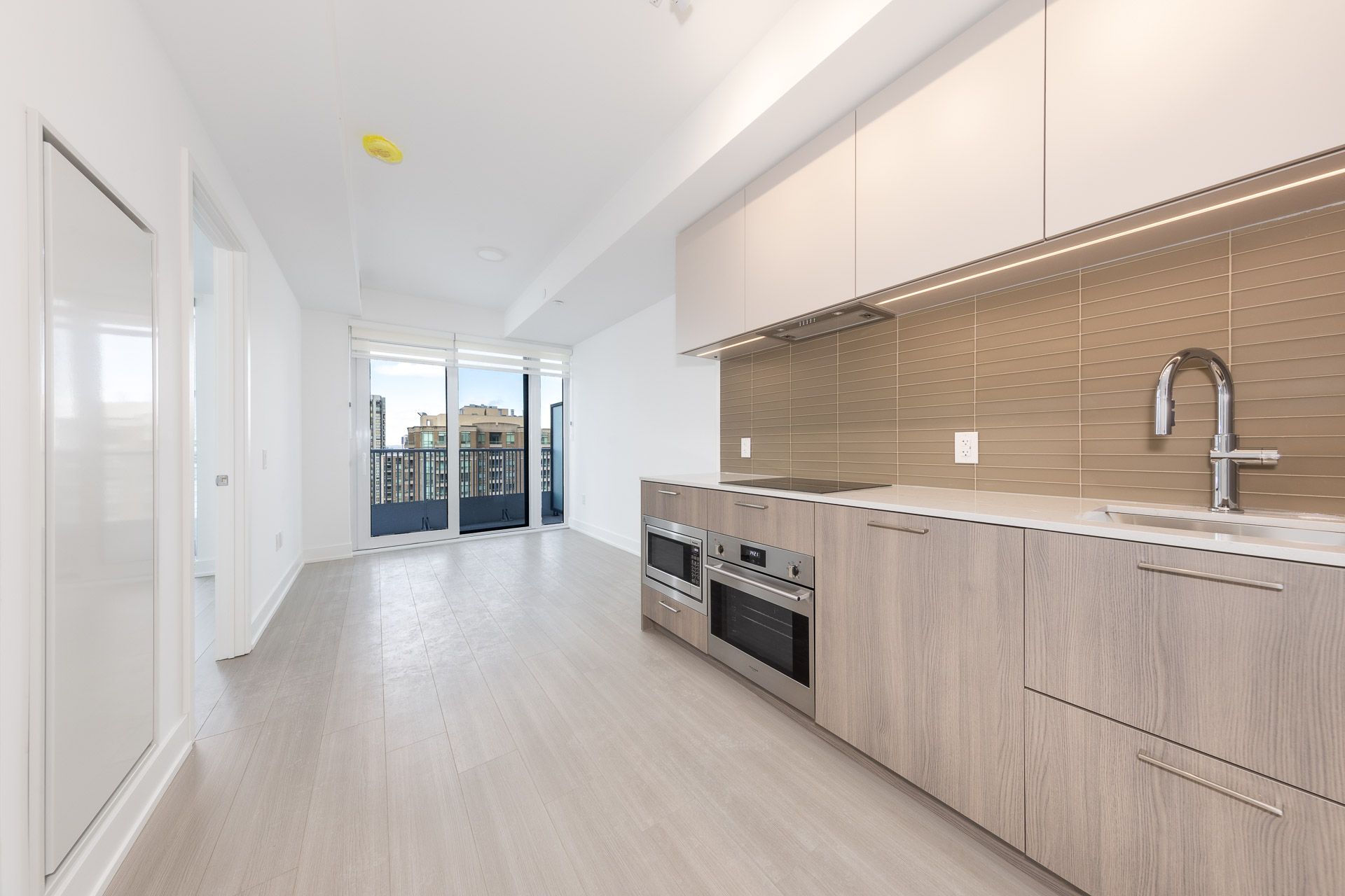 Brand new luxury 1-bed living in the heart of north york at yonge & finch. Never lived in and move-in ready immediately. Pristine condition with brand new appliances throughout. Bright and efficient layout thoughtfully designed to maximize space and comfort with virtually no wasted space. Floor-to-ceiling windows fill the unit with natural light and frame an unobstructed view, complemented by contemporary laminate flooring and roller blinds throughout - blackout blinds in the bedroom for optimal privacy and comfort, with zebra blinds in the living area. The open concept living and dining area features a walk-out to a private balcony, while the modern kitchen offers integrated appliances, quartz countertops, and sleek cabinetry. Spacious bedroom with ample closet space. Premium building amenities include a fully equipped gym, yoga studio, virtual game room, party lounge, 24-hour concierge service, and more. Prime transit-oriented location just steps to finch subway, go and viva transit, along with numerous restaurants, supermarkets, parks, and shoppers drug mart.