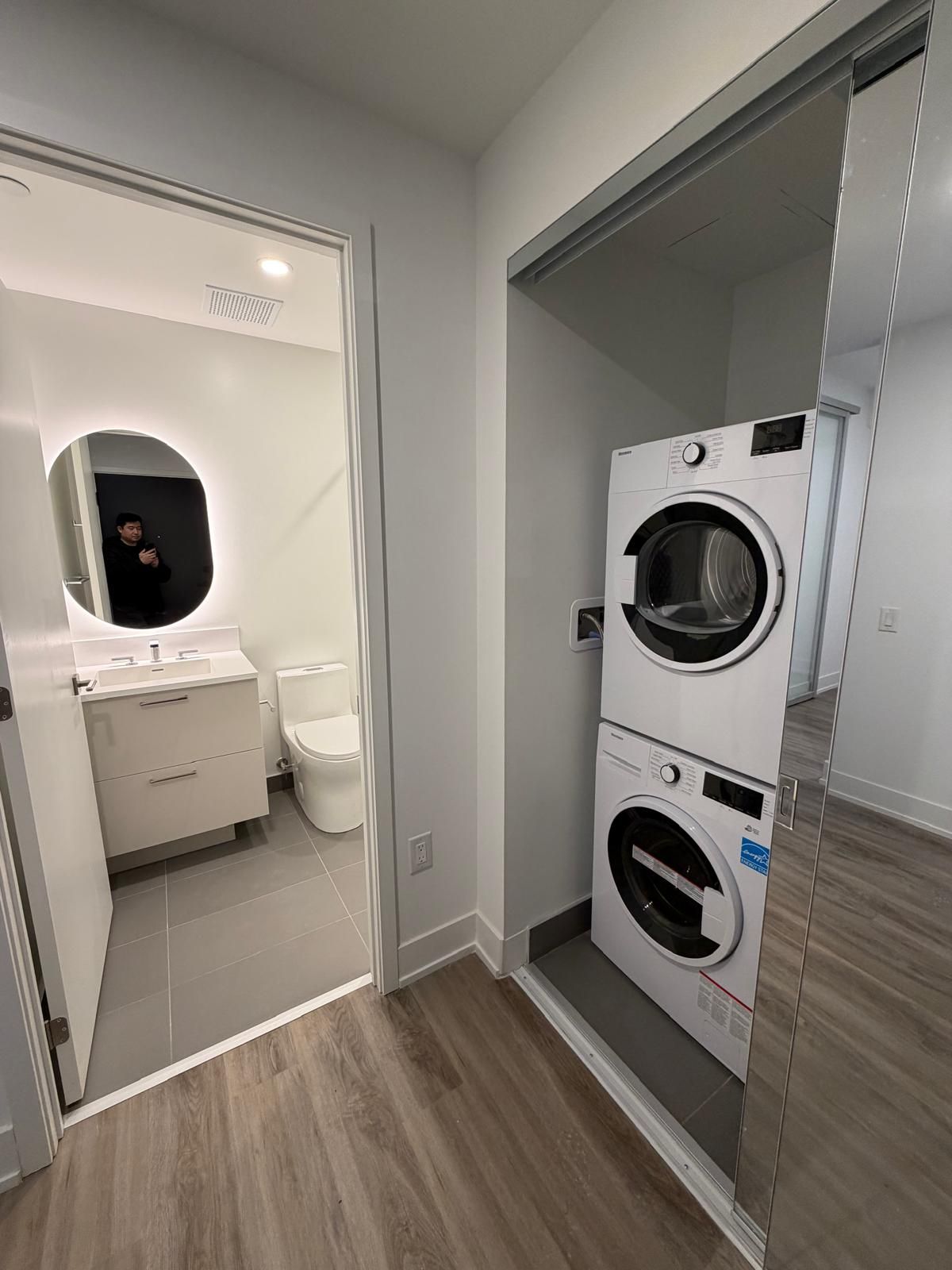 Welcome to olive residences by capital developments, ideally located steps from finch subway station in the heart of north york. This 18th-floor 2-bedroom, 2-bathroom suite offers a functional 612 sq. Ft. Layout with unobstructed east-facing views, providing abundant natural light and open skyline outlooks. The suite features 9-foot smooth ceilings, floor-to-ceiling windows, and engineered laminate flooring throughout. The contemporary open-concept kitchen is finished with integrated european-style appliances, quartz countertops, modern backsplash, and kohler fixtures, blending sleek design with everyday practicality. Two well-proportioned bedrooms and two full bathrooms create a comfortable and efficient living space ideal for end-users or investors alike. Residents enjoy approximately 11,000 sq. Ft. Of premium indoor and outdoor amenities, including a fitness studio, yoga room, social and party lounges, co-working spaces, meeting rooms, children's playroom, virtual sports room, and landscaped outdoor terraces. The building offers 24-hour concierge service and individually metered utilities. Unbeatable location just steps to the finch transit hub, ttc subway, shopping, dining, and everyday essentials-an exceptional opportunity to own a modern suite in one of north york's most connected neighbourhoods.