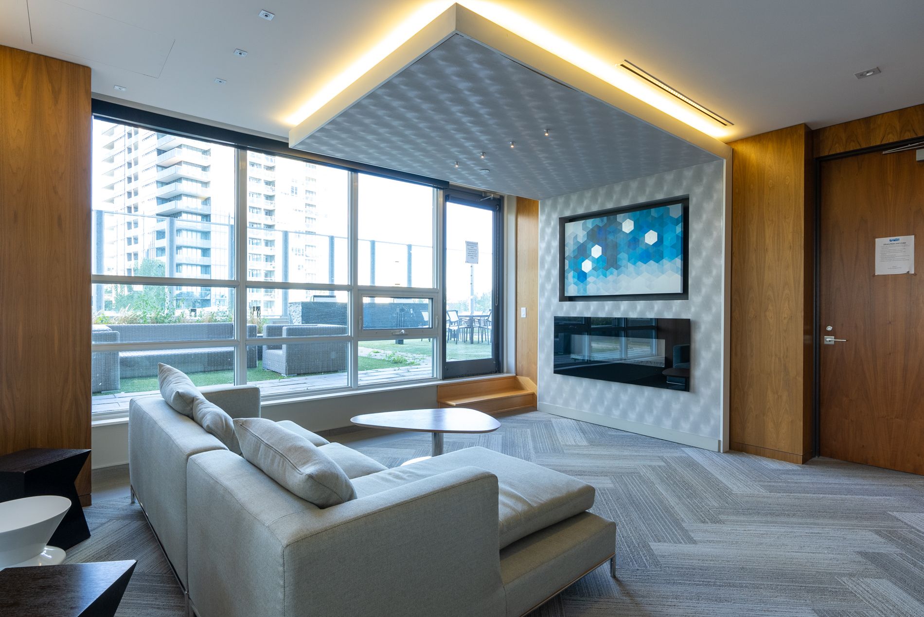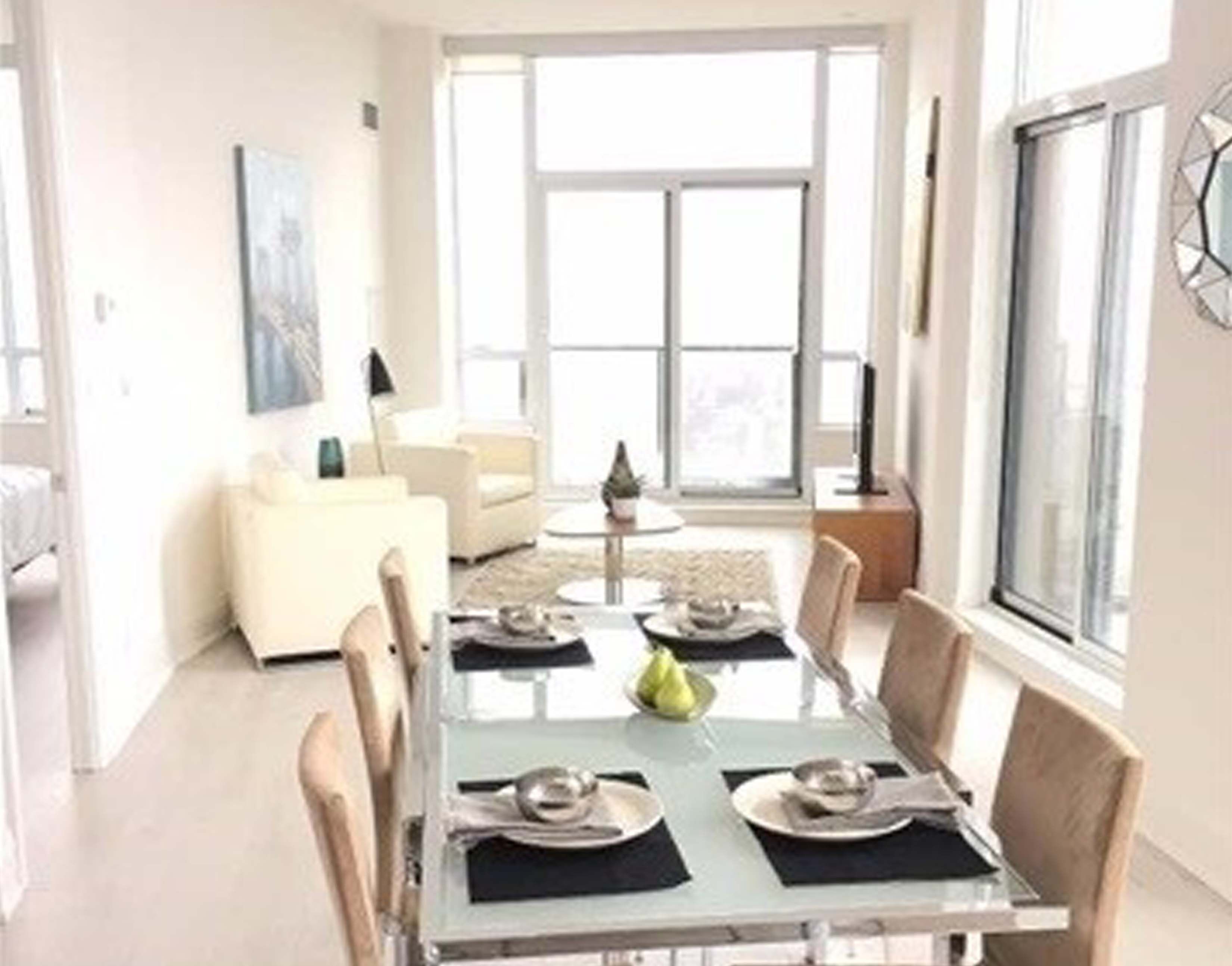 • Bright interior with 10-ft ceilings and floor-to-ceiling glass.