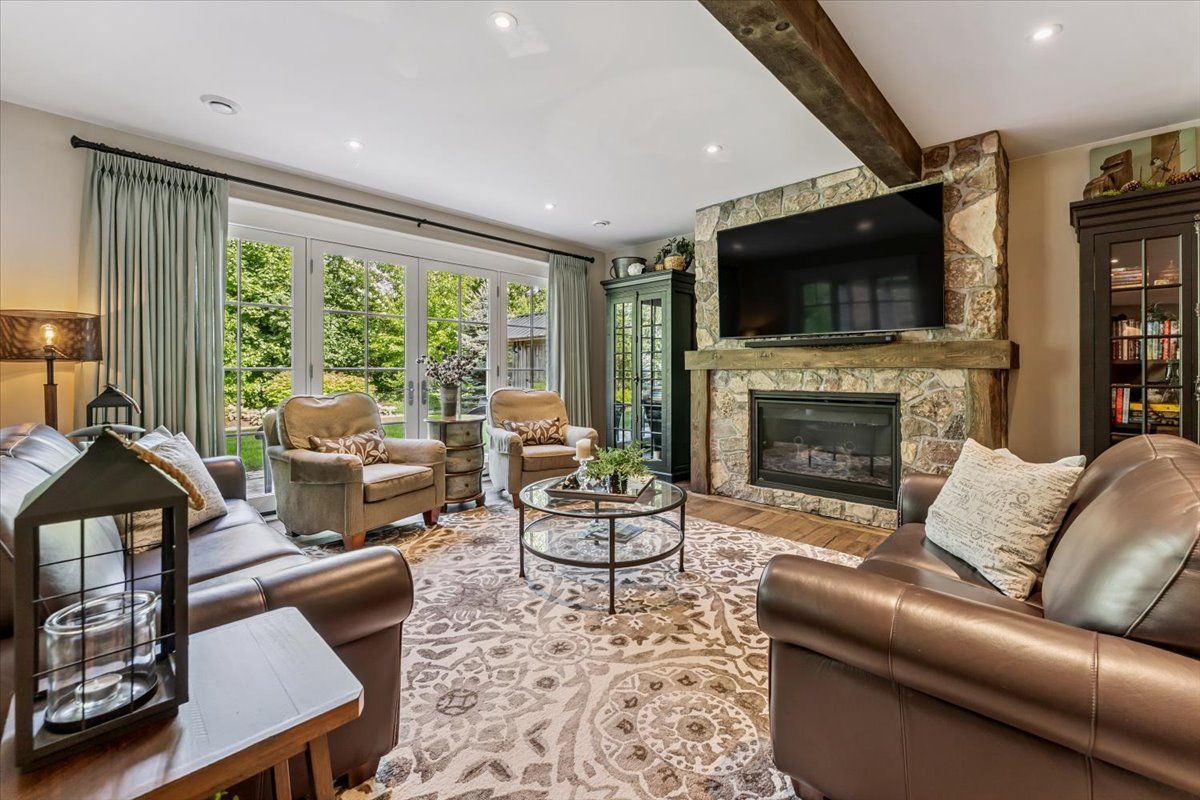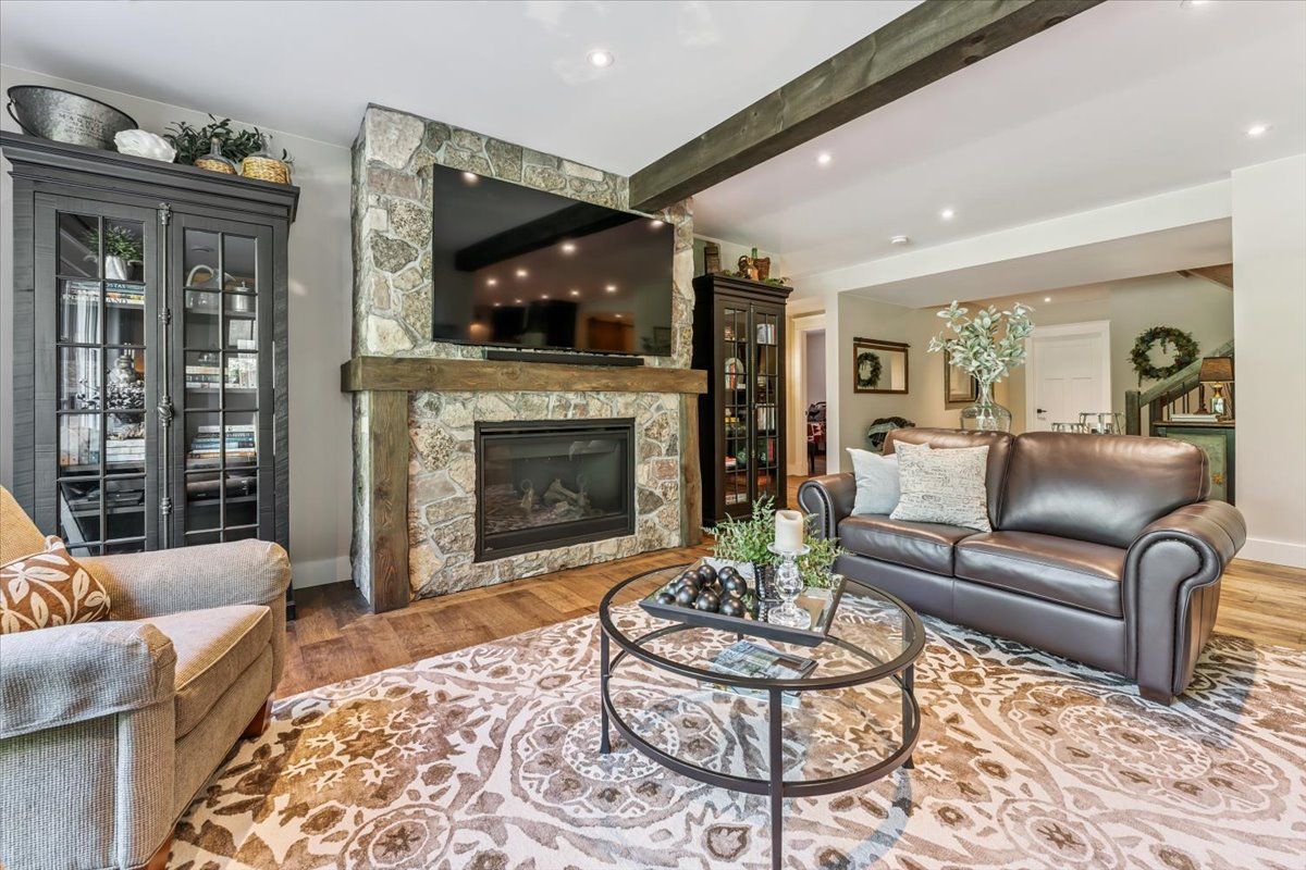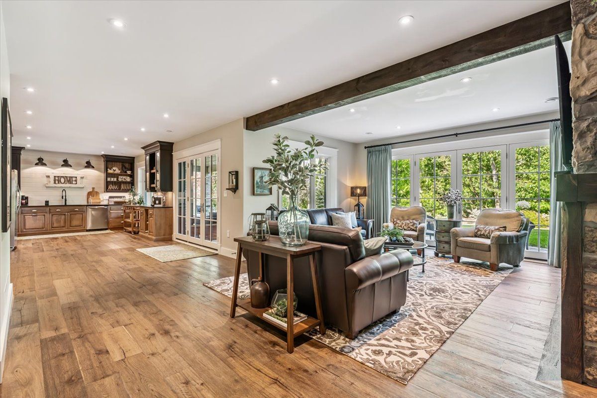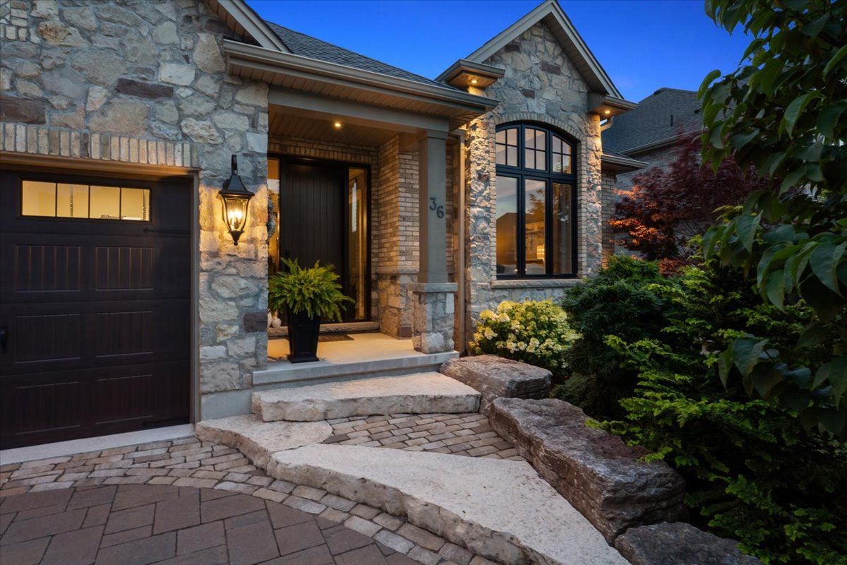 Custom bungalow in prestigious lookout point. This exceptional home is nestled in one of fonthill's most desirable neighbourhoods, is truly a masterpiece of thoughtful design and timeless elegance featured in our homes magazine. Lovingly created by the owners and brought to life by nauta home designs, every detail has been carefully curated for luxury, comfort, and functionality. Step into the great room and be immediately captivated by the vaulted shiplap and beamed ceiling, stunning stone gas fireplace, and a wall of windows framing breathtaking views of mature coniferous and deciduous trees changing beautifully with every season. The gourmet kitchen is the heart of the home, featuring a grand island, spacious dining area, and seamless access to a covered porch perfect for entertaining. A walk-in pantry and generous cabinetry provide ample storage while maintaining a clean, upscale look. The primary suite is a peaceful sanctuary with a fireplace, walk-in and double closets, and a spa- like ensuite complete with a large glass shower and luxurious soaker tub, overlooking serene backyard views. The front room, currently used as a parlour, easily converts to a main-floor bedroom with its double closet, and full bathroom just steps away. The spacious main-floor laundry adds everyday ease. As you descend to the fully finished lower level, you're greeted by soaring 9' ceilings and another beautifully appointed great room with stone fireplace and ceiling beams that mirror the upper levels elegance. This level also boasts a full second custom kitchen crafted by the same cabinetmaker, along with a charming dining area framed by a custom brick and stone accent wall evoking the feel of a rustic italian villa. Garden doors open to a covered porch and large patio area, complete with a gas bbq line an entertainers dream. Two generous bedrooms and a stylish full bathroom with a double vanity and spacious glass shower complete this level, making it ideal for extended family, guests.