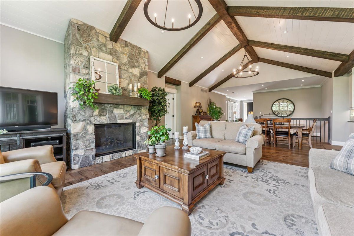 • Great room features vaulted ceilings and a stunning stone gas fireplace.