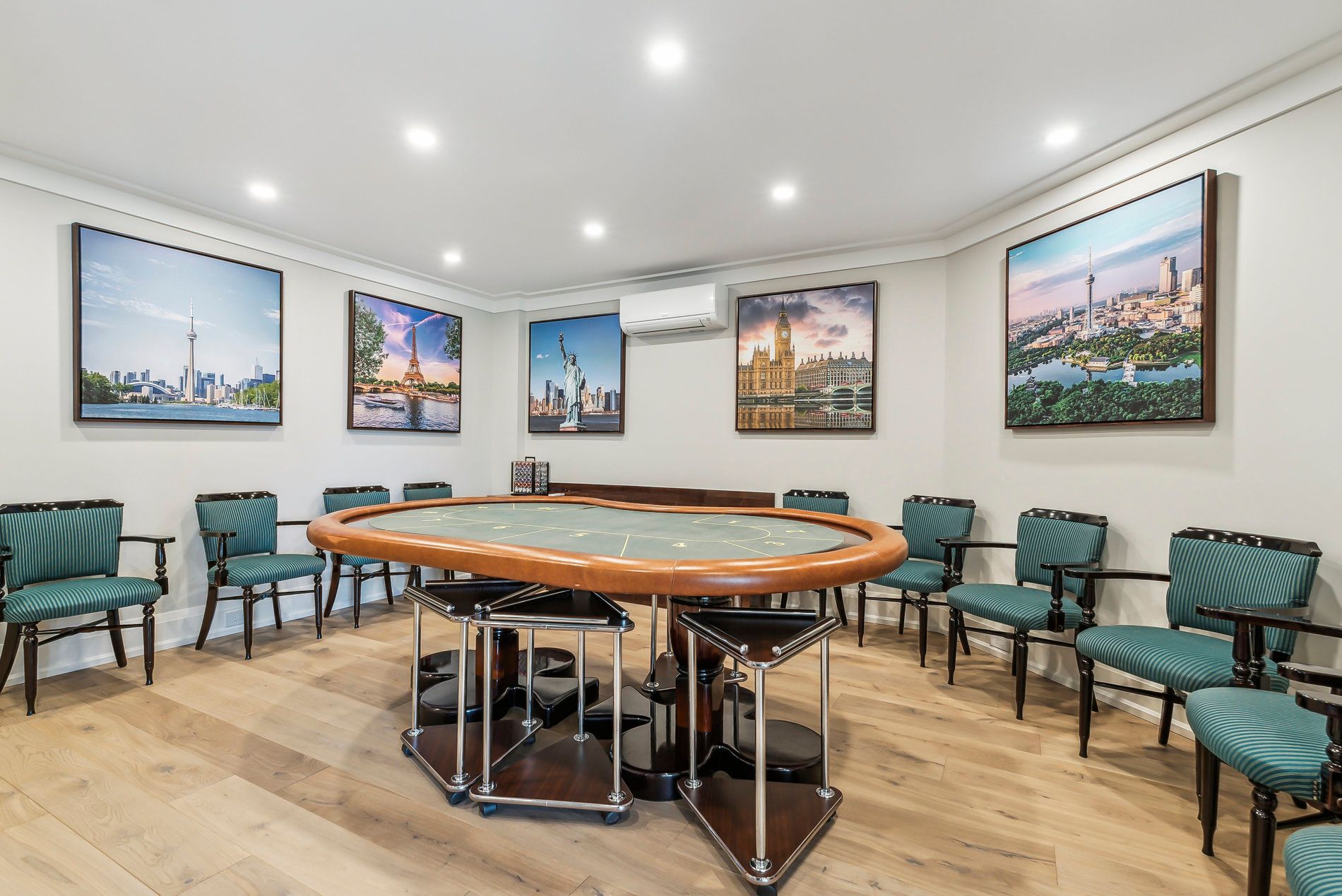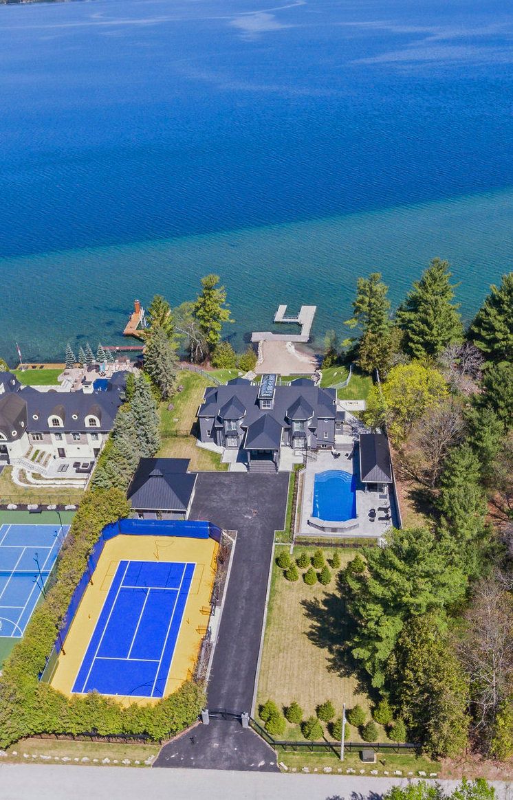 Step into the pinnacle of luxury living with this stunning custom-built waterfront home, meticulously renovated from top to bottom with the finest finishes and attention to detail. Set against the backdrop of panoramic lake views, this architectural masterpiece offers a luxurious floor plan designed for the most discerning tastes. Floor-to-ceiling windows and doors capture the picturesque lake vistas, infusing the home with natural light and creating an atmosphere of serenity. The heart of the home, the gourmet kitchen, features top-of-the-line appliances, premium cabinetry, and expansive countertops, providing the perfect setting for culinary masterpieces and casual gatherings alike. Entertain in style in the large formal dining room, adorned with custom built-ins and offering a sophisticated backdrop for memorable dinners and celebrations. Enhancing accessibility, an elevator ensures effortless movement between levels, catering to both practicality and luxury. A three-car garage provides ample space for vehicles and storage, while ensuring convenience and security. Step outside to your private retreat, where extensive landscaping and stonework create a picturesque backdrop for relaxation and entertainment. Enjoy a swim in the pool with cascading waterfalls, unwind in the hot tub, or indulge in a friendly game on the tennis court. Pamper yourself in the sauna and steam room, catch a movie in the theater room, or work from home in the tastefully designed office with a double-sided fireplace. An open-concept layout seamlessly connects the living spaces, offering a fluid transition from the kitchen to the poolside terrace, perfect for hosting gatherings and enjoying indoor-outdoor living.