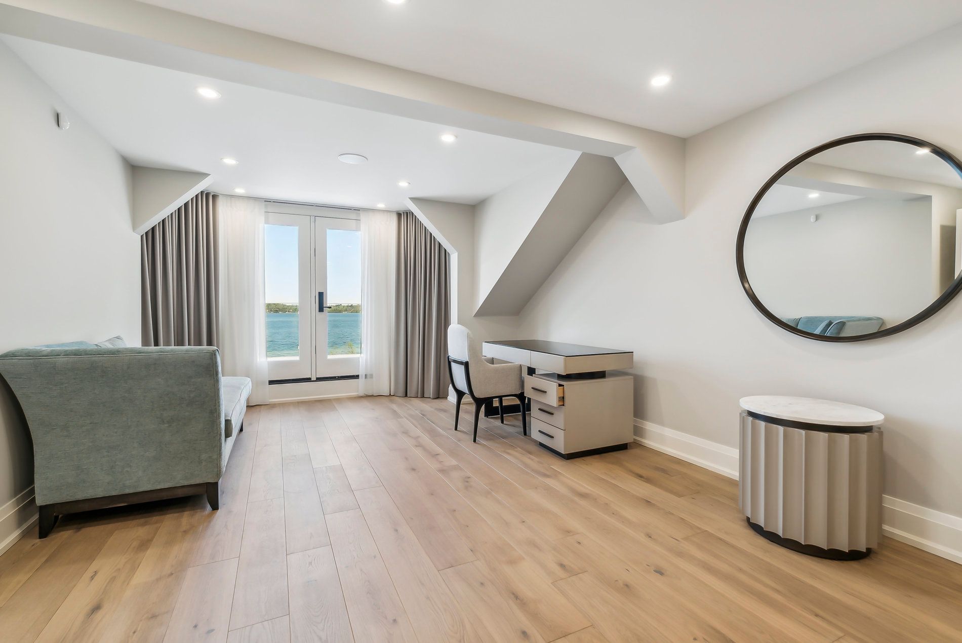 • Custom-built waterfront home with panoramic lake views and natural light.