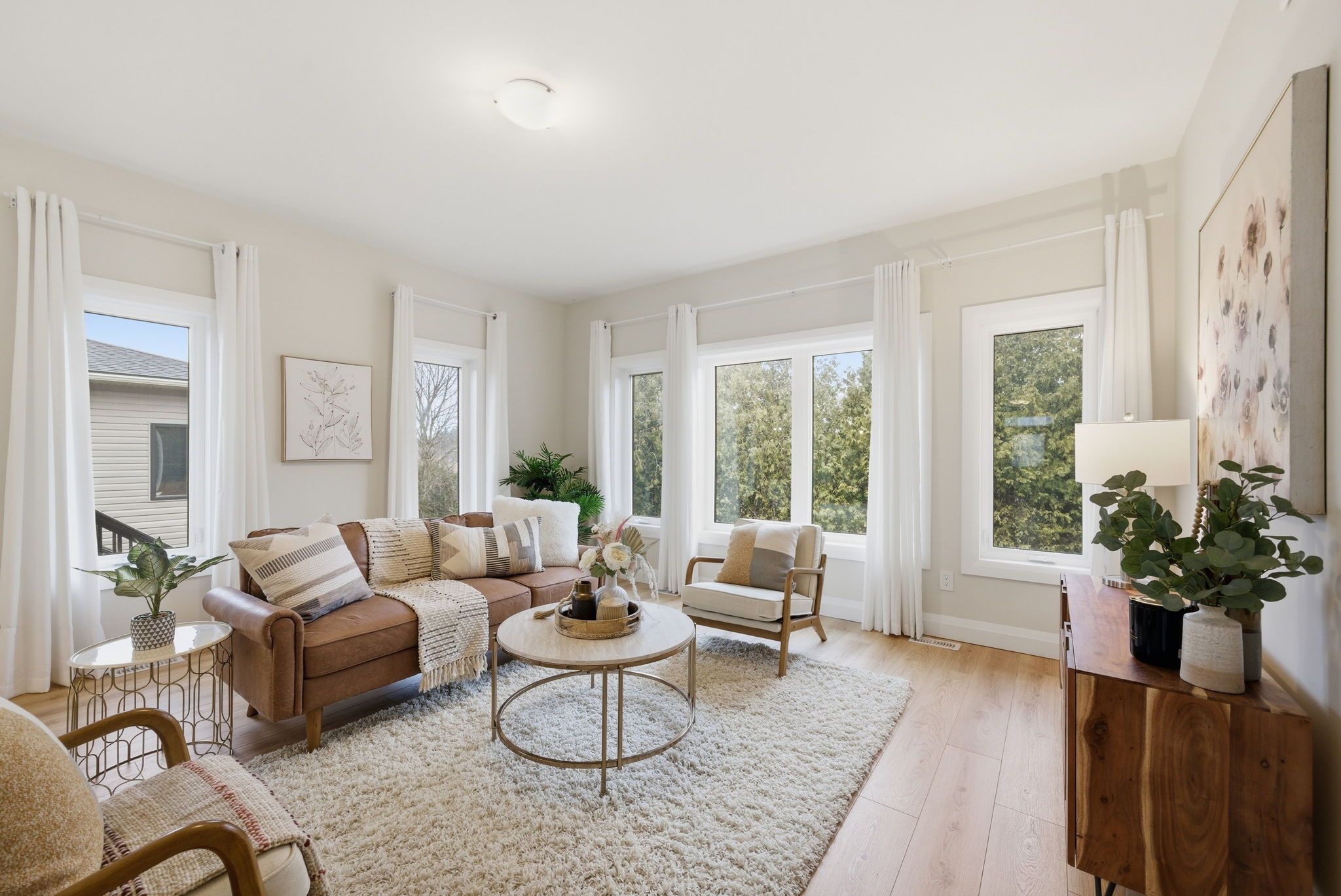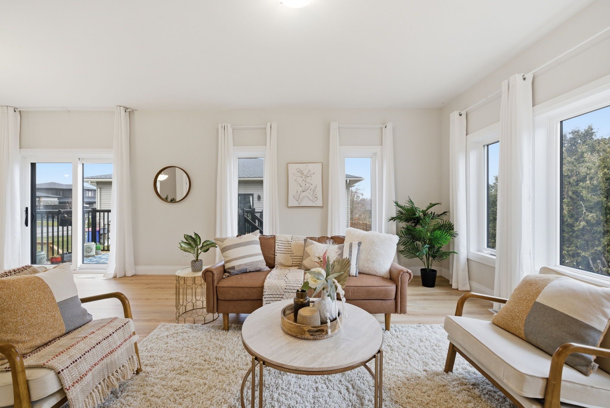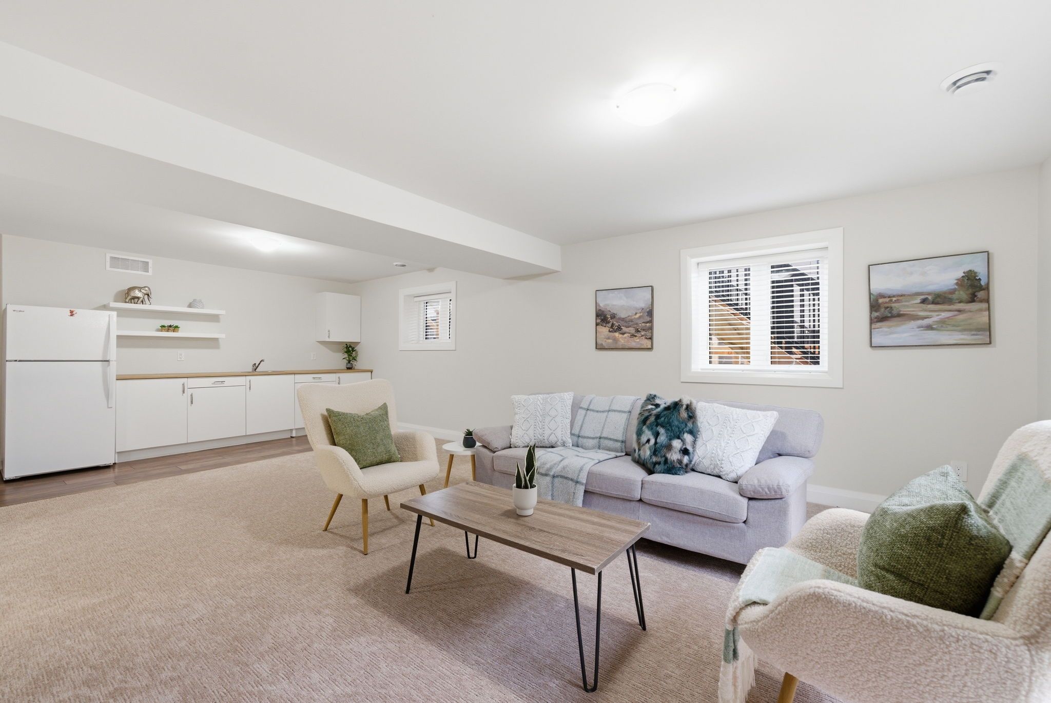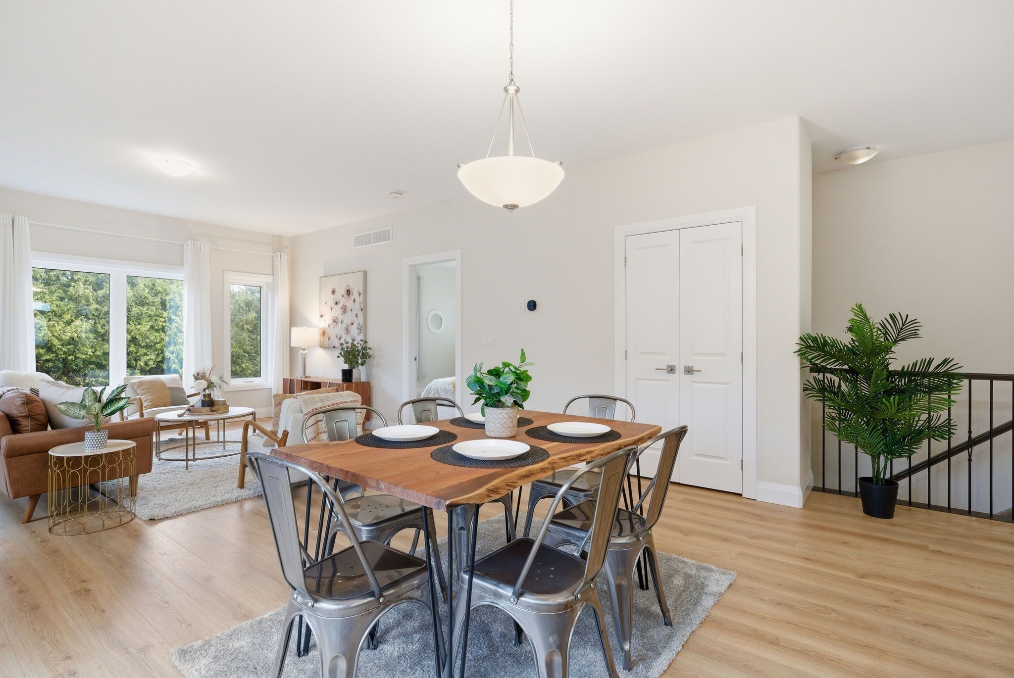 • Bright open-concept main floor with modern kitchen and high ceilings.