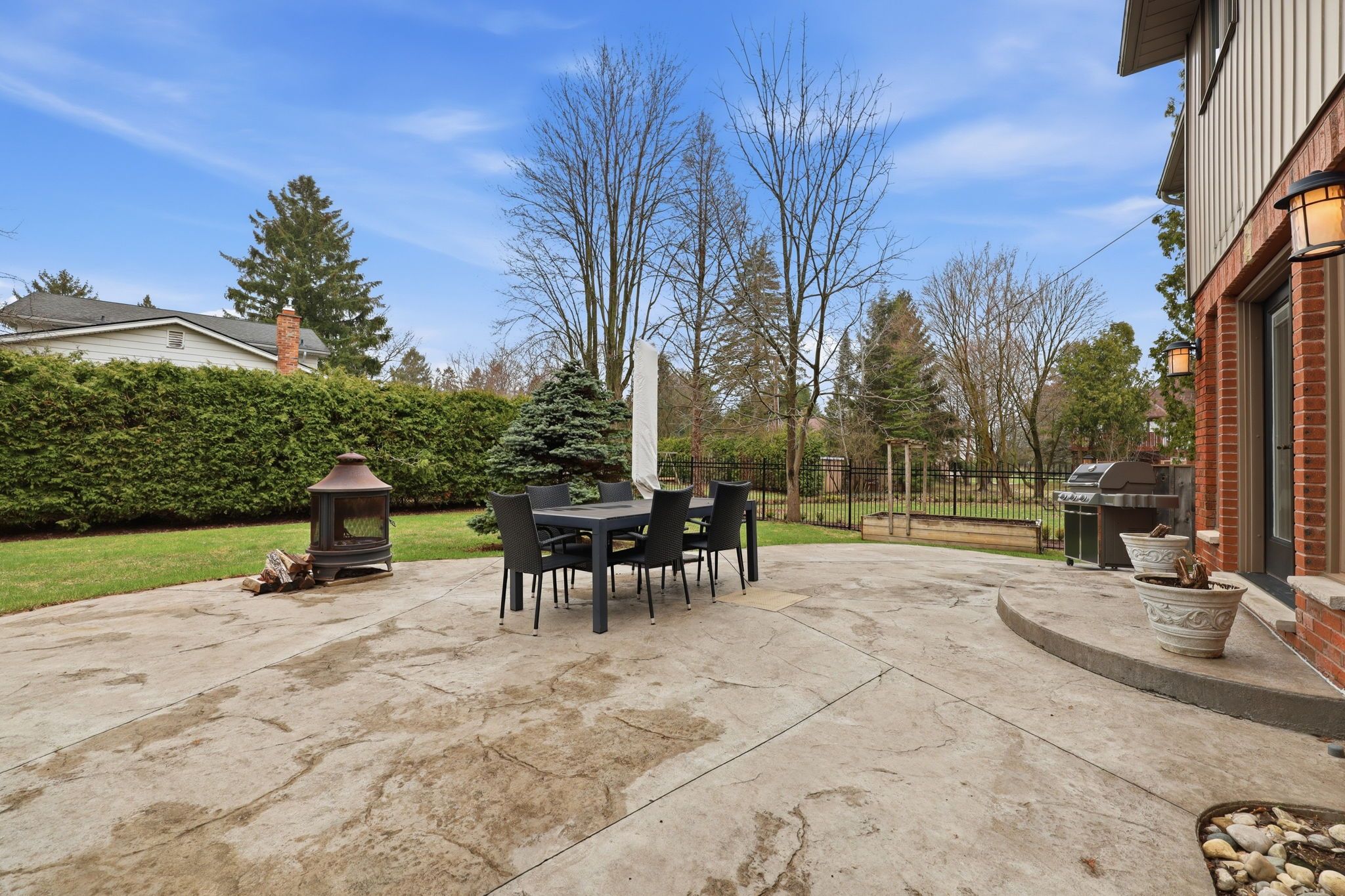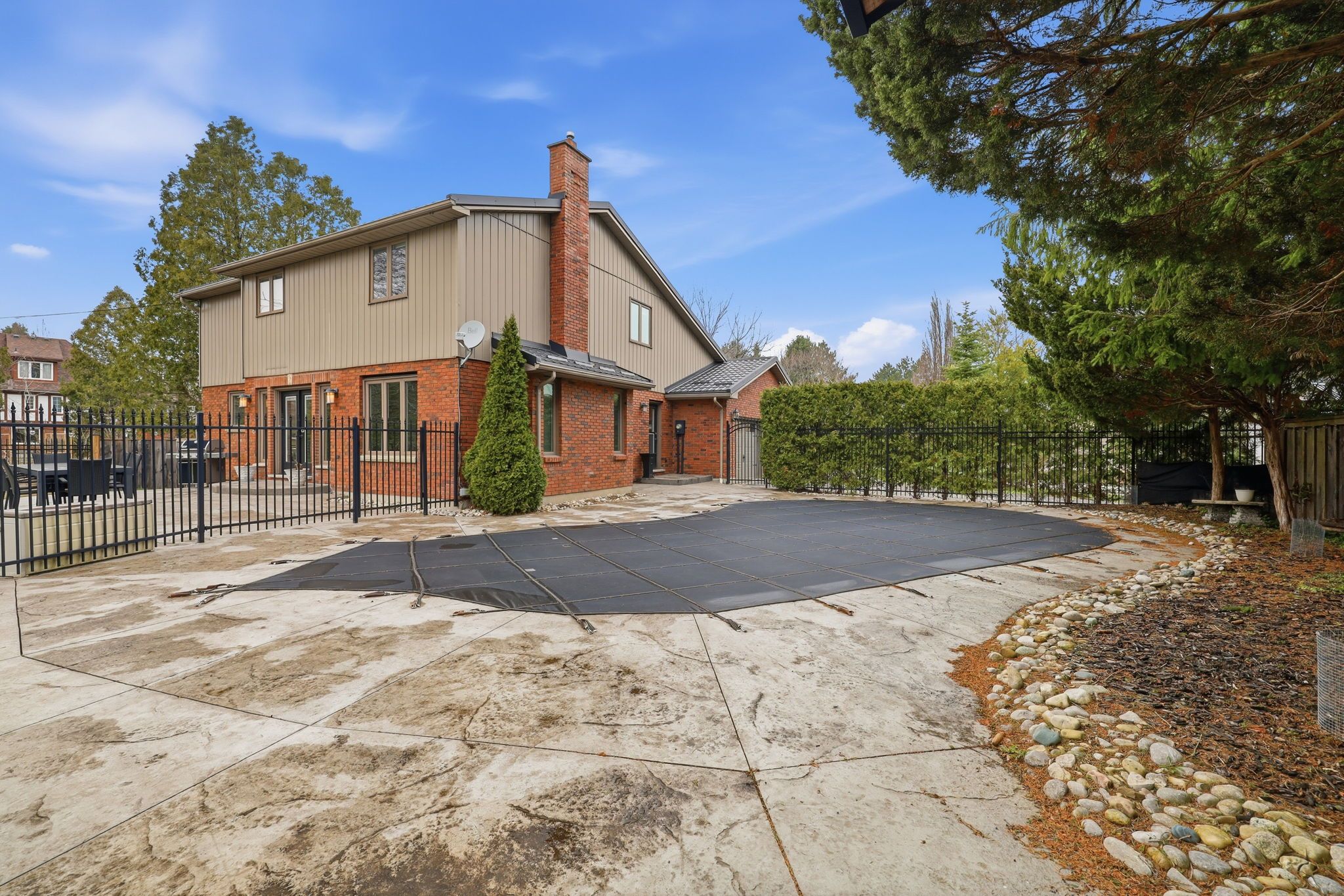 • Backyard features a remodeled pool, stamped concrete, and ample green space.