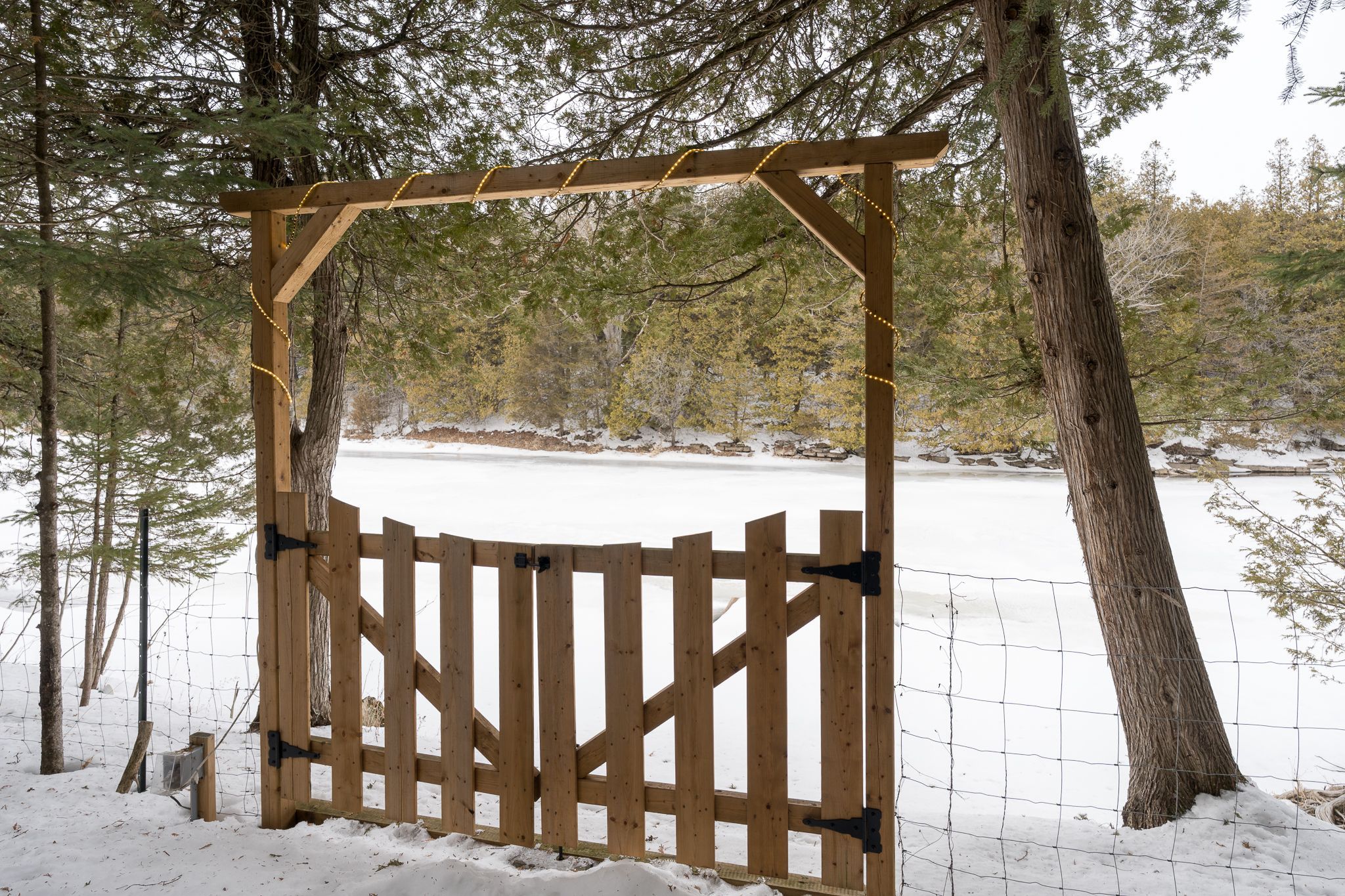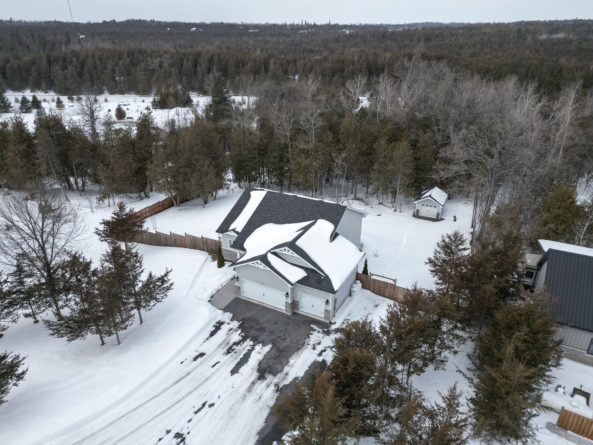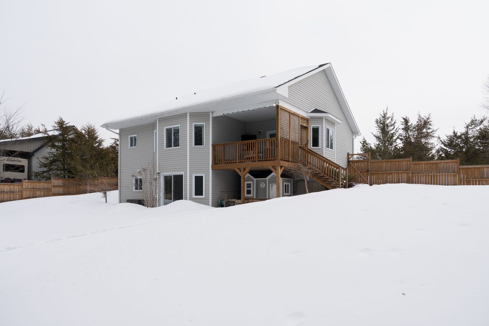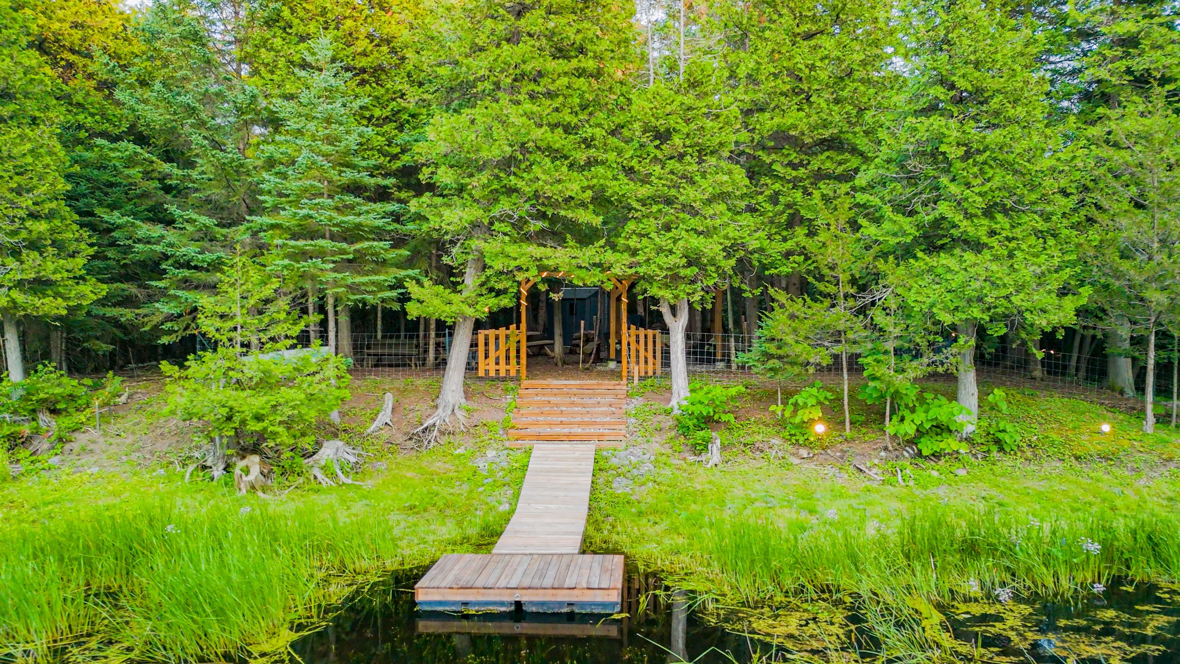 Tucked at the end of a quiet waterfront cul-de-sac in a sought-after estate subdivision, this custom-built bungalow by rjm classic homes offers a rare blend of luxury, privacy, and connection to nature. Set on over 2. 5 fully fenced acres, the property feels like your own private retreat while still being part of a community. Follow 700 feet of led-lit forest walking trails through the trees to the water's edge, where evenings come alive with beautifully illuminated shoreline landscaping and a year-round floating dock with easy walkdown entry - perfect for morning paddles, sunset wine, or simply soaking in the view. The outdoor experience is designed for gathering and relaxation, featuring a custom 10' x 10' post-and-beam gazebo with power, a tranquil 13' decorative pond, and thoughtfully designed fencing with 6' wood privacy panels around the home and 4' field fencing along the perimeter. A 12' x 12' custom shed with 120v power and an automatic garage door opener adds both convenience and function. Inside, the home offers 3+1 bedrooms and 3 bathrooms with timeless design details, including two custom tv feature walls finished with real brick veneer, creating warm and inviting spaces to unwind. The finished walkout basement provides incredible flexibility and is well-suited for an in-law or secondary suite. Completing the home is a spacious three-car attached garage, making this property ideal for families, hobbyists, or those who simply want room to live fully. A rare opportunity to own a private waterfront lifestyle property where craftsmanship, nature, and comfort meet.