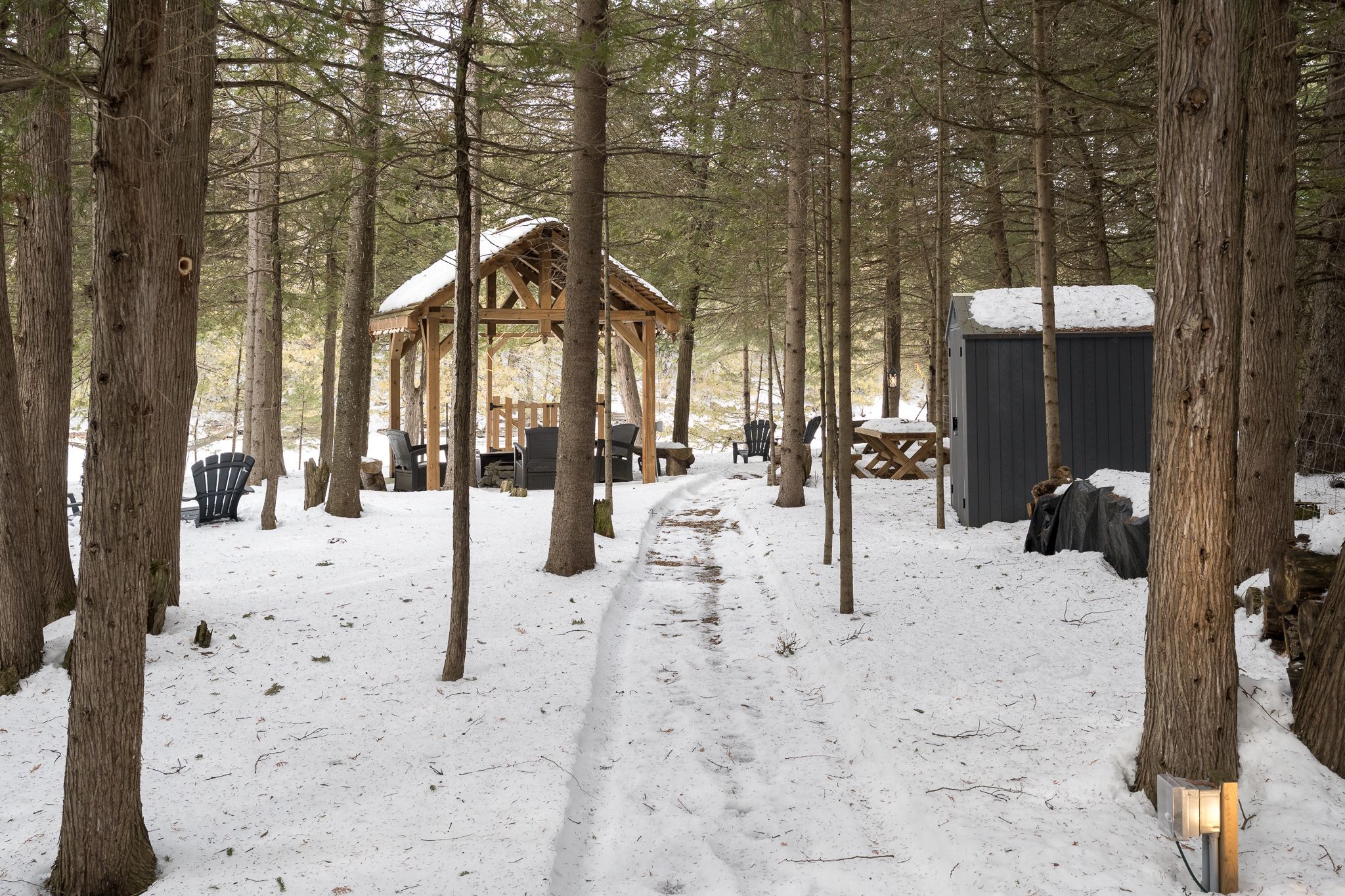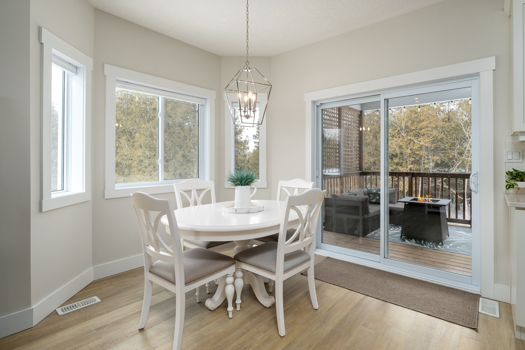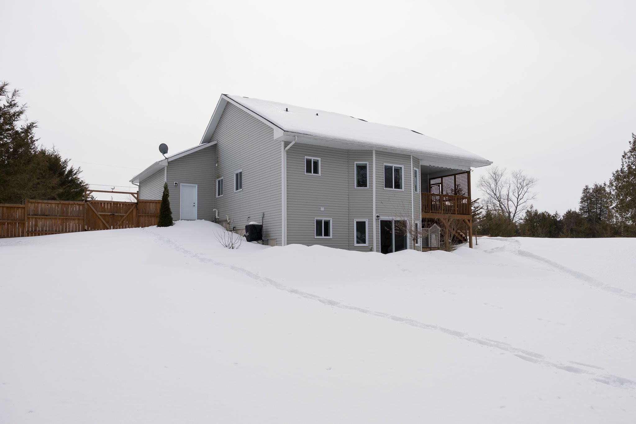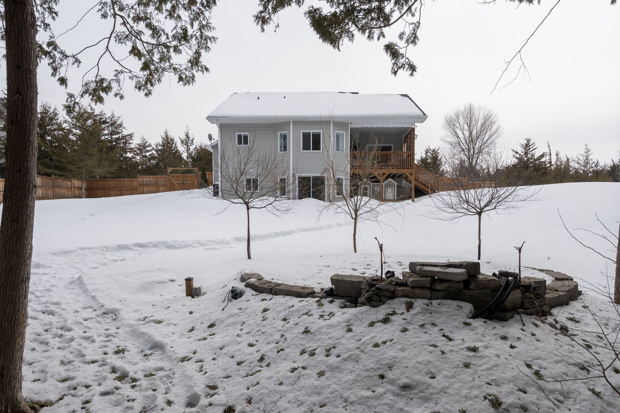 Tucked at the end of a quiet waterfront cul-de-sac in a sought-after estate subdivision, this custom-built bungalow by rjm classic homes offers a rare blend of luxury, privacy, and connection to nature. Set on over 2. 5 fully fenced acres, the property feels like your own private retreat while still being part of a community. Follow 700 feet of led-lit forest walking trails through the trees to the water's edge, where evenings come alive with beautifully illuminated shoreline landscaping and a year-round floating dock with easy walkdown entry - perfect for morning paddles, sunset wine, or simply soaking in the view. The outdoor experience is designed for gathering and relaxation, featuring a custom 10' x 10' post-and-beam gazebo with power, a tranquil 13' decorative pond, and thoughtfully designed fencing with 6' wood privacy panels around the home and 4' field fencing along the perimeter. A 12' x 12' custom shed with 120v power and an automatic garage door opener adds both convenience and function. Inside, the home offers 3+1 bedrooms and 3 bathrooms with timeless design details, including two custom tv feature walls finished with real brick veneer, creating warm and inviting spaces to unwind. The finished walkout basement provides incredible flexibility and is well-suited for an in-law or secondary suite. Completing the home is a spacious three-car attached garage, making this property ideal for families, hobbyists, or those who simply want room to live fully. A rare opportunity to own a private waterfront lifestyle property where craftsmanship, nature, and comfort meet.