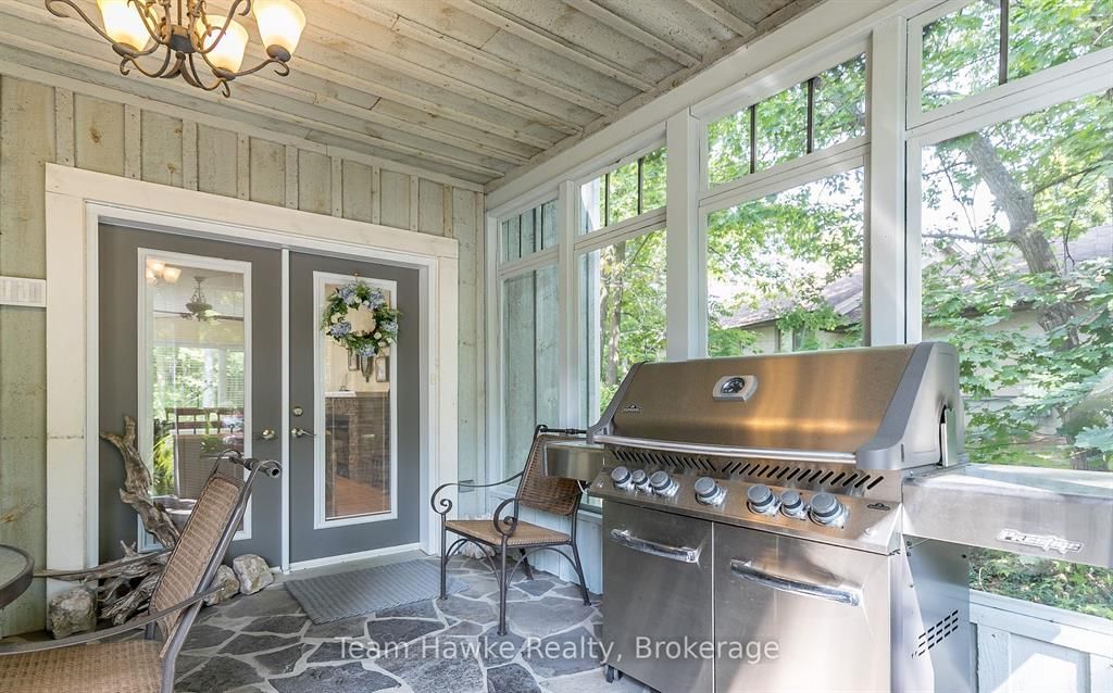 Imagine walking 5 minutes to a private wide sandy beach in deanlea beach, tiny township. Your backyard looking onto a municipal forest. This spacious 4 bed, 3 bath bungalow is larger than it looks with almost 2,000 sq ft of living space on the main floor including the screened in porch. Renovations in 2014 have added a steel roof, new septic, double garage, primary suite wing, designer kitchen, screened in porch. It also included the lower level which has 2 bedrooms, a 3-piece bath, and a spacious games room. Plenty of room to host multigenerational gatherings. The large interlocking driveway fits 6 vehicles. An open concept kitchen with loads of storage and extensive granite counters and island is a cook's and entertainer's dream. Heated floors keep your feet toasty on chilly days. High speed fibre-optic internet makes it easy to work from home. Looking out from the kitchen and dining room is avista of low maintenance natural gardens, flagstone pathways and forest. Quality construction and finishes throughout. A dry stream riverbed traverses the flagstone path to the front door. Walking down to the beach for a stroll on the long sandy beach or to view the sunset, who could ask for more? Annual deanlea beach association fee of $75. 00. Annual municipal water fee of $1,114. 00.