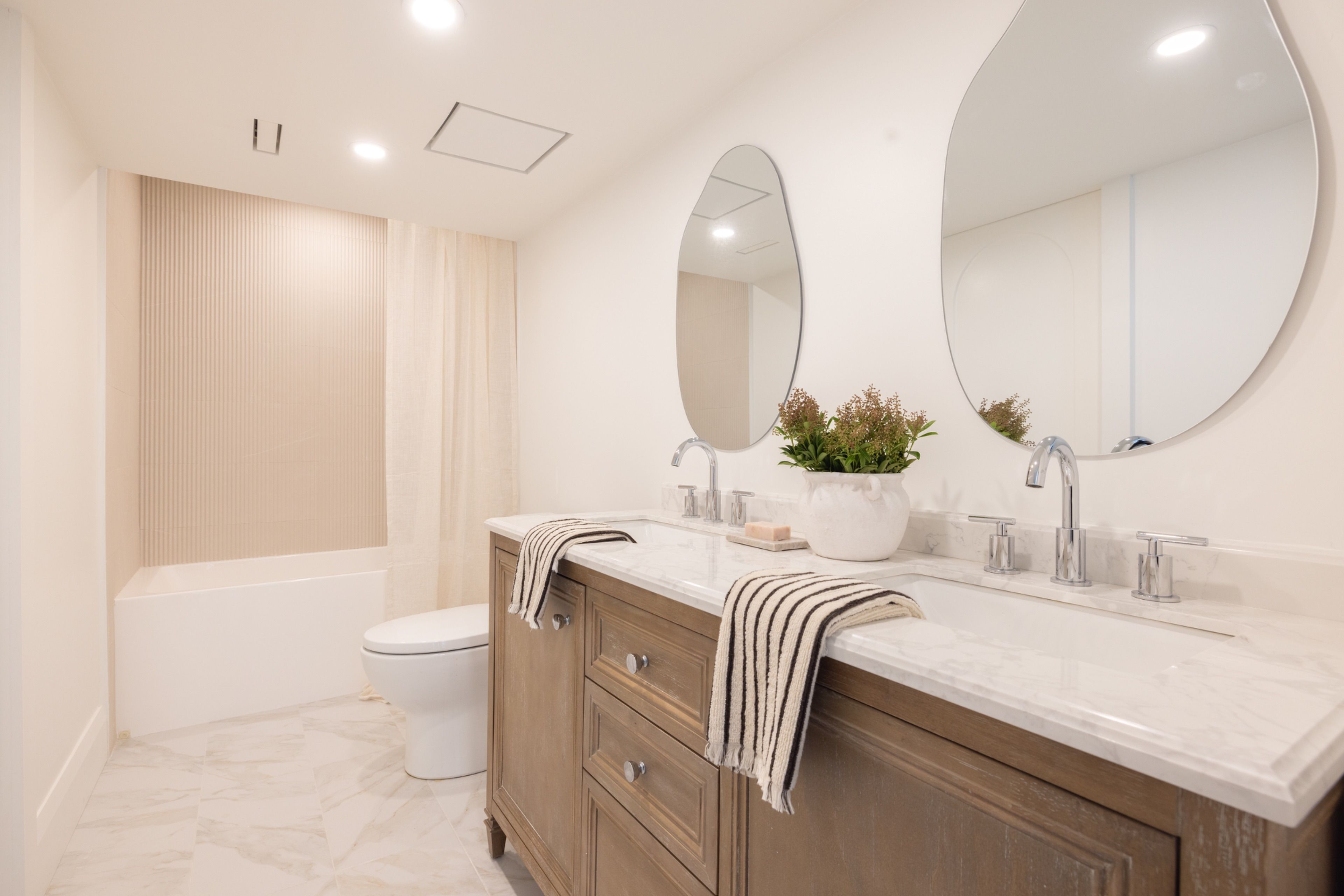 Impeccable 5-bedroom, 5-bath, residence with 2 kitchens, double laundry & walk-up basement. Approx. 5,315 sq ft of total living space. Enduring value. Purposeful design. Step through brand new custom wrought iron doors into a 13. 5-ft vaulted foyer where light pours thru a skylight onto heated italian porcelain floors. Vaulted ceilings on the main & upper levels, aluminum windows & hand-oiled european oak floors continue throughout, w/ heated floors in all baths. The custom kitchen centers on a 10-ft walnut island, face-framed birch cabinetry & honed porcelain across the counters & backsplash. Unlacquered brass hardware, a vaulted ceiling w/ a custom fixture & $150k in monogram appliances complete the space. The family room is anchored by a valor h6 fireplace w/ an exquisite mantle, custom built-ins & an imported english light fixture. Two bedrooms feature walk-in closets, one w/ a double, while another offers a private ensuite with kohler x mcgee & co. Vanity & hardware. Main bath incl. A 72-inch double vanity, fluted tub & oversized shower. The private primary suite on the lower level is easily accessible & feat. A 48" fireplace, large windows, terrace walkout & dressing room with floor-to-ceiling organization. Its 5-pc ensuite incl. A marble & walnut vanity, freestanding tub, water closet & porcelain slab steam shower w/ dual heads. The lower level includes a large wine cellar, family/recreation room & full second kitchen with custom birch cabinetry, leathered quartz counters & walk-in pantry. The basement feat. A fifth bed with 5-pc ensuite, gym w/ built-in speakers & large media or office space. Walk-up access to the yard (completed with permit) adds flexibility for work or guests. Outdoors, a generous space awaits your personal touch. This home offers rare versatility for guests, rental potential or exclusive living in stonegate-queensway, min. From shopping, fine dining, mimico go & 15 minutes to billy bishop & pearson airport. Exceptional schools nearby.
