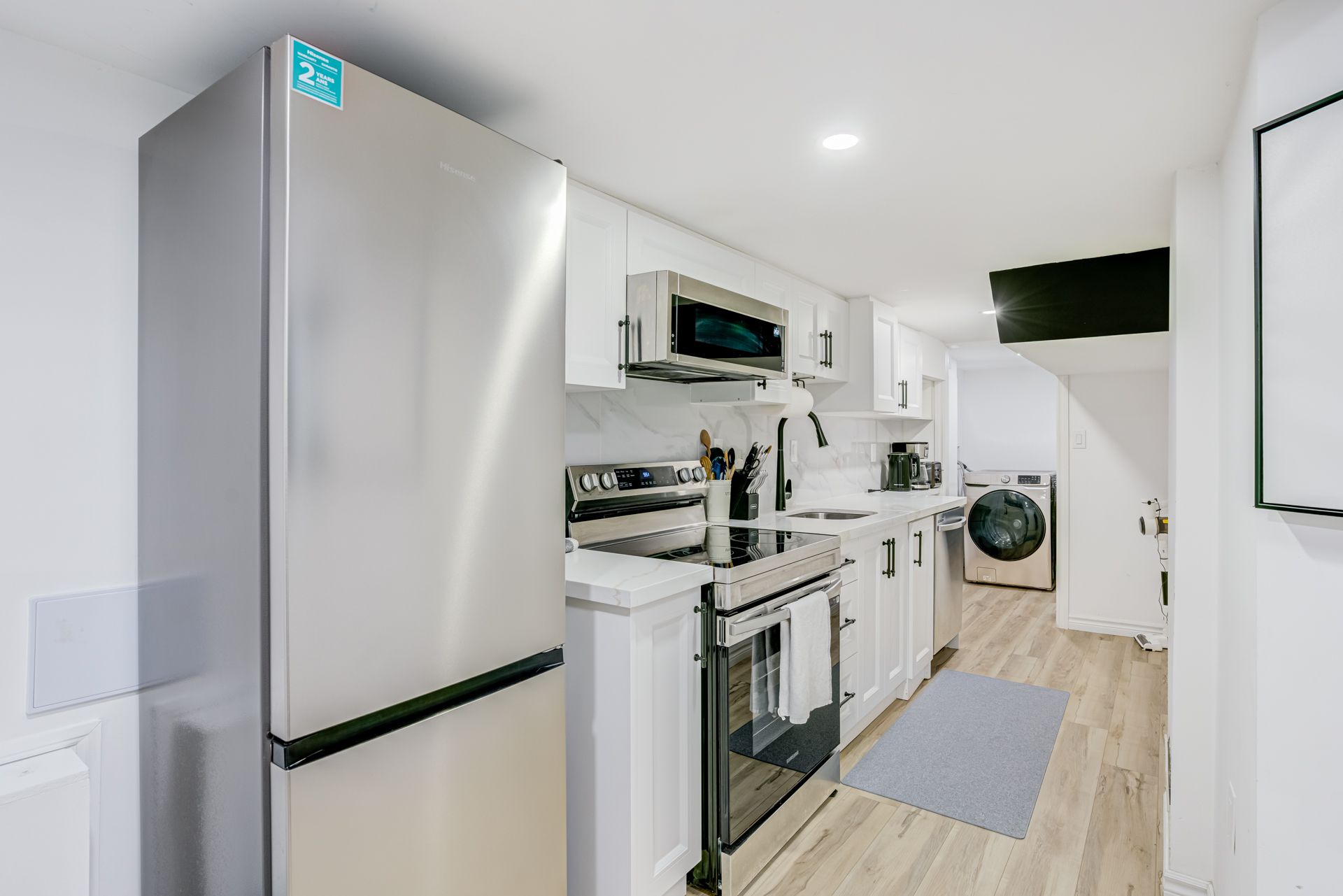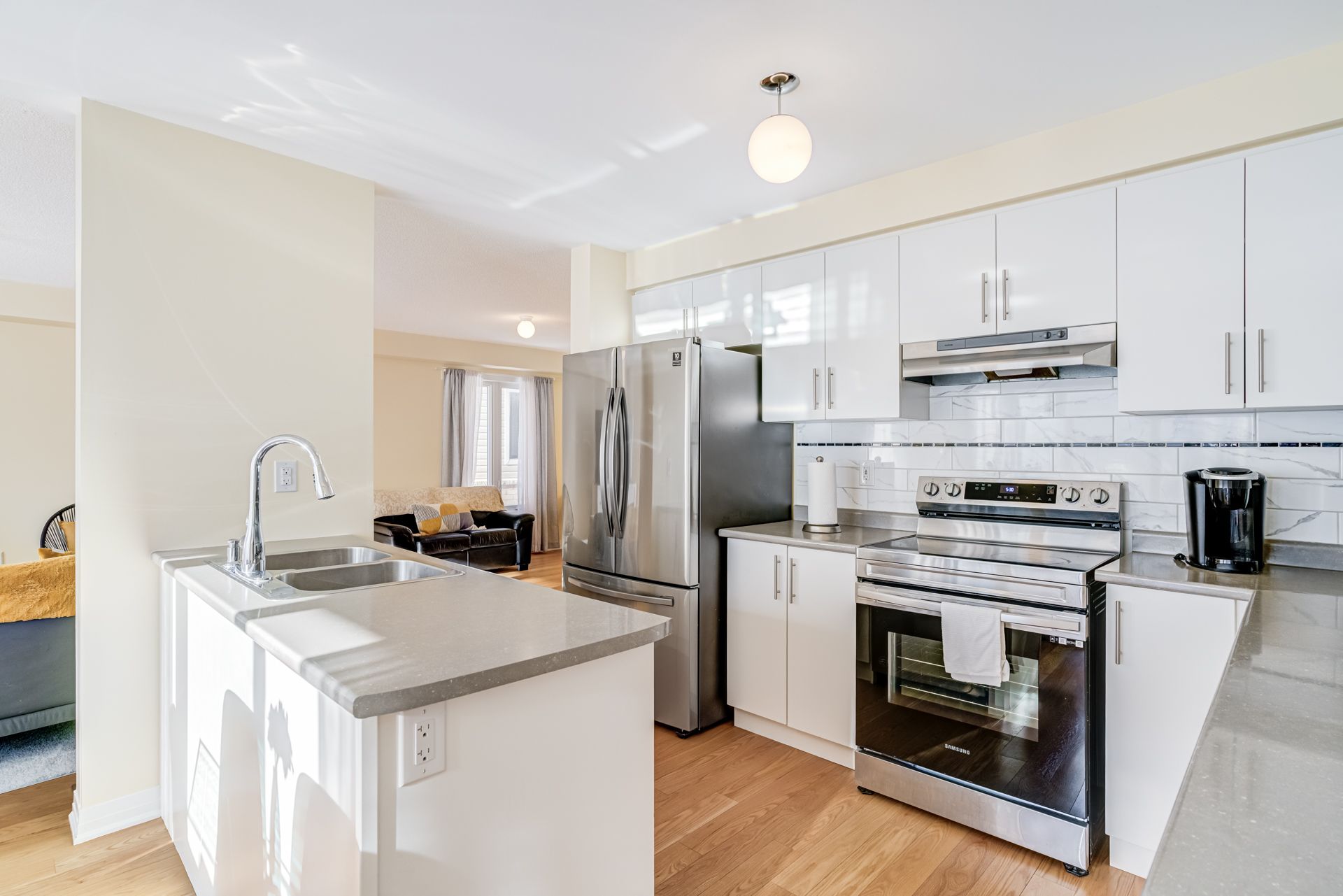 Welcome to 36 sailors landing! A rare opportunity to own a true two-in-one property in one of bowmanville's most desirable waterfront communities. Designed for flexibility, this spacious residence allows you to live comfortably in the main home while benefiting from a fully self-contained legal walkout basement apartment. The main level offers a bright and open living and dining area with excellent flow, ideal for both entertaining and daily use. The kitchen is generously sized and equipped with stainless steel appliances, ample cabinetry, and extensive counter space. Main-floor laundry adds everyday convenience and keeps household routines efficient. Upstairs, the primary bedroom offers a true retreat, featuring a walk-in closet and a private ensuite bathroom with a clean and functional layout. The remaining bedrooms are very spacious, providing flexibility for a variety of uses. The fully self-contained legal walkup basement apartment offers complete separation and independence, featuring two bedrooms, one bathroom, a full kitchen, and a comfortable living area with an electric fireplace. The unit also includes its own laundry, making it well-suited for extended family or as a strong income-generating opportunity. Located minutes from the bowmanville waterfront, downtown amenities, parks, and schools, this home offers space, flexibility, and long-term value in a highly convenient setting.