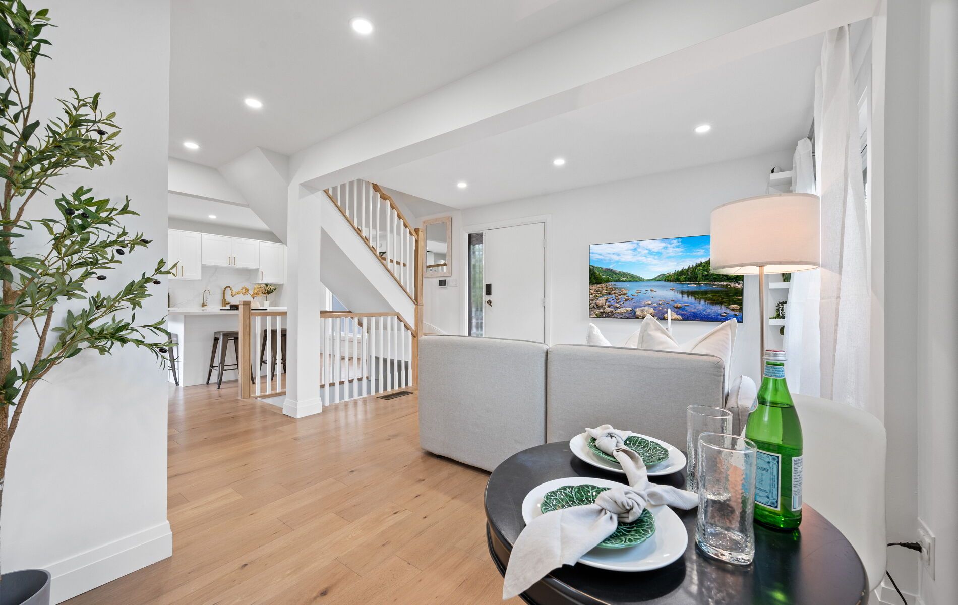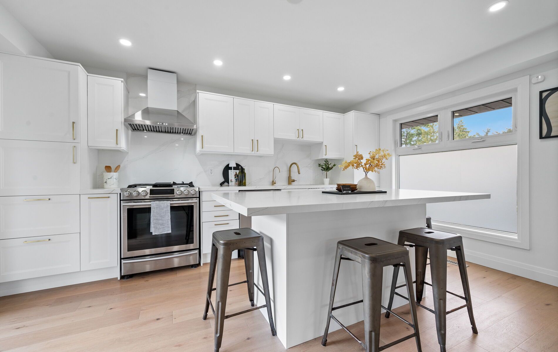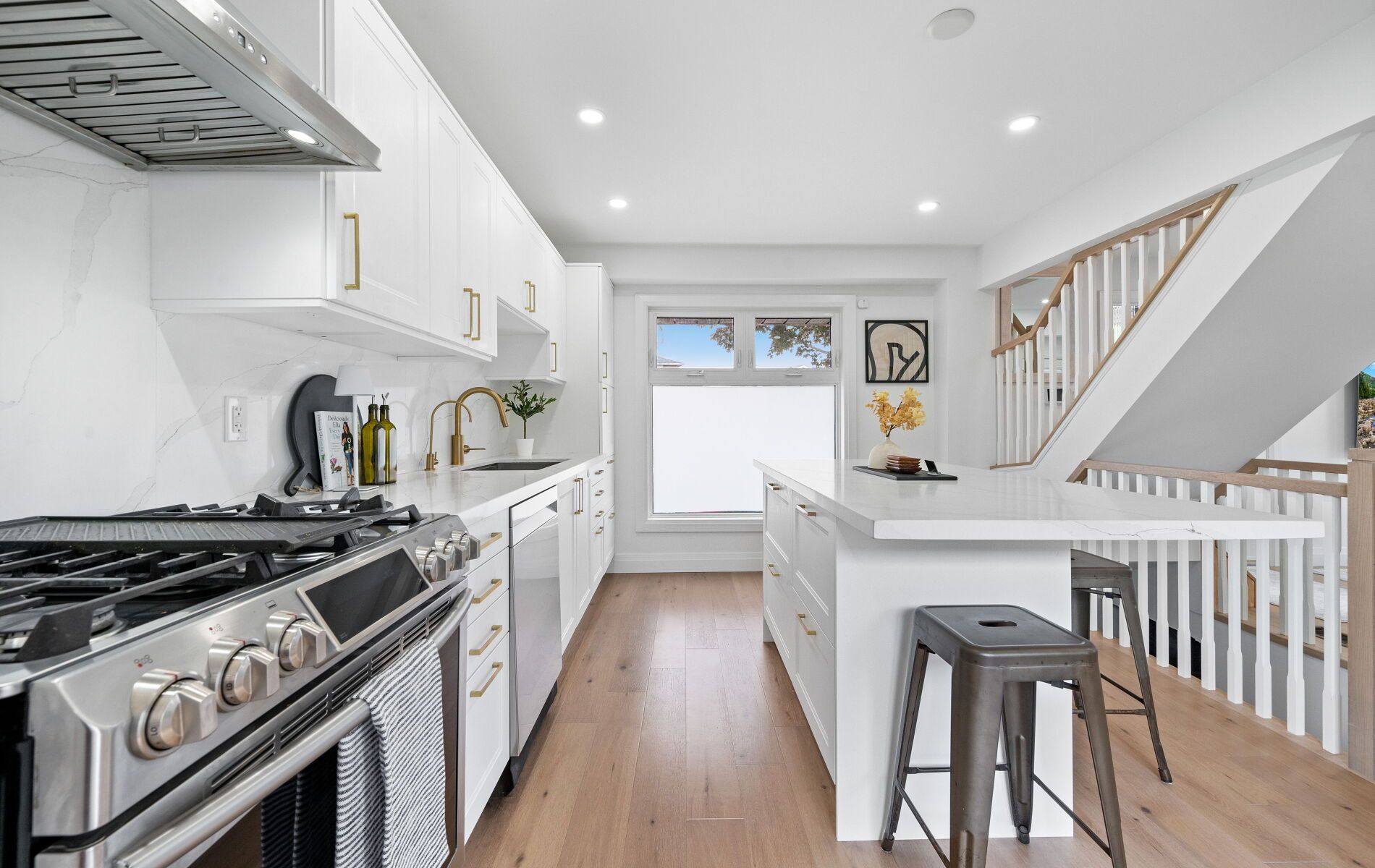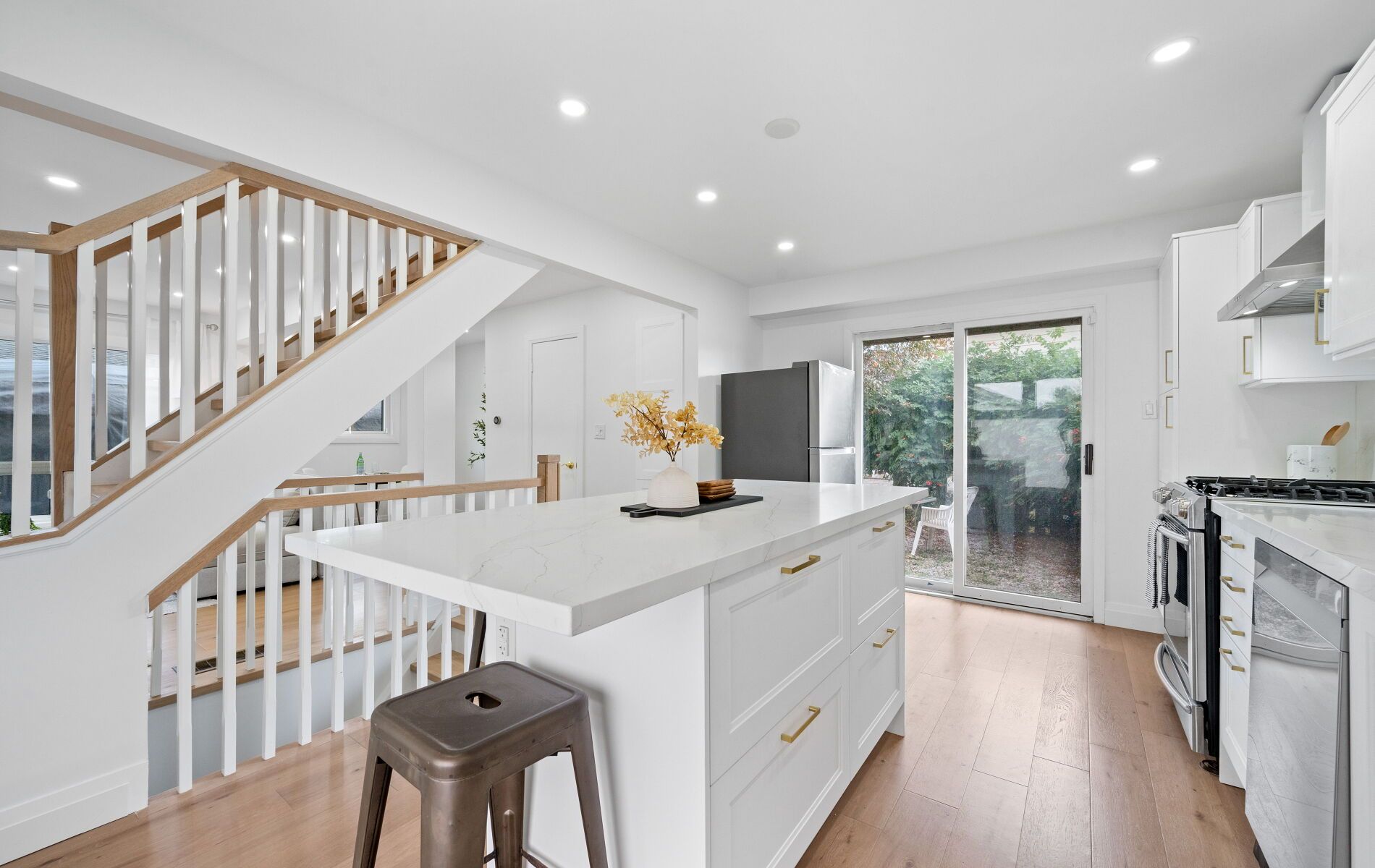 • Bright main floor features a chef's kitchen with stainless steel appliances.