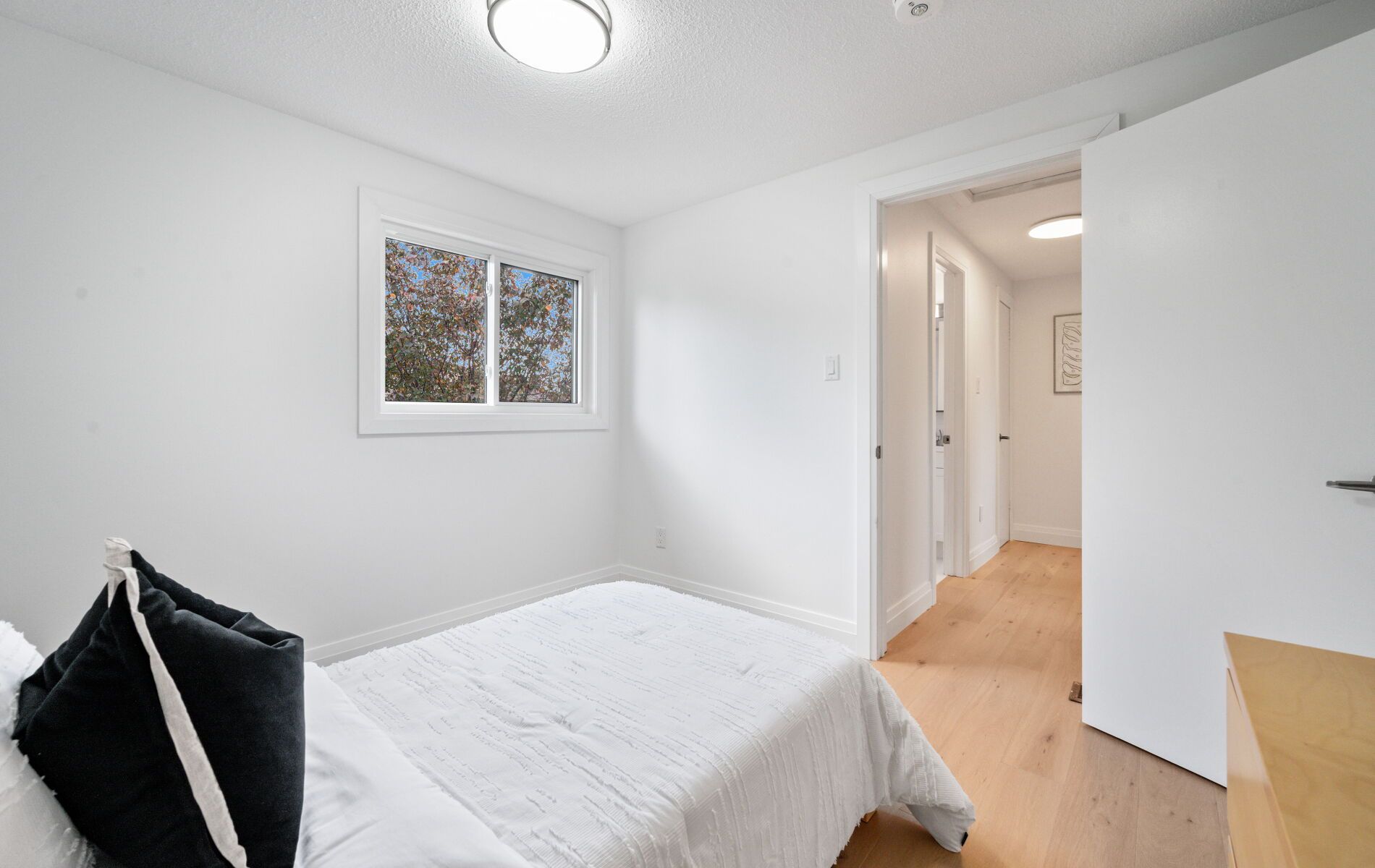 Welcome to 36 shalom crescent , this fully updated and meticulously renovated property offers a blend of modern elegance and comfortable living. With fresh paint and new flooring throughout, this home feels bright, clean, and truly move-in ready. The main floor showcases a bright and airy layout anchored by a stunning chefs kitchen, complete with stainless steel appliances, sleek cabinetry, and generous counter space, designed to inspire culinary creativity! A contemporary powder room on the main floor adds convenience and functionality for guests. Upstairs you'll find three spacious bedrooms, each filled with natural light and ample closet space. The primary bedroom is a true retreat featuring a luxurious ensuite. A second full bathroom serves the remaining bedrooms. The basement presents an exciting opportunity to customize and expand the living space to suit your personal preferences and needs. Whether you envision a cozy family room, a home gym or office, the possibilities are endless. Perfectly positioned on a huge corner lot with approx. 51ft frontage, 90ft along the rear and approx. 89ft along the south property line. This home offers excellent curb appeal, a welcoming front entrance, and plenty of parking. Close to transit, schools and shopping don't miss the opportunity to call this exquisite property your home.