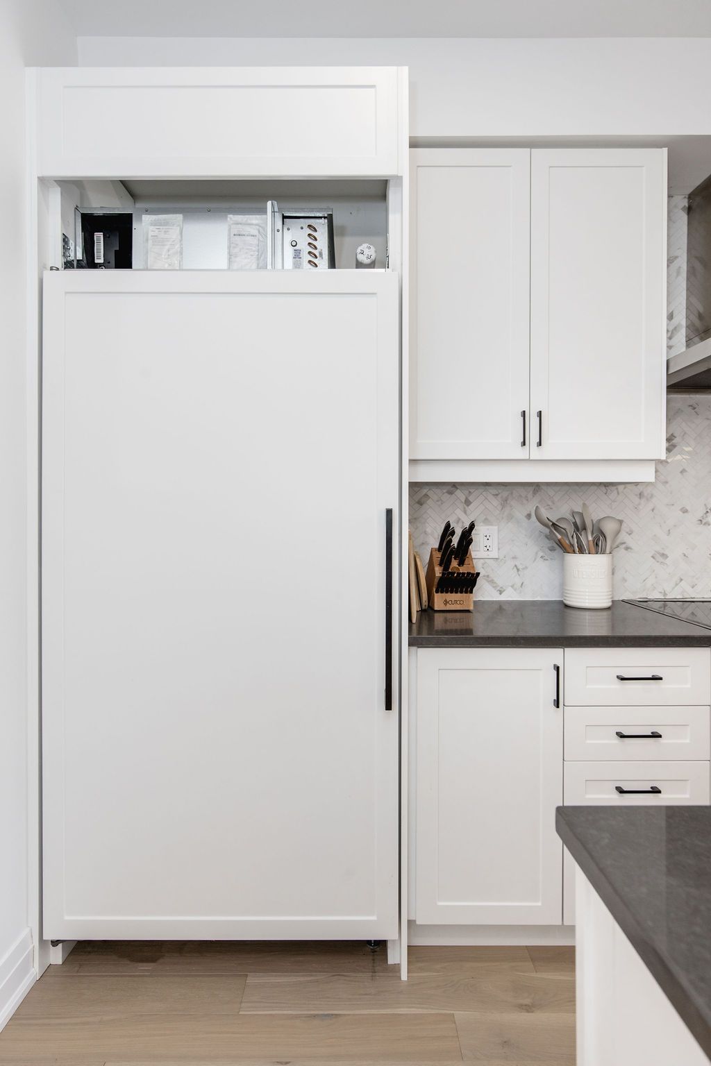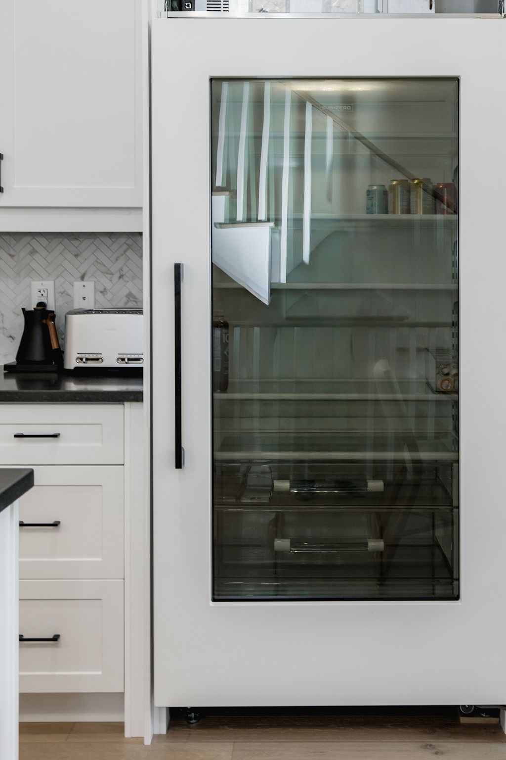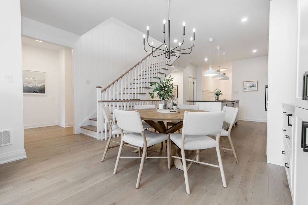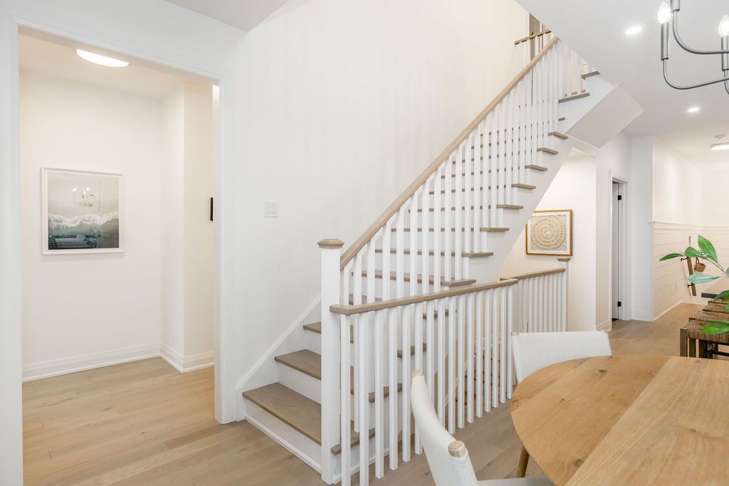 • Open-concept kitchen features a large quartz island and premium appliances.