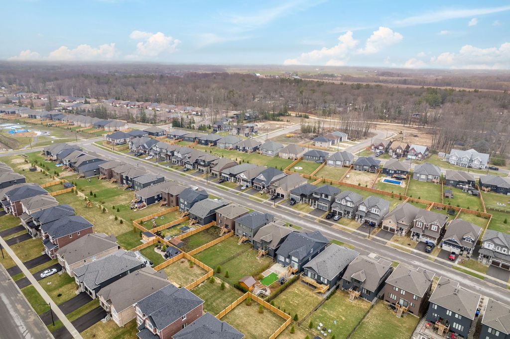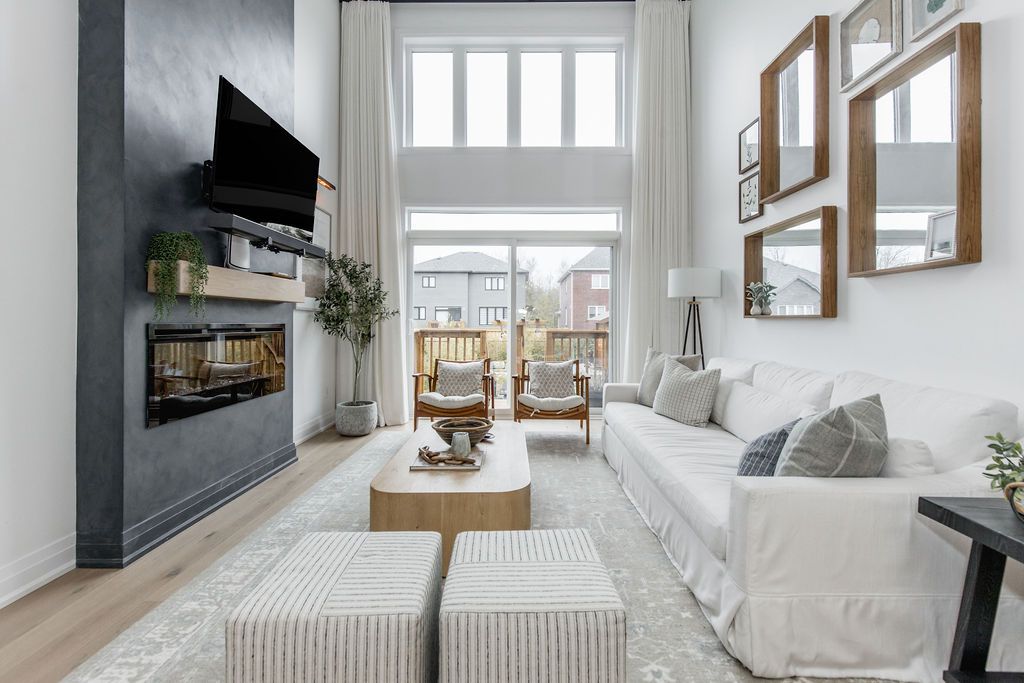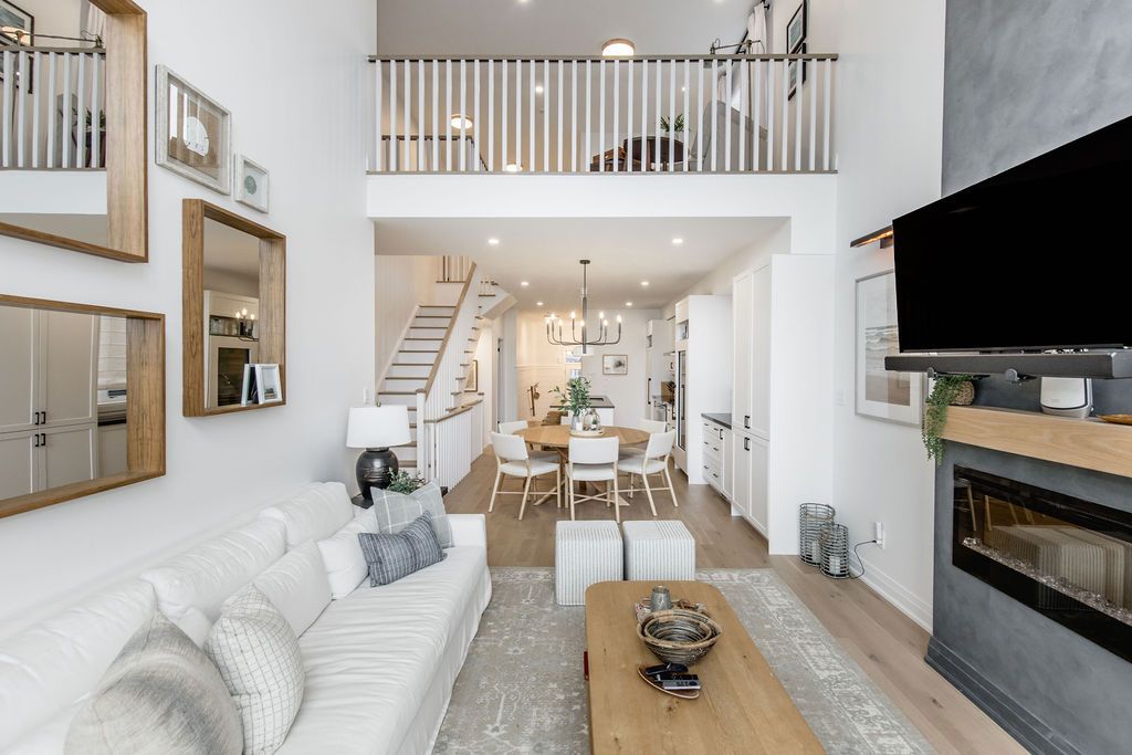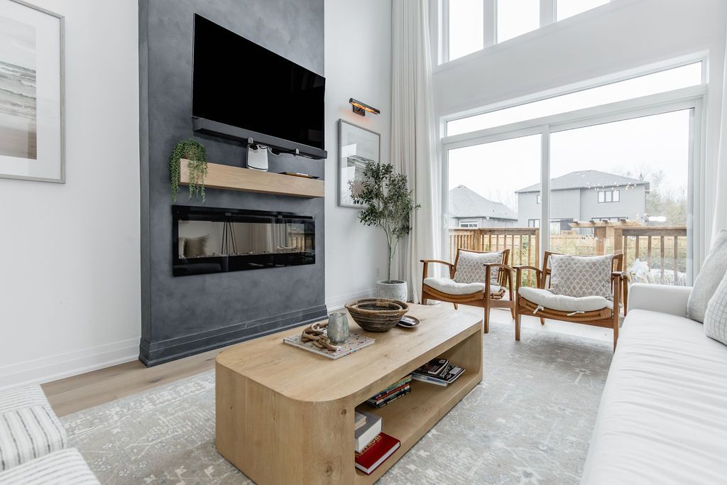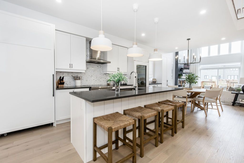 A truly one-of-a-kind designer residence where luxury, craftsmanship, and custom design come together in every detail. Professionally designed and furnished, this home offers a level of finish and cohesion rarely seen, creating a space that feels elevated and sophisticated. Designed with a refined coastal beach house aesthetic, this is a home you will never want to leave. An oversized covered front porch and oversized front entry set the tone, leading into a stunning open-concept kitchen that immediately impresses. Anchored by a large quartz island, the space is complemented by custom cabinetry with pull-out organizers, an extended pantry wall with a dedicated coffee bar, and premium appliances including a wolf gas range and sub-zero fridge and freezer. The kitchen flows into a breathtaking living room defined by soaring 16-foot ceilings, a dramatic floor-to-ceiling limewash fireplace, and expansive sliding doors with remote-controlled curtains that connect indoor and outdoor living. Every element has been carefully designed, from the engineered birch hardwood flooring to the custom millwork, shiplap feature walls, wainscotting, and refined lighting throughout. The main floor offers two bedrooms, including a serene primary suite with a spa-inspired 5-piece ensuite and a fully customized walk-in closet. The second bedroom features a semi-ensuite with a private water closet, ideal for guests or family. Upstairs, a stunning loft space with its own 3pc bath and two additional bedrooms provides flexible living for a home office, lounge, or family retreat. The outdoor setting is equally impressive, with a fully landscaped and fenced yard, concrete patio, custom outdoor kitchen, putting green, and fire pit, designed for both entertaining and relaxation. A well-designed mudroom with inside access to the garage and main floor laundry. The finished 2-car garage is impressive, featuring epoxy floors and immaculate custom wall organizers, all set on a beautifully landscaped lot.