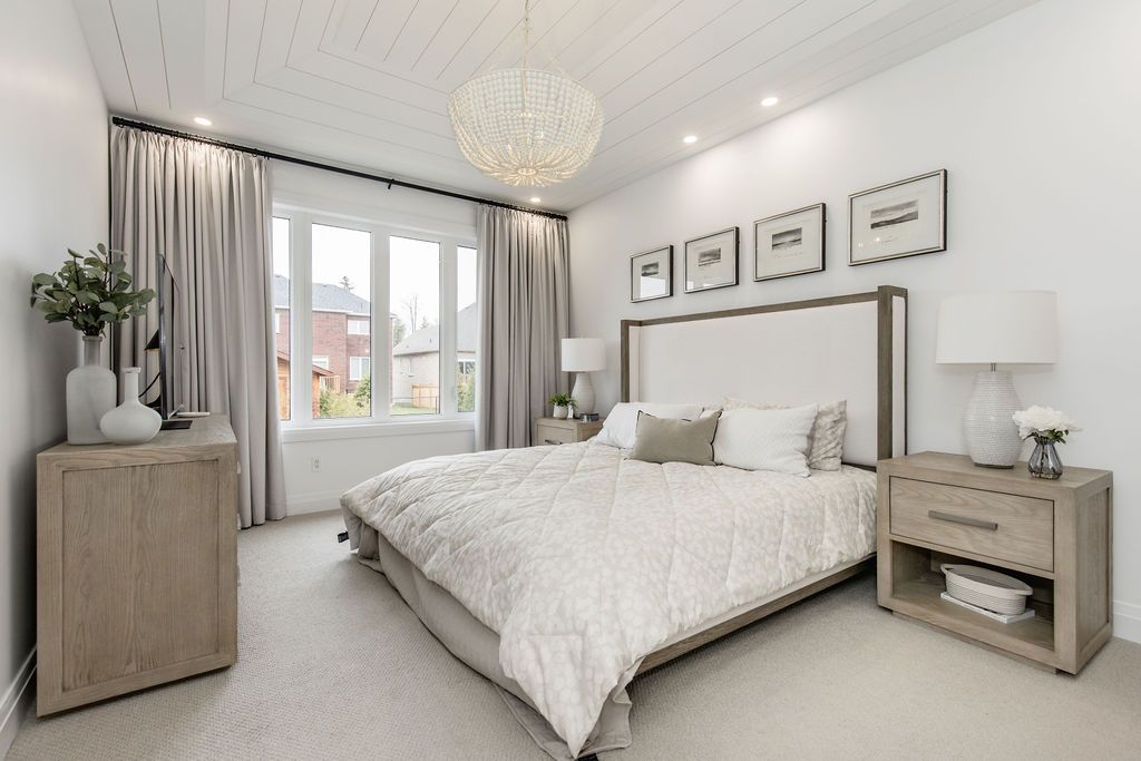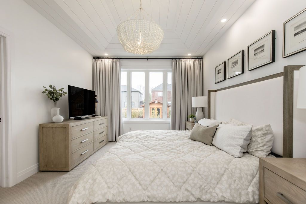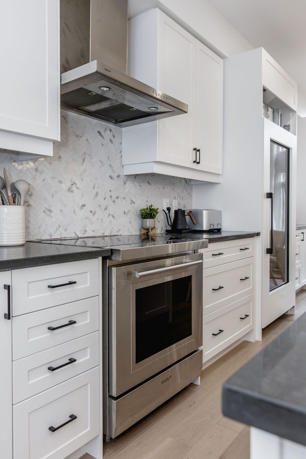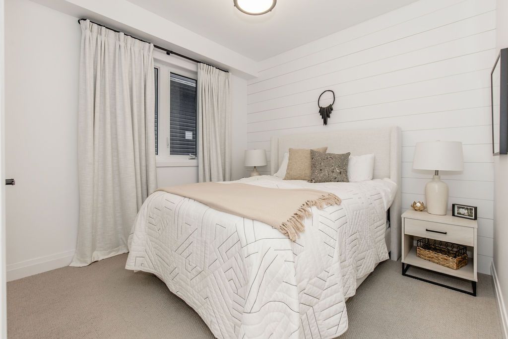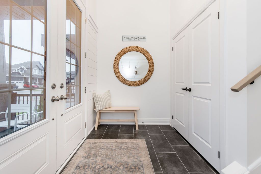 A truly one-of-a-kind designer residence where luxury, craftsmanship, and custom design come together in every detail. Professionally designed and furnished, this home offers a level of finish and cohesion rarely seen, creating a space that feels elevated and sophisticated. Designed with a refined coastal beach house aesthetic, this is a home you will never want to leave. An oversized covered front porch and oversized front entry set the tone, leading into a stunning open-concept kitchen that immediately impresses. Anchored by a large quartz island, the space is complemented by custom cabinetry with pull-out organizers, an extended pantry wall with a dedicated coffee bar, and premium appliances including a wolf gas range and sub-zero fridge and freezer. The kitchen flows into a breathtaking living room defined by soaring 16-foot ceilings, a dramatic floor-to-ceiling limewash fireplace, and expansive sliding doors with remote-controlled curtains that connect indoor and outdoor living. Every element has been carefully designed, from the engineered birch hardwood flooring to the custom millwork, shiplap feature walls, wainscotting, and refined lighting throughout. The main floor offers two bedrooms, including a serene primary suite with a spa-inspired 5-piece ensuite and a fully customized walk-in closet. The second bedroom features a semi-ensuite with a private water closet, ideal for guests or family. Upstairs, a stunning loft space with its own 3pc bath and two additional bedrooms provides flexible living for a home office, lounge, or family retreat. The outdoor setting is equally impressive, with a fully landscaped and fenced yard, concrete patio, custom outdoor kitchen, putting green, and fire pit, designed for both entertaining and relaxation. A well-designed mudroom with inside access to the garage and main floor laundry. The finished 2-car garage is impressive, featuring epoxy floors and immaculate custom wall organizers, all set on a beautifully landscaped lot.