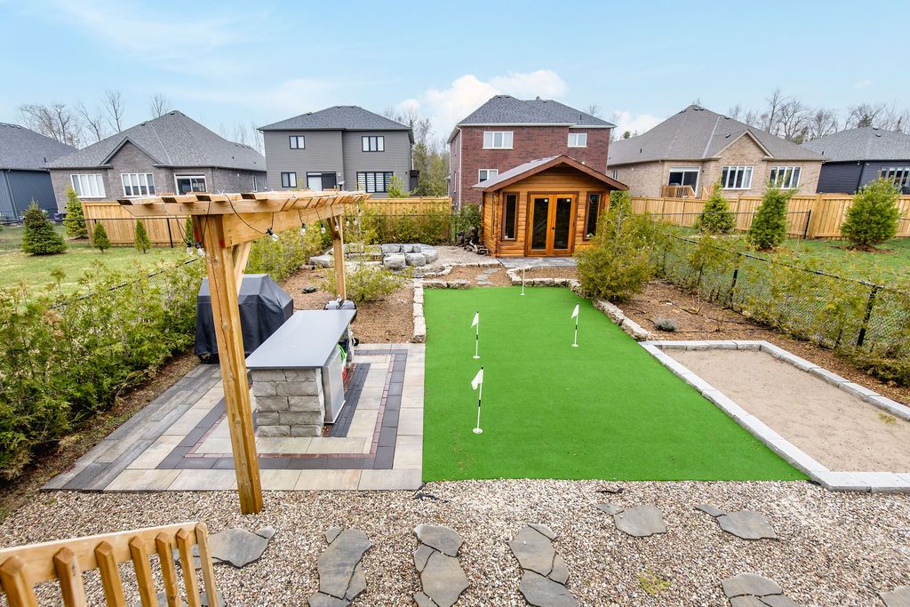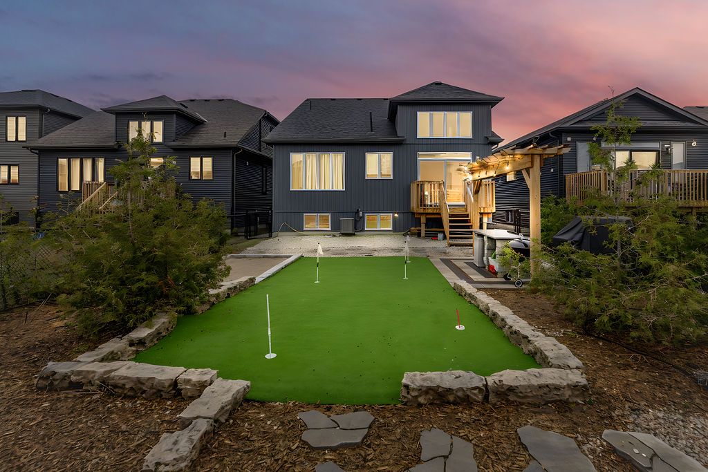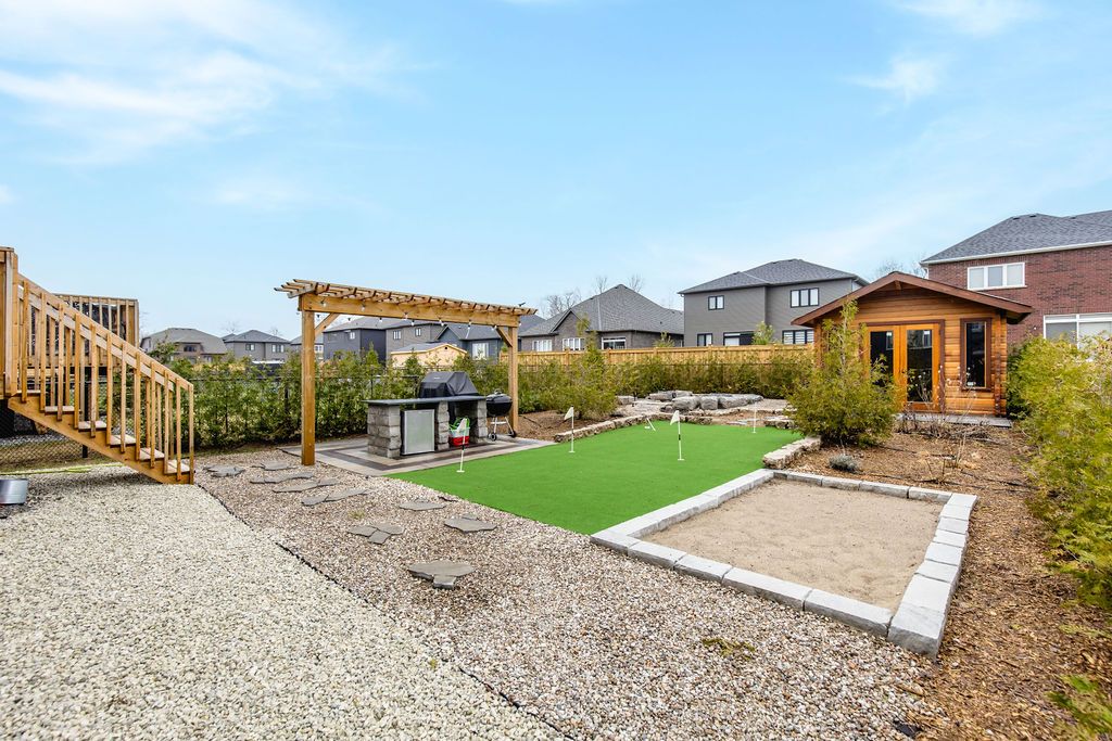 • Fully landscaped yard includes an outdoor kitchen, putting green, and fire pit.