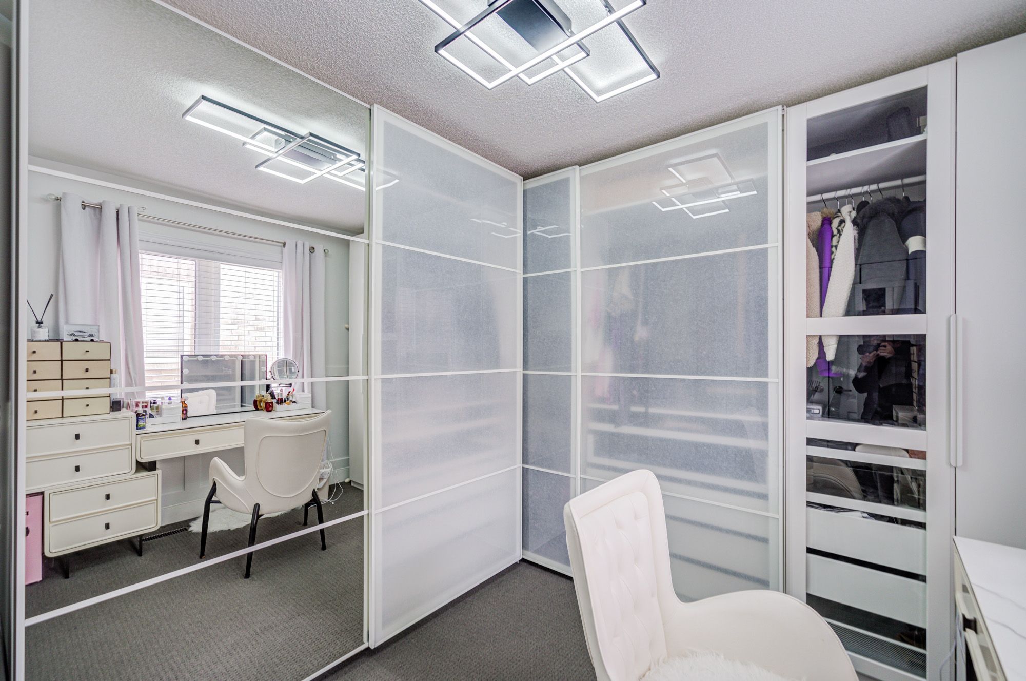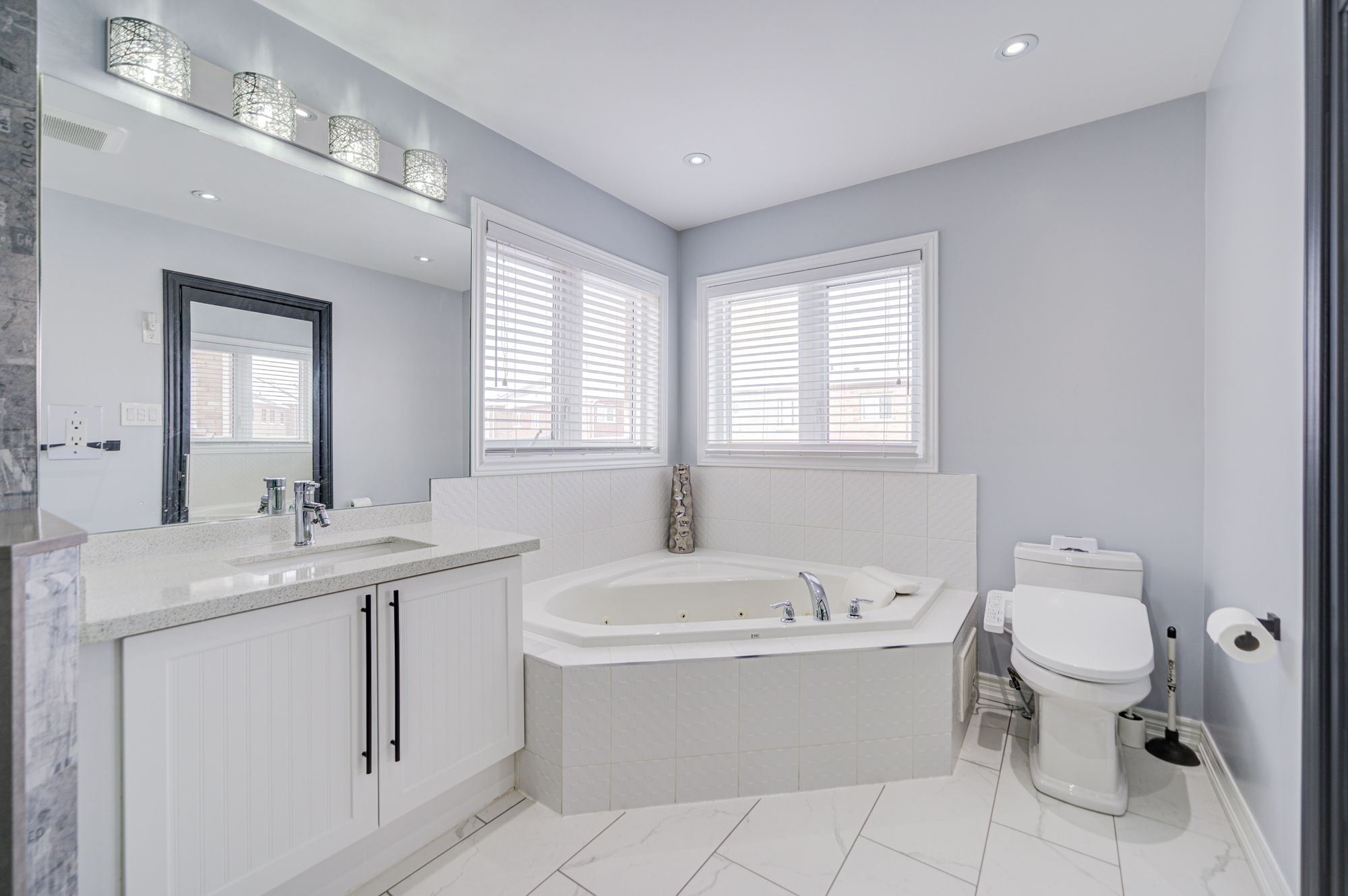 • Spacious primary bedroom with walk-in closet and newly renovated ensuite shower.