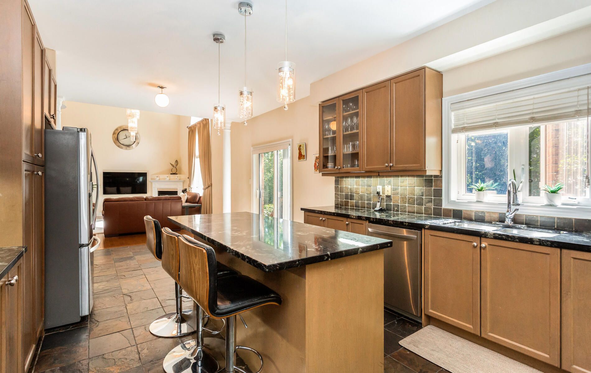 • Spacious family room and large kitchen with granite countertop.