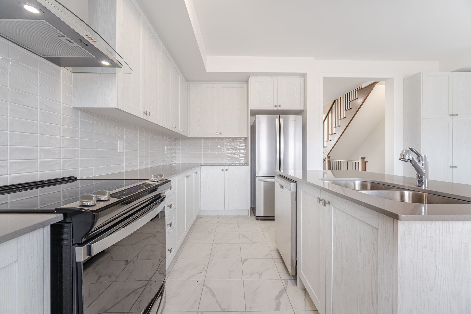 Double front town home. 1862 square feet. Lots of natural lights. Have 2 foyer and 2 porch and bonusfamily room/office. 3 bed, 2. 5 bath townhome with all the upgrades youneed to call it your home. Wood stairs, hardwood main floor, upgraded kitchen with quartz counter,modern ss appliances, ensuite bath with shower, all 3 washrooms with quartz counter, w/i closet andlots of storage. Very functional layout. Spacious 2nd floor with living, dining, kitchen, breakfastand huge balcony. Upper level with 3 generous sizes of bedroom with two full bath, walk-in closet,garage access from home. Walking distance to lake ontario, close to transit, go, highway 401, 412,407, good schools, shops, parks, trails!