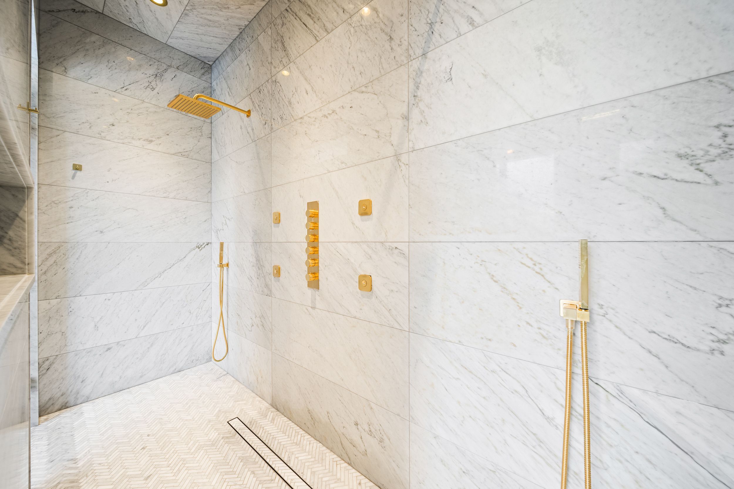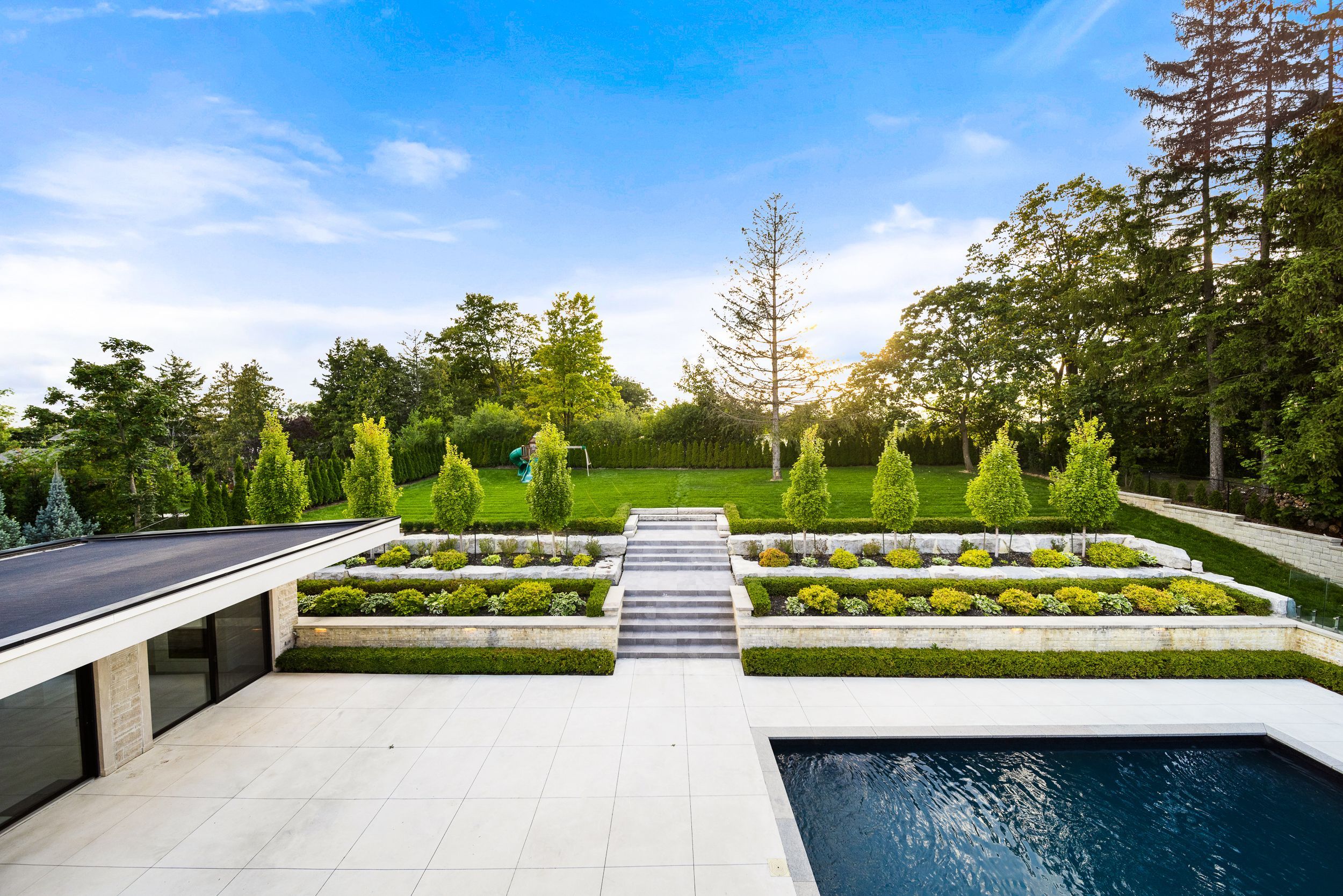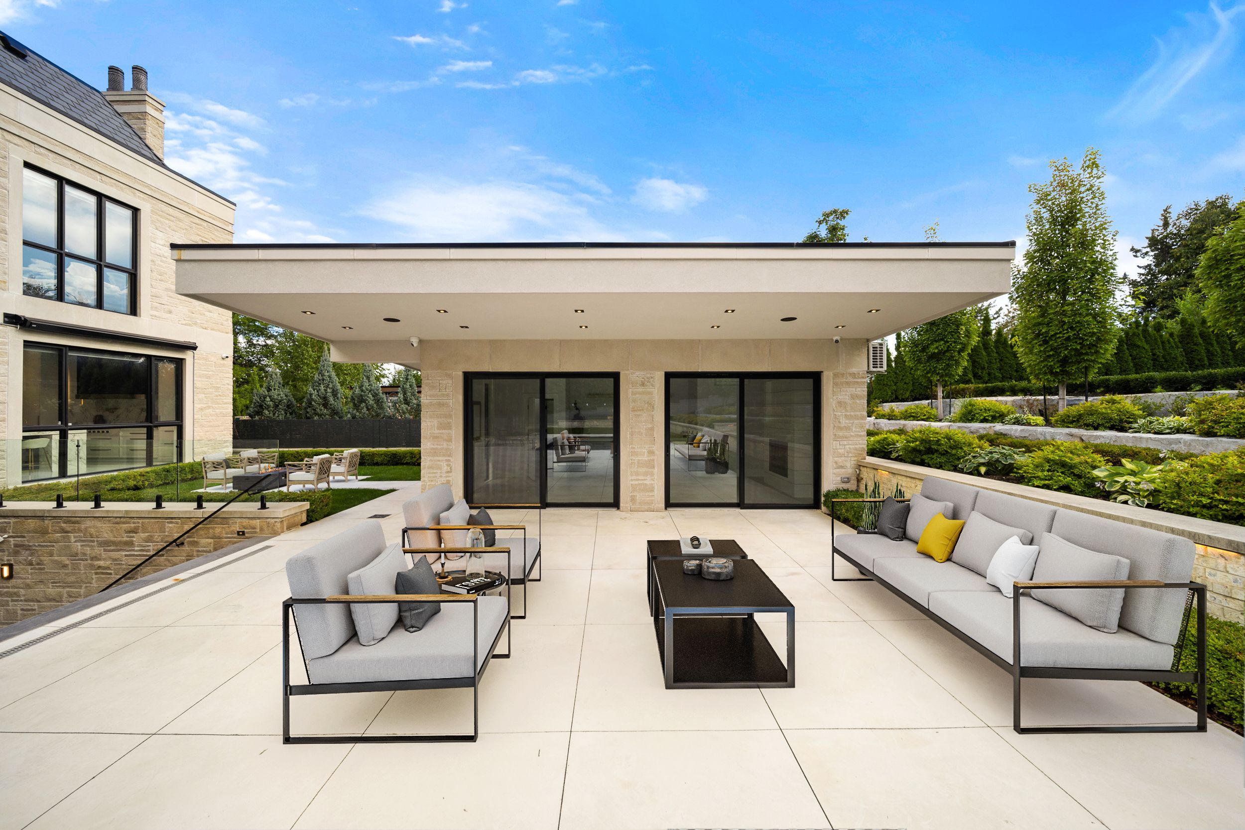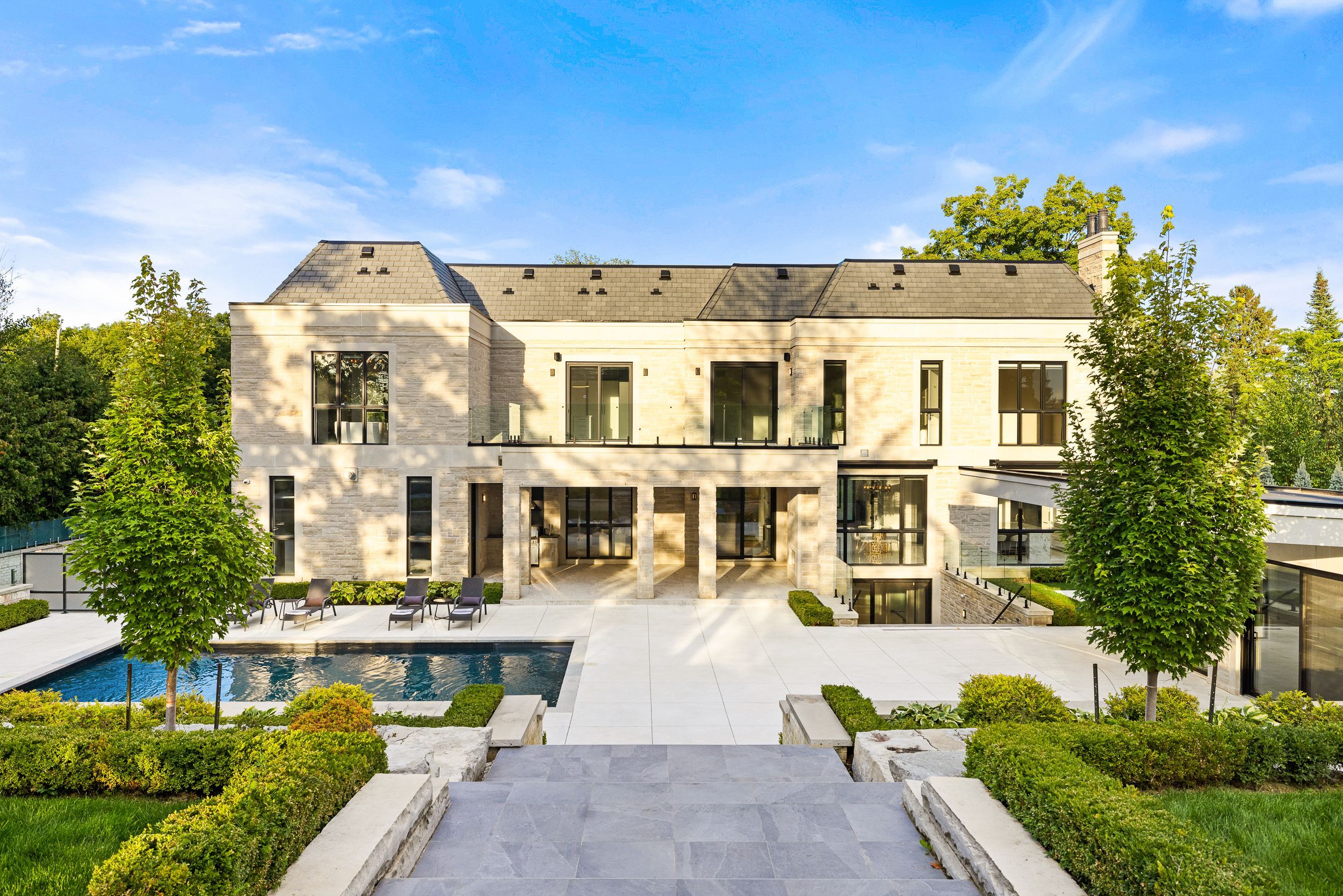 Welcome to this breathtaking french château-inspired residence in the heart of woodbridge, where timeless european elegance meets modern luxury. Set on a landscaped lot, this approx. 10,000 sq ft limestone masterpiece was crafted by stonebrooke homes in collaboration with designer marin zabzuni, featured in living luxe and dolce magazine. His signature style blends refined luxury with warm transitional design inspired by the world's most iconic five-star hotels. Inside, oversized windows and skylights fill the home with natural light, highlighting architectural millwork, polished ciot stone, suede accents, and 7" chevron white oak floors. This exceptional home offers a 5+1 bedroom layout, including four ensuite bedrooms and a luxurious primary retreat with spa bath, aquabrass fixtures, and a private 1,000 sq ft terrace. An additional upper lounge provides flexible space, easily converted into a fifth bedroom if desired. The walk-out lower level is designed for entertaining, featuring a theatre room with 120" screen, gym with steam room, and a kitchenette with pantry, ideal for nanny or in-law quarters, with direct access to the backyard pool. The art deco-inspired kitchen includes an oversized fluted hood, miele and sub-zero appliances, and a striking central island. Control4 smart home technology and a private elevator connect all levels. Outdoors, enjoy a 16 x 32 saltwater pool, cabana with wet bar and bath, outdoor kitchen, firepit lounge, and lush gardens. Heated terraces, snowmelt driveway, four-car garage, dual laundry, safe room, and automated blinds complete this exceptional offering
