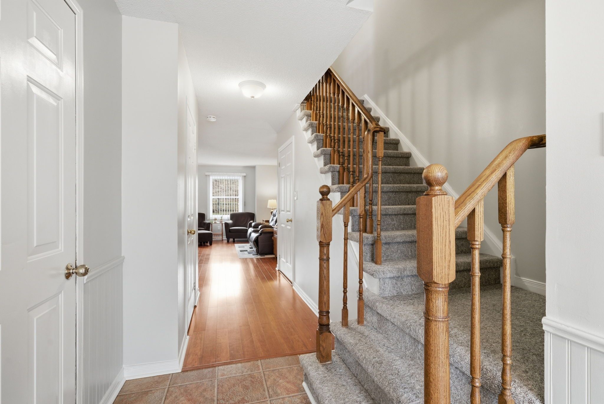 Welcome to this exceptional townhouse in the highly sought after quaker village neighbourhood. Located on a quiet dead end court it is a great area for young families and singles alike. Within walking distance to quaker village public school, st. Joseph's catholic school and the uxbridge arena. There is also a nearby park, splash pad, baseball diamonds, skate park with pump track, indoor pool and tennis courts. Uxbridge is a great place to live with several walking/hiking/biking trails, loads of community events and a wonderful farmers market available from may to october. With great restaurants and cafe's there is lots to do for everyone. This updated townhouse features a large primary suite with a 4 piece ensuite, 2 more generous size bedrooms with an updated 4-piece bath and brand new carpet throughout the upstairs. Lots of updates including windows, front door, garage door, fresh paint and kitchen counters, sink and cabinets. A cozy rec room with a gas fireplace and built-in cabinets add extra living space. The basement bathroom is roughed in to add an additional tub/shower if needed. Extra insulation was blown in as well in 2020 making heating and cooling more affordable. The newer electric garage door with remotes and direct entry to the house adds an extra convenience. Don't miss out here is your chance to get into the uxbridge market!
