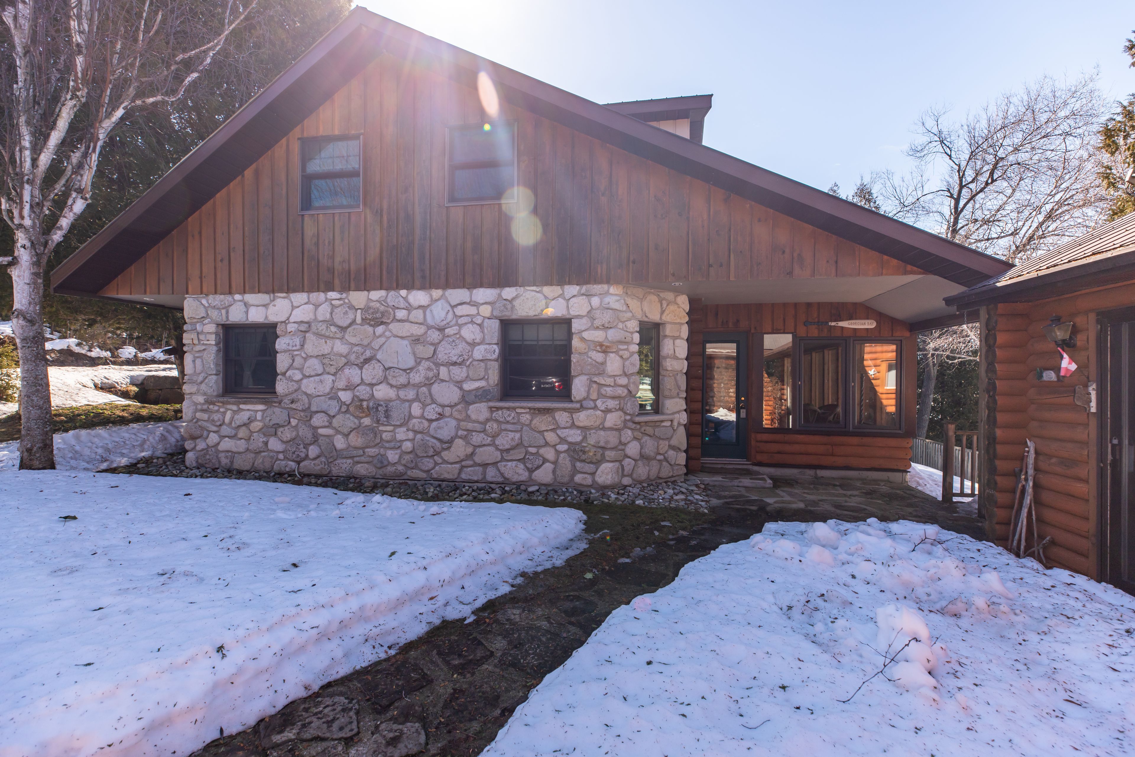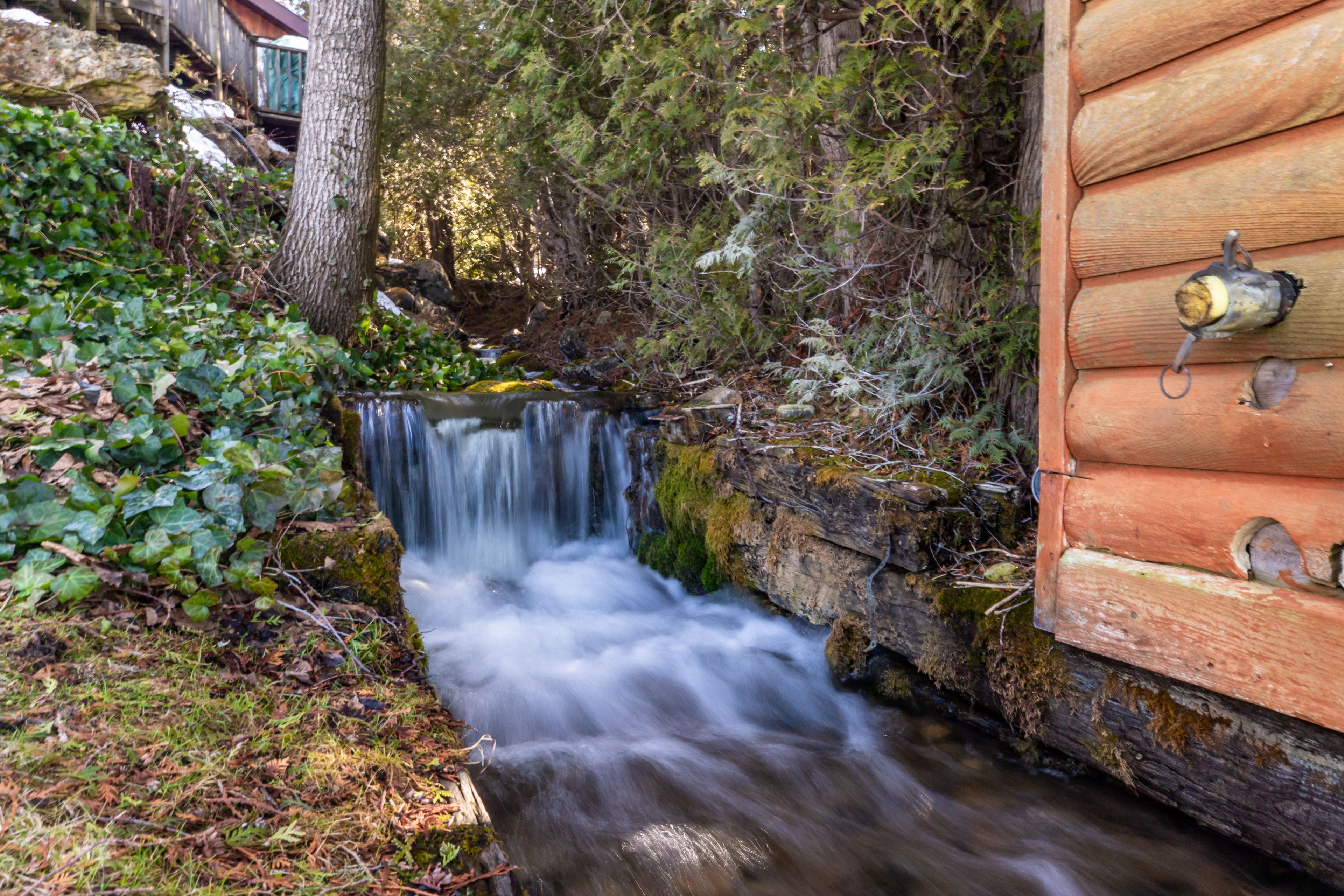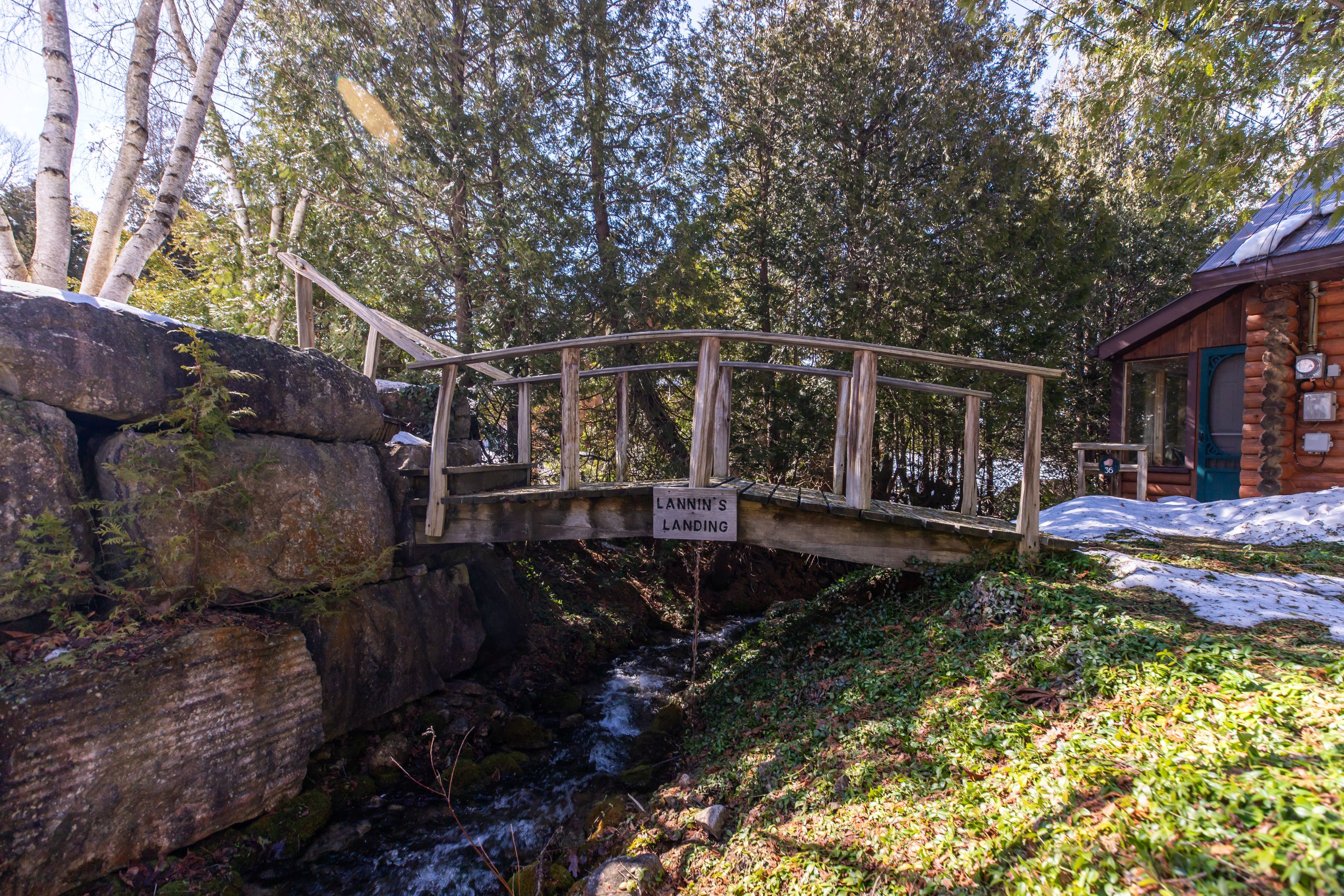 Discover a truly unique waterfront retreat in the charming hamlet of lion's head. This exceptional property combines privacy, character, and convenience, all set along a year-round paved road with direct access to the famed bruce trail and stunning niagara escarpment vistas. Boasting approximately 93 feet of immaculate shoreline on the clear waters of georgian bay, the property features a beautifully crafted frontier log home, blending rustic elegance with classic stone accents. A spacious garage and versatile workshop, along with a cozy bunkhouse, offer ample space for guests, hobbies, or storage. Adding to the serene setting, a natural spring-fed stream winds through the grounds, complete with gentle waterfalls that create a tranquil, storybook atmosphere. From the backyard, take in sweeping views of georgian bay and the escarpment-a perfect backdrop for relaxation or entertaining. Designed for year-round enjoyment, the home is serviced by a drilled well and septic and features a wood-burning stove that enhances its warm, inviting cottage feel. Just a short walk away, you'll find the harbour, sandy beach, marina, grocery store, hospital, bank, library, and local dining options. This rare lion's head property offers a one-of-a-kind opportunity to embrace the bruce peninsula lifestyle in a waterfront setting unlike any other.