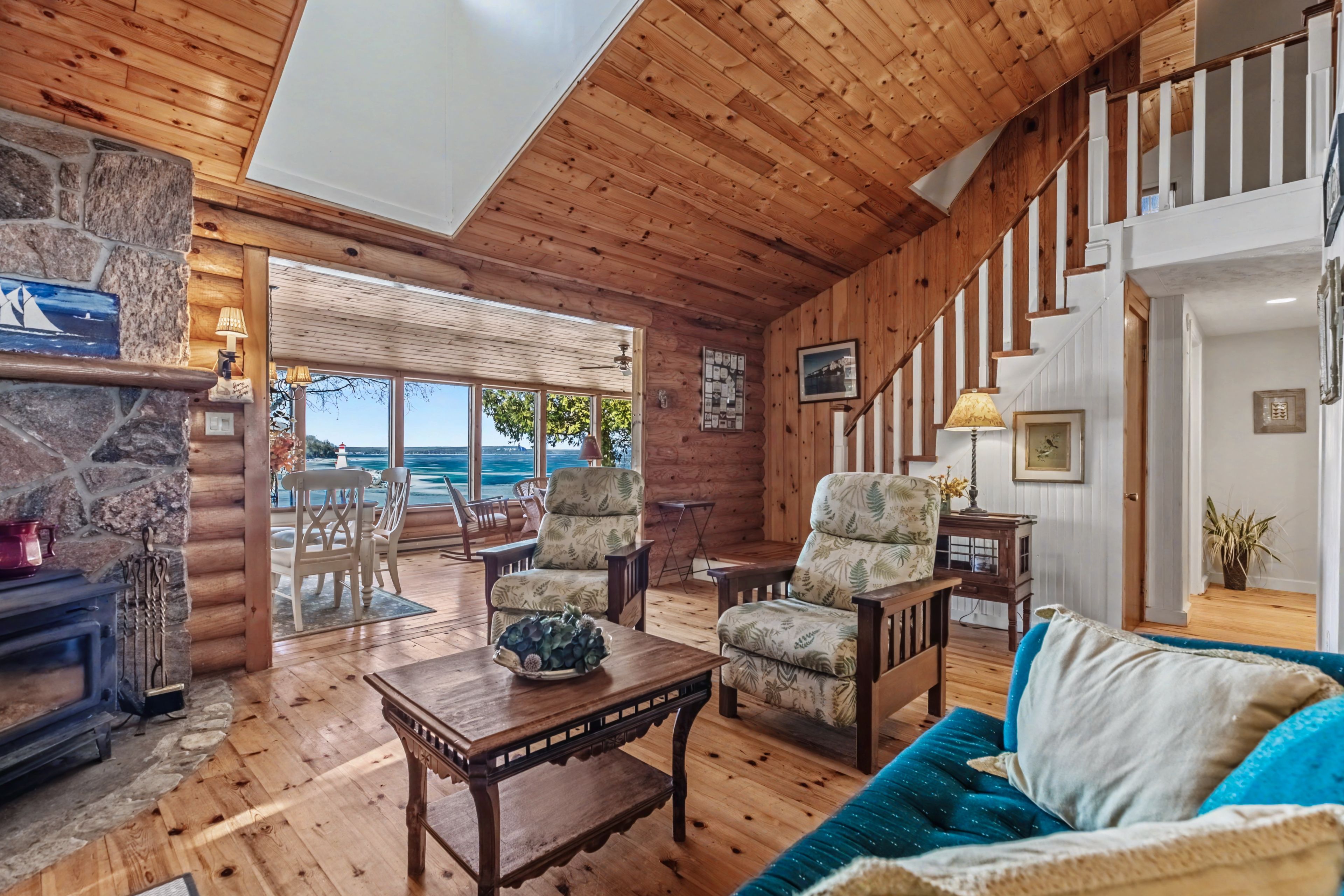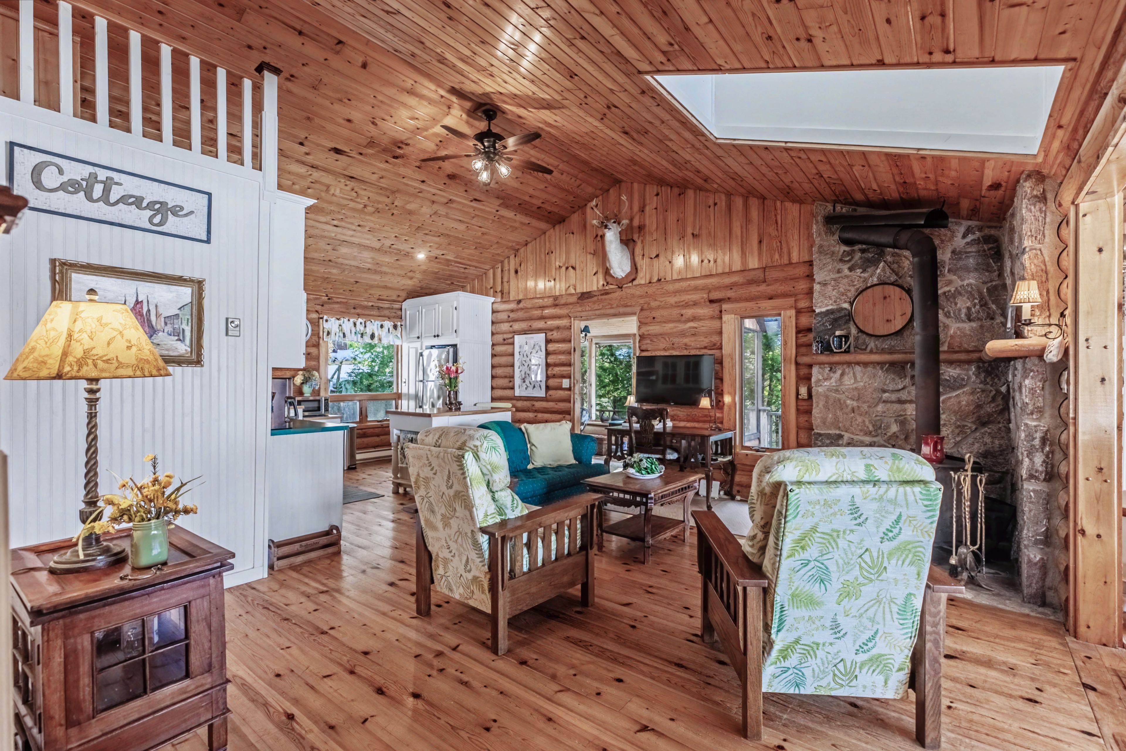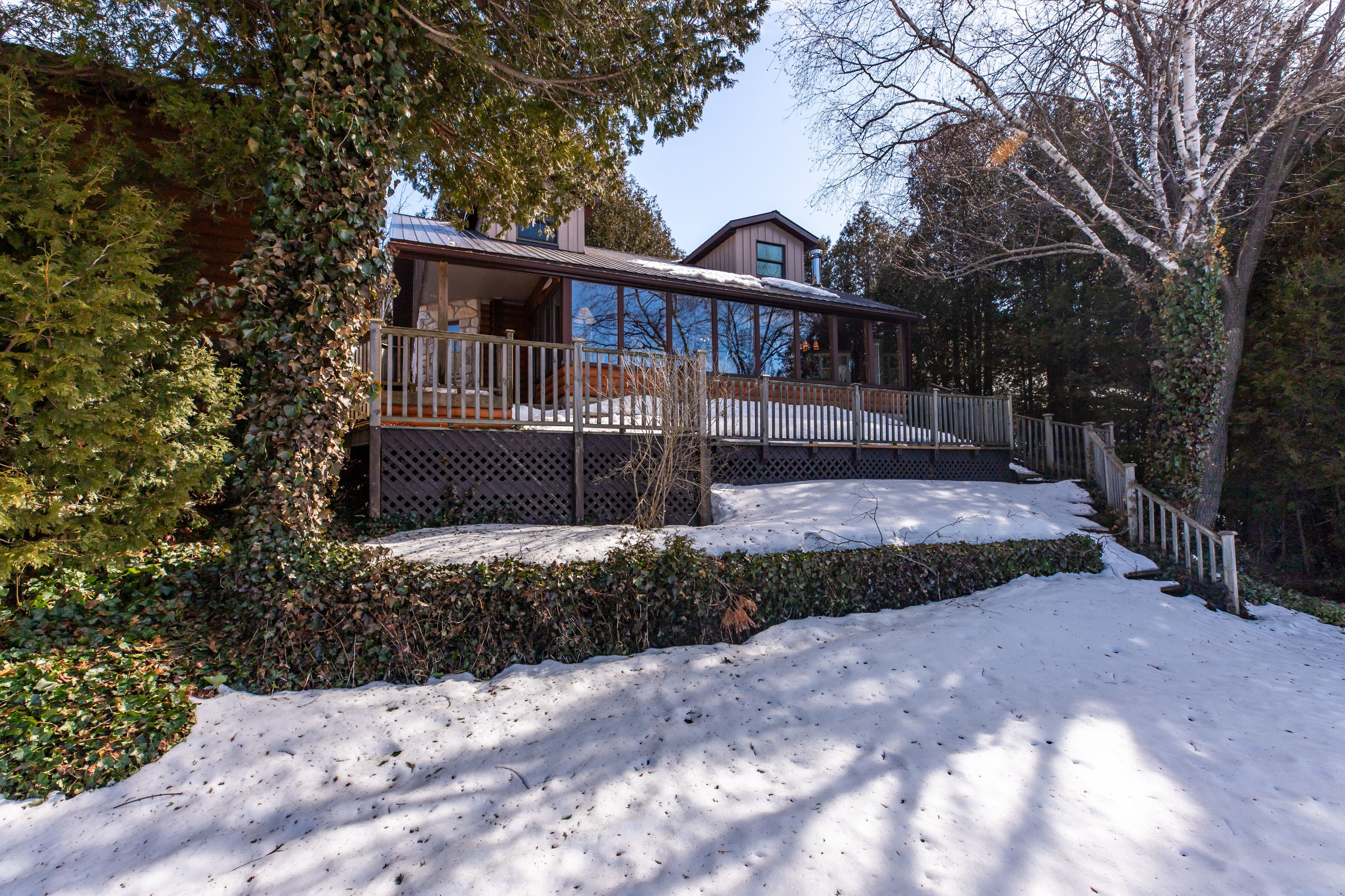 Discover a truly unique waterfront retreat in the charming hamlet of lion's head. This exceptional property combines privacy, character, and convenience, all set along a year-round paved road with direct access to the famed bruce trail and stunning niagara escarpment vistas. Boasting approximately 93 feet of immaculate shoreline on the clear waters of georgian bay, the property features a beautifully crafted frontier log home, blending rustic elegance with classic stone accents. A spacious garage and versatile workshop, along with a cozy bunkhouse, offer ample space for guests, hobbies, or storage. Adding to the serene setting, a natural spring-fed stream winds through the grounds, complete with gentle waterfalls that create a tranquil, storybook atmosphere. From the backyard, take in sweeping views of georgian bay and the escarpment-a perfect backdrop for relaxation or entertaining. Designed for year-round enjoyment, the home is serviced by a drilled well and septic and features a wood-burning stove that enhances its warm, inviting cottage feel. Just a short walk away, you'll find the harbour, sandy beach, marina, grocery store, hospital, bank, library, and local dining options. This rare lion's head property offers a one-of-a-kind opportunity to embrace the bruce peninsula lifestyle in a waterfront setting unlike any other.