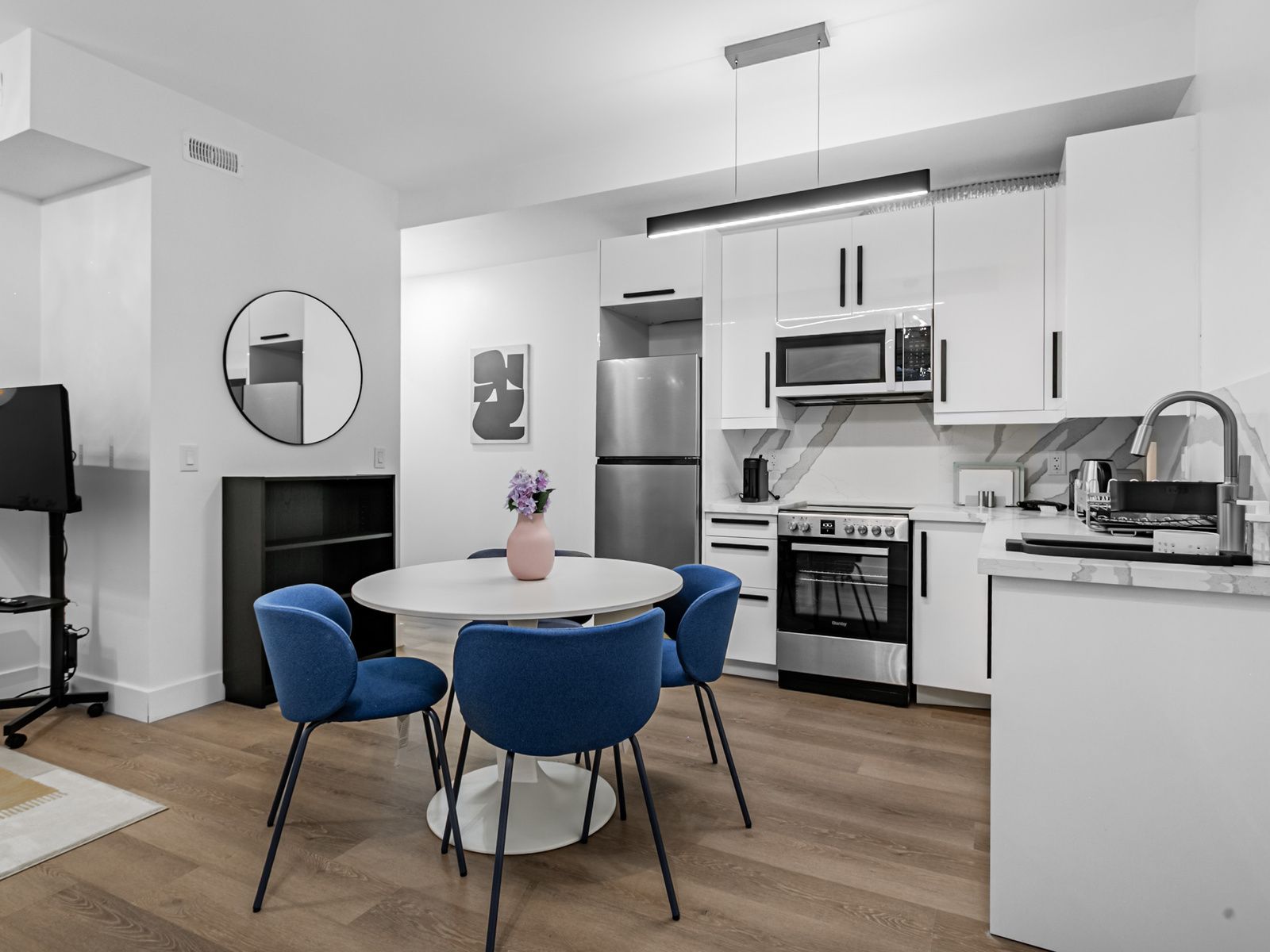 • Conveniently located near transit, cafes, and shopping options.
