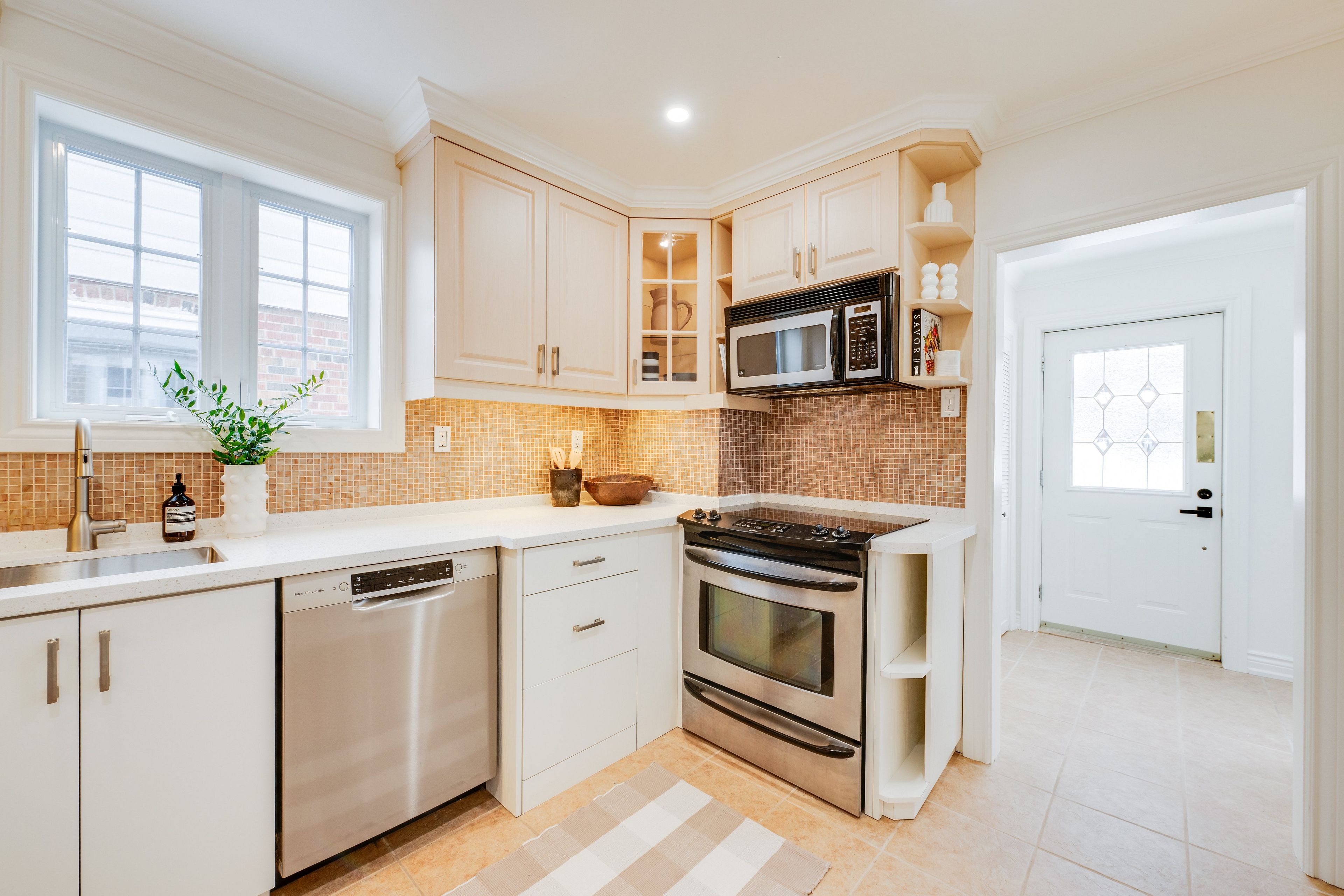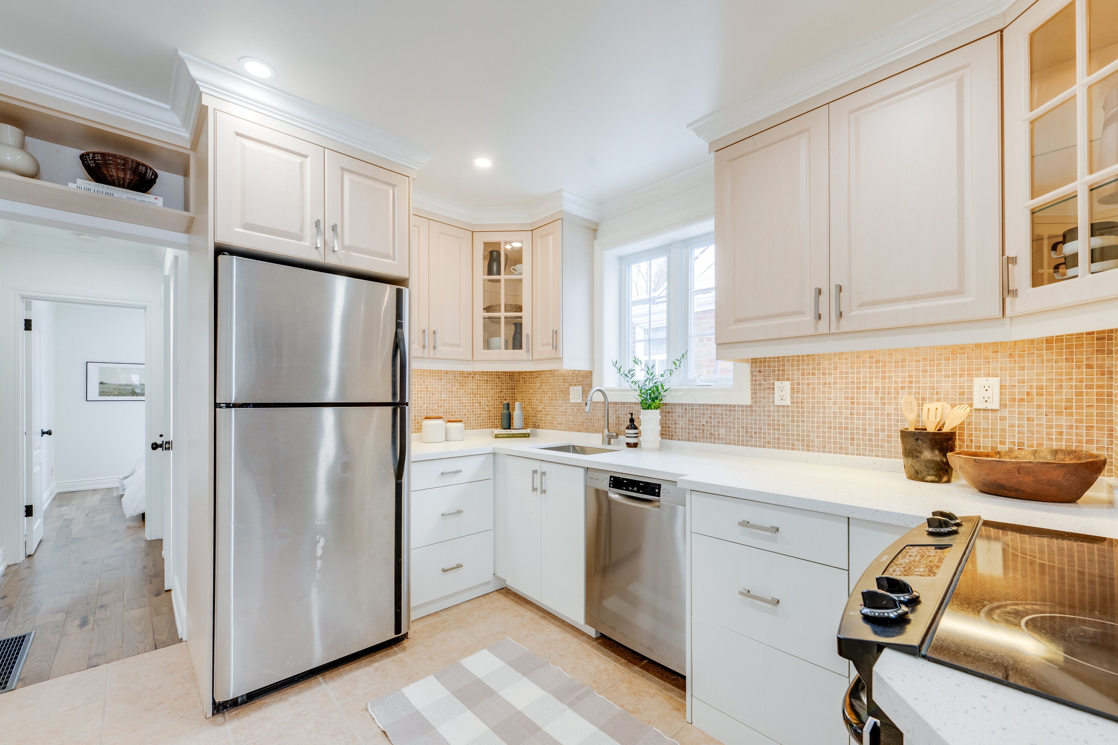 Beautifully updated 2+1 bedroom, 2 bathroom home on a quiet, centrally located street in a sought-after family-friendly neighbourhood. This wide semi has been sound proofed for extra privacy. The main floor is filled with natural light from large south-facing windows, creating a warm and inviting space. Two generously sized bedrooms are tucked at the back of the home, with a lovely deck off the rear bedroom - perfect for morning coffee, working from home, or unwinding at the end of the day. It is also equipped with a gas hookup for a bbq or fireplace. The fully renovated lower level (completed with permits) is truly exceptional, offering a spa-like bathroom, with heated flooring, an additional bedroom or oversized office, and a spacious family room with a cozy gas fireplace. With a walk-out to a beautifully landscaped, two-tiered interlock backyard, this space is ideal for entertaining. Enjoy summer evenings with a built-in gas bbq hookup and the rare benefit of backing directly onto blantyre public school. Surrounded by parks and a strong sense of community, and just a short stroll to kingston road village with its shops, cafés, and local restaurants, this is a truly special home in an fantastic location.