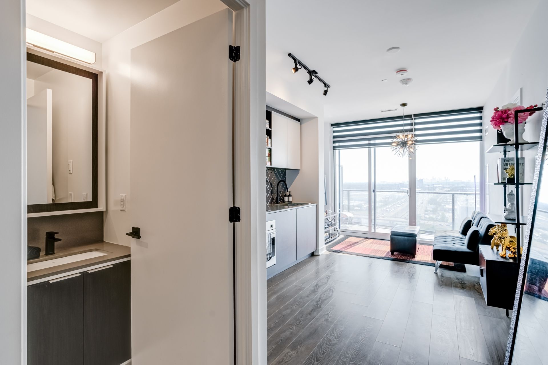Welcome to the luxurious zorra condos-elegantly tailored for modern lifestyle and comfort. This beautifully upgraded 1 bedroom + den suite offers an ideal blend of style and practicality. Featuring a sleek, modern kitchen, an upgraded washroom, and a spacious den-perfect as a home office or guest nook-paired with a 100? Sq? Ft west-facing balcony that fills the space with afternoon sunlight. Designer finishes flow throughout the open-concept layout, accentuated by an inviting fireplace, central air conditioning, and laminate (carpet- free) flooring. Enjoy world-class building amenities including a rooftop pool with panoramic views, bbq area, fully equipped gym, games room, party room, and 24/7 concierge service, all within a vibrant, growing community with quick access to the gardiner, ttc, sherway gardens, and downtown core. The unit boasts over $25k in upgrades. Available furnished and unfurnished. Parking included!