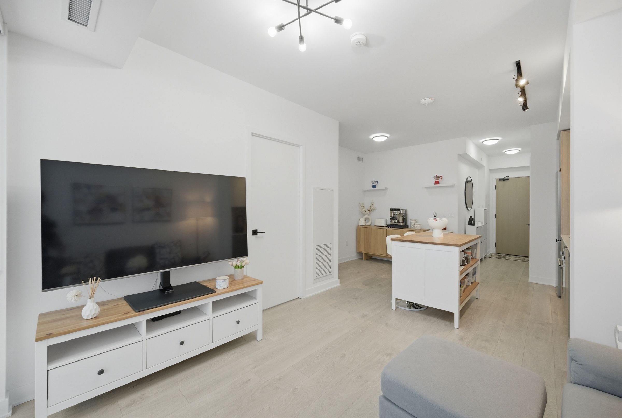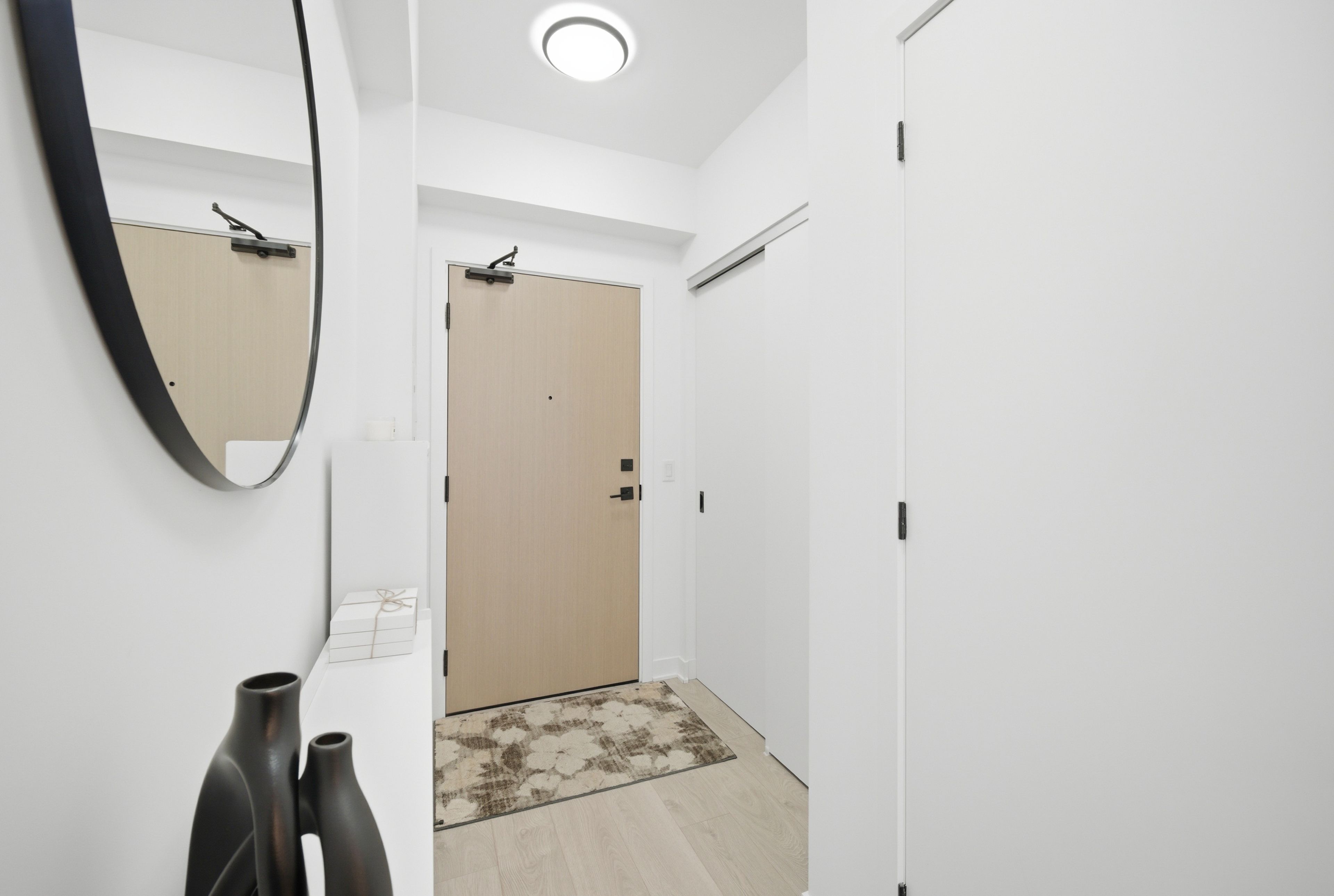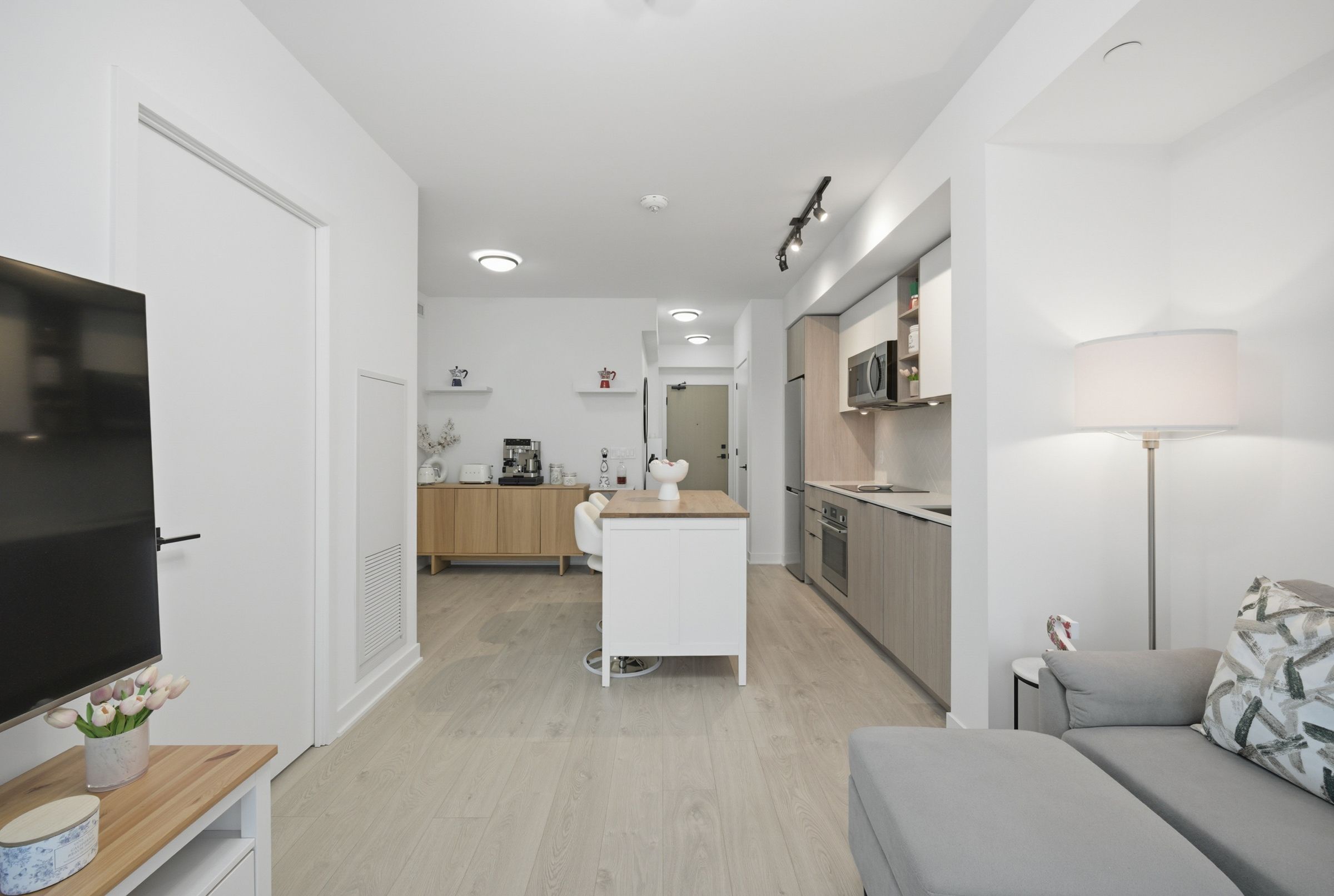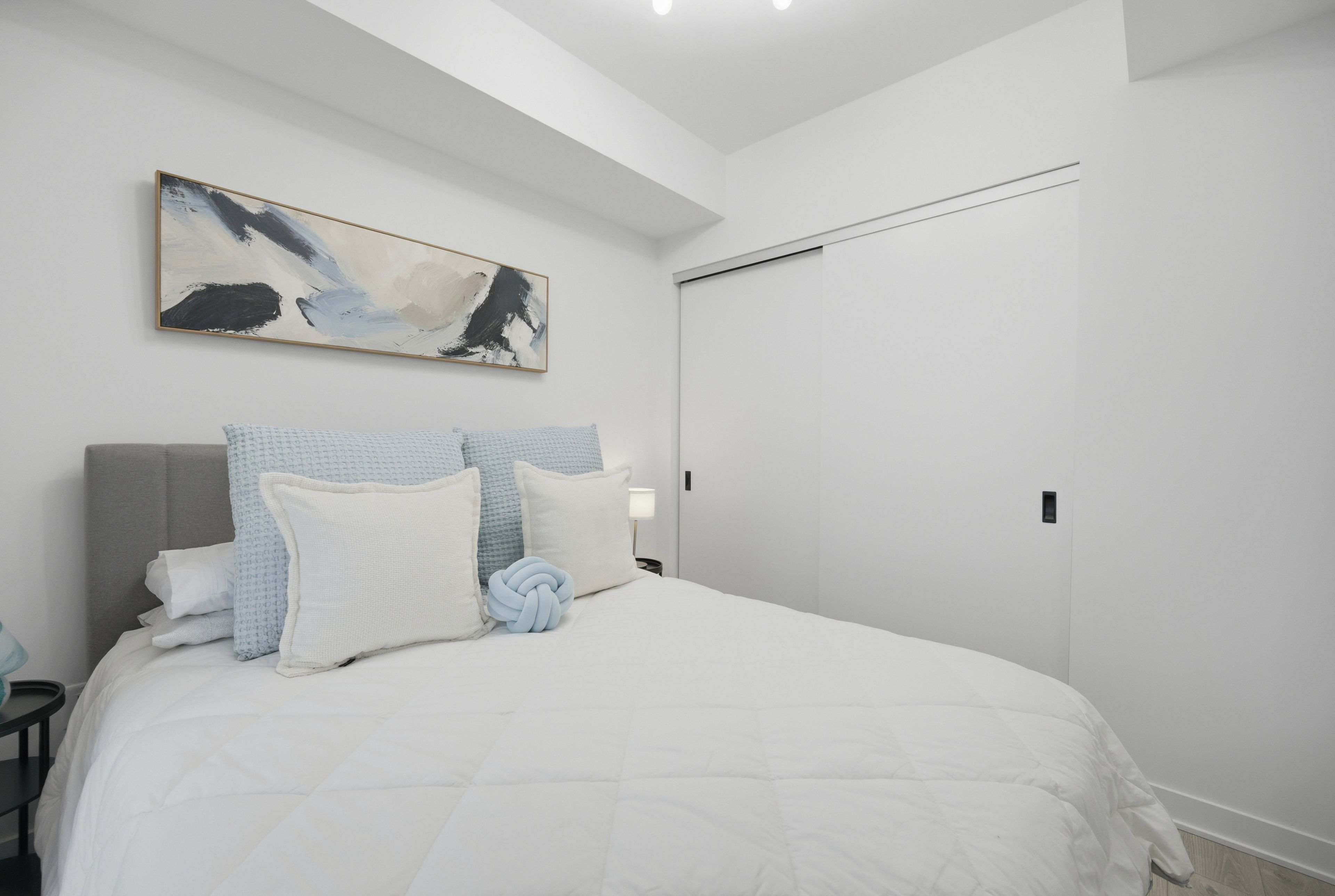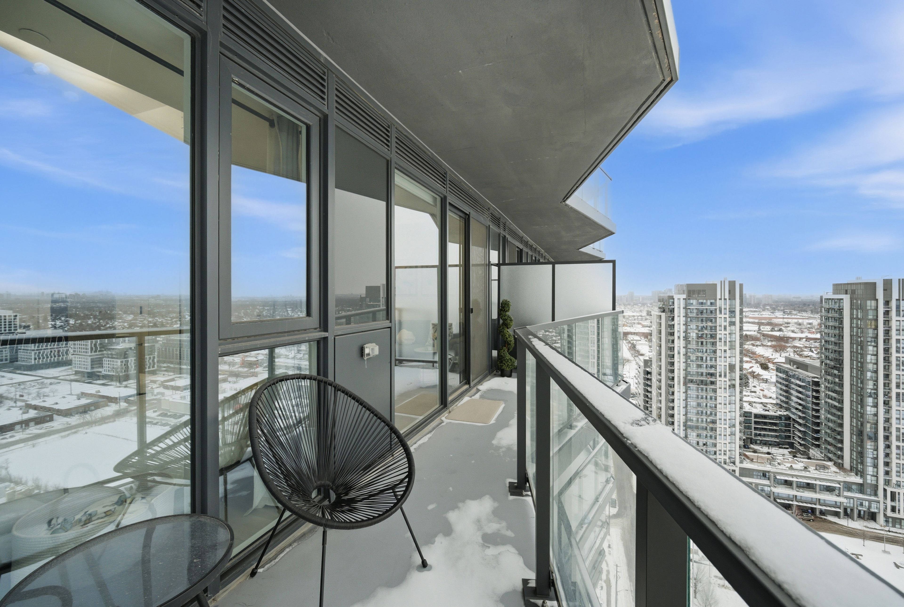 • Stunning panoramic lake and city skyline views from a spacious balcony.