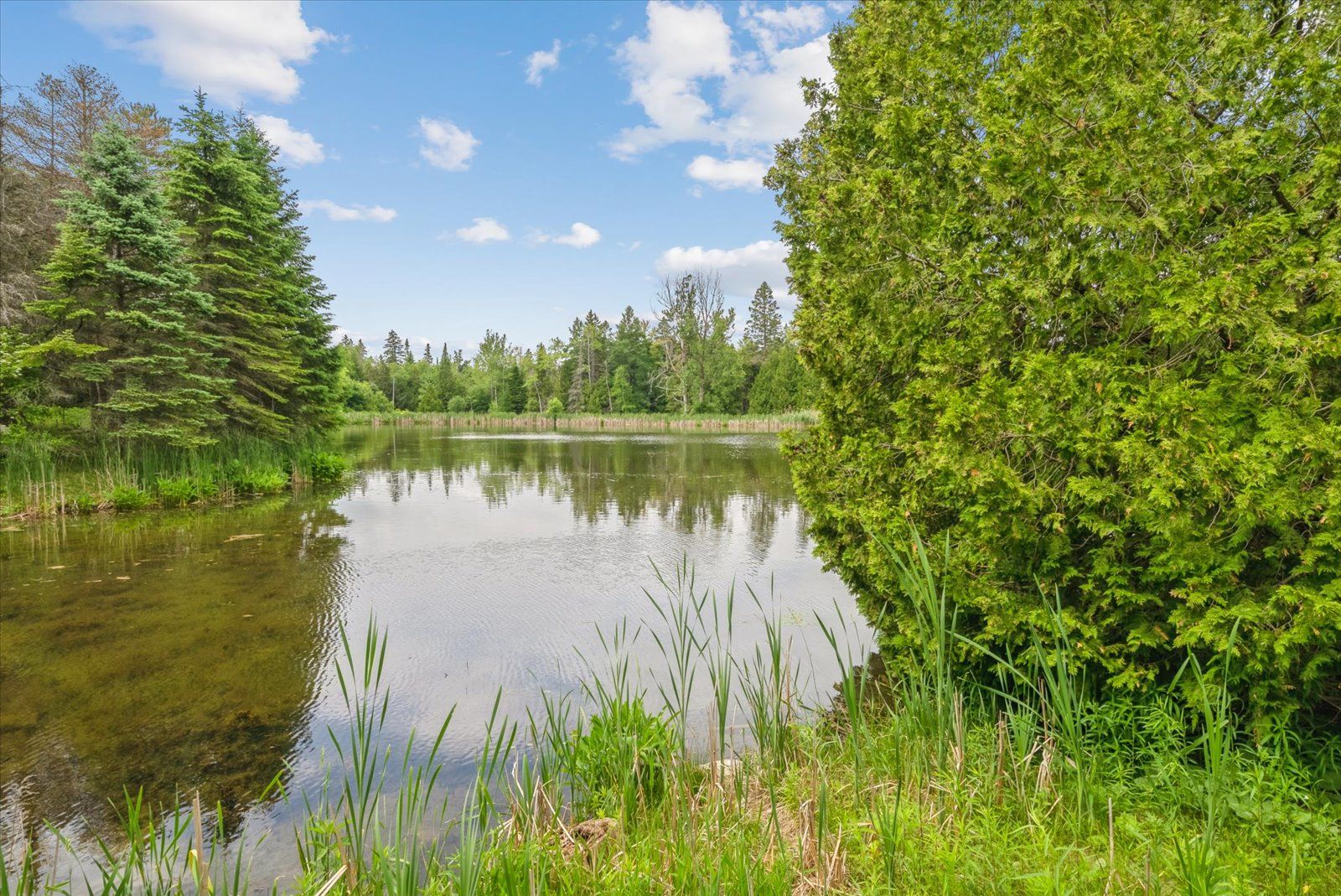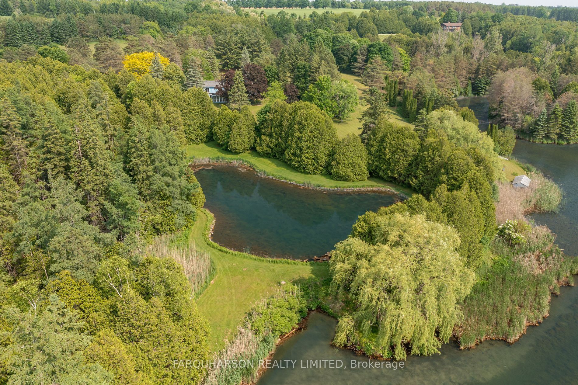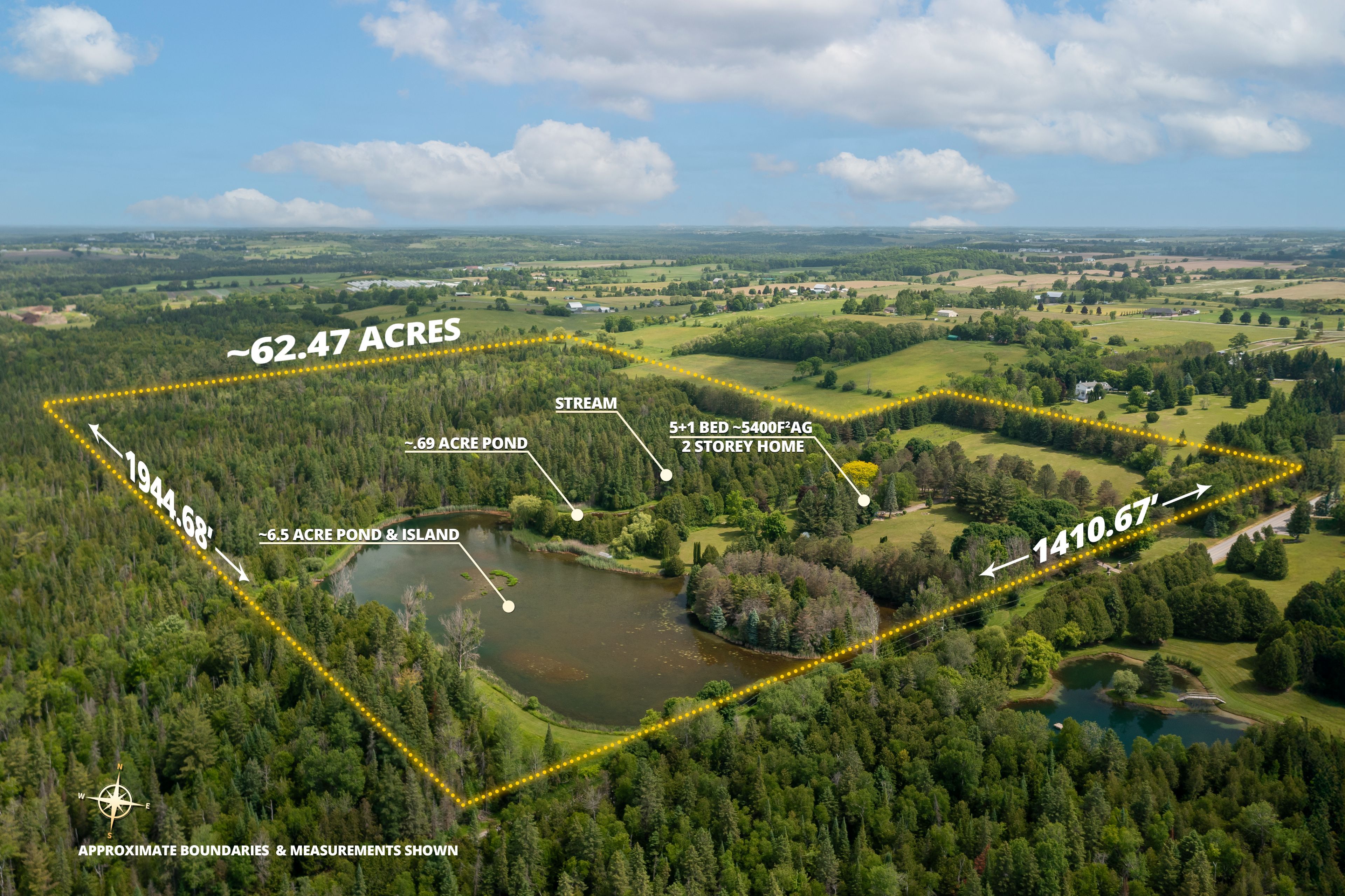 Refresh this real estate script but keep it same length or shorter: discover timeless charm, modern comfort, and breathtaking natural beauty on this extraordinary 62-acre one of a kind retreat. This rare offering features over 7 acres of tranquil ponds including one with its own private island surrounded by mature trees, manicured grounds, and a peaceful, babbling stream. A long, winding driveway welcomes you to an impressive 5,400 square foot two-storey residence plus a partially finished basement, offering 6 bedrooms and 7 bathrooms. Thoughtfully designed with multiple walkouts, this home captures panoramic views of the lush landscape and serene waters from nearly every room. Inside, you'll find a blend of elegance and functionality. Two main floor bedrooms, including one with a walk-in dressing room and private ensuite. Three additional bedrooms on the second level, along with two fully renovated bathrooms featuring heated floors, an upper-level recreational room with a wet bar and gleaming hardwood floors throughout. The lower level offers flexibility with a separate entrance, bedroom, living area, and kitchenette perfect as a guest suite or in-law setup. Whether you're canoeing across the pond, reading beside the stream, or casting a line for an afternoon of fishing, this estate is a true nature lover's paradise. Located on a quiet road just 8 minutes from mount alberts shops and dining, and only 20 minutes to highway 404 and all the amenities of newmarket this is the perfect blend of rural tranquility and modern convenience.