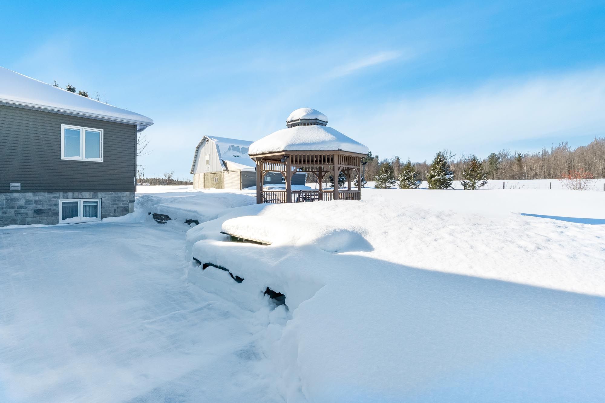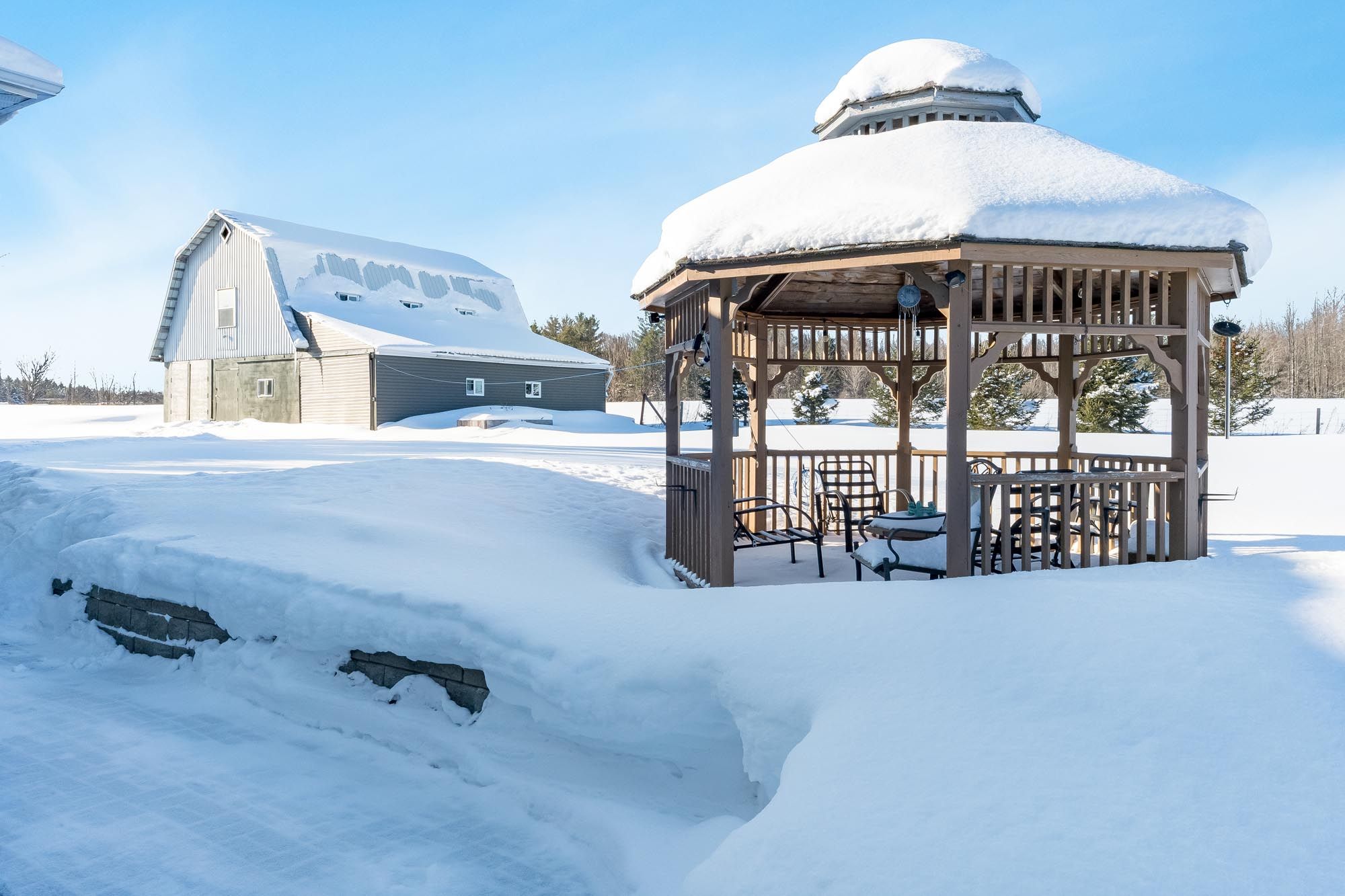 Top 5 reasons you will love this home: 1) custom built in 2014, this raised bungalow offers comfort, craftsmanship, and hardwood flooring throughout, an airy open-concept layout, an induction stove, a generac generator for peace of mind, and a charming gazebo that invites you to slow down and enjoy the outdoors 2) perfectly positioned for the best of both worlds, enjoy a peaceful rural setting just 10 minutes to midland, 10 minutes to the beach, and only 2 minutes to wyevale, offering quiet country living without sacrificing everyday convenience 3) set on over an acre of land, this property delivers your own private rural retreat with endless space to roam, garden, entertain, or simply enjoy the serenity that surrounds you 4) exceptional outbuildings elevate the property, including a fully insulated and propane-heated attached double garage with rear access, plus a large barn with electrical service and space for additional vehicles, ideal for a workshop, hobby space, or potential future conversion 5) the fully finished basement adds incredible flexibility with a kitchenette and in-law potential, making it perfect for extended family, guests, or multi-generational living. 1,542 above grade sq. Ft. Plus a finished basement.