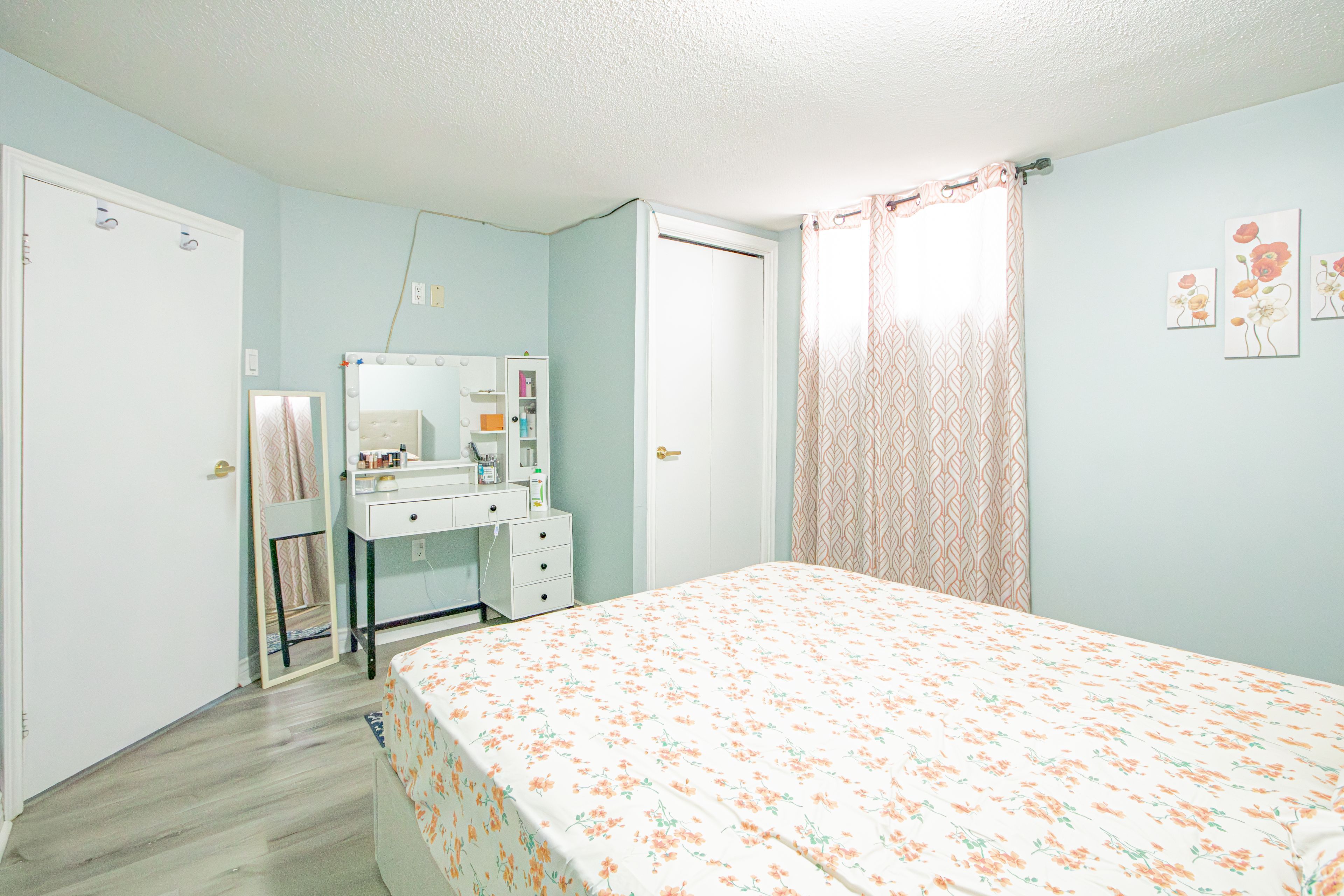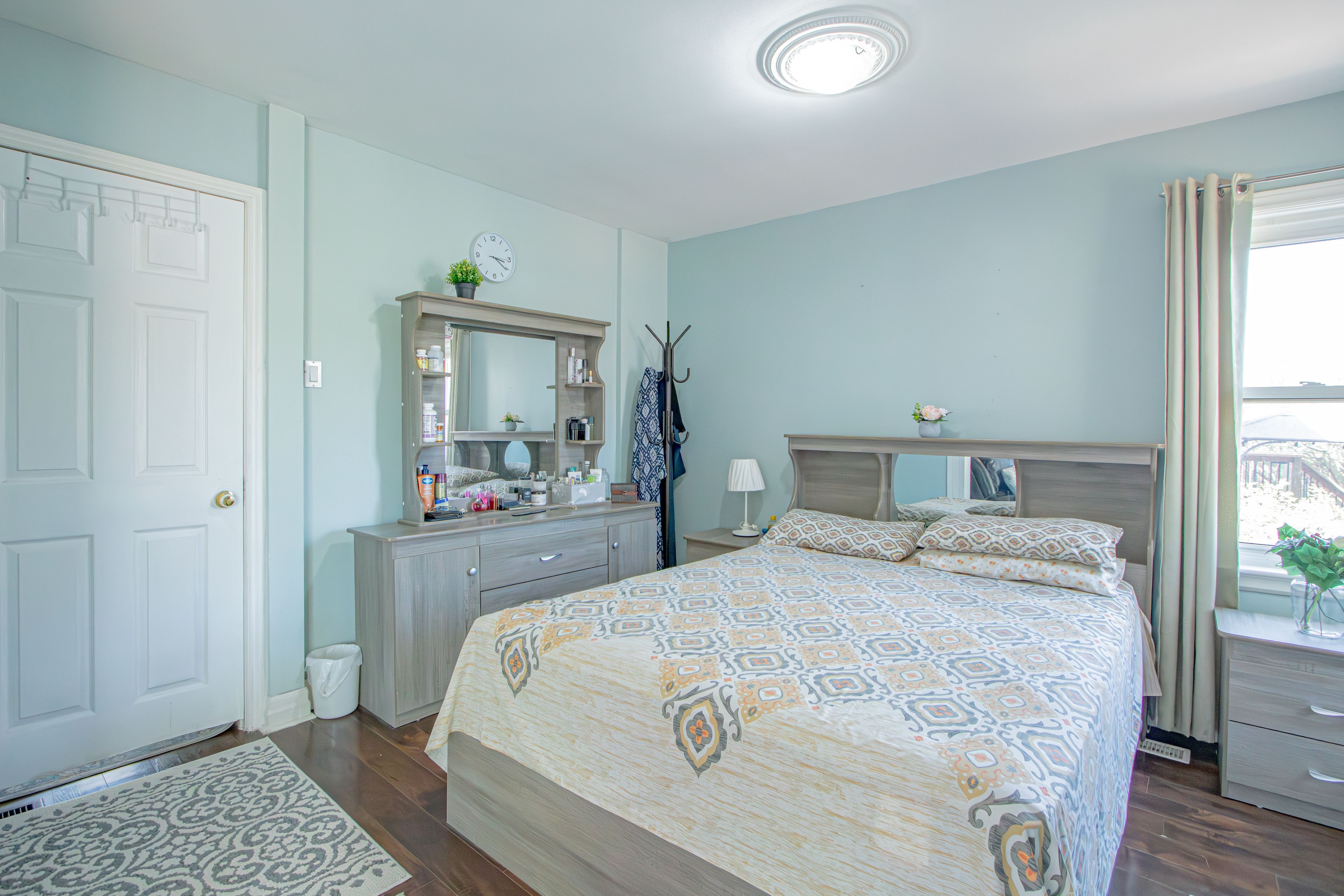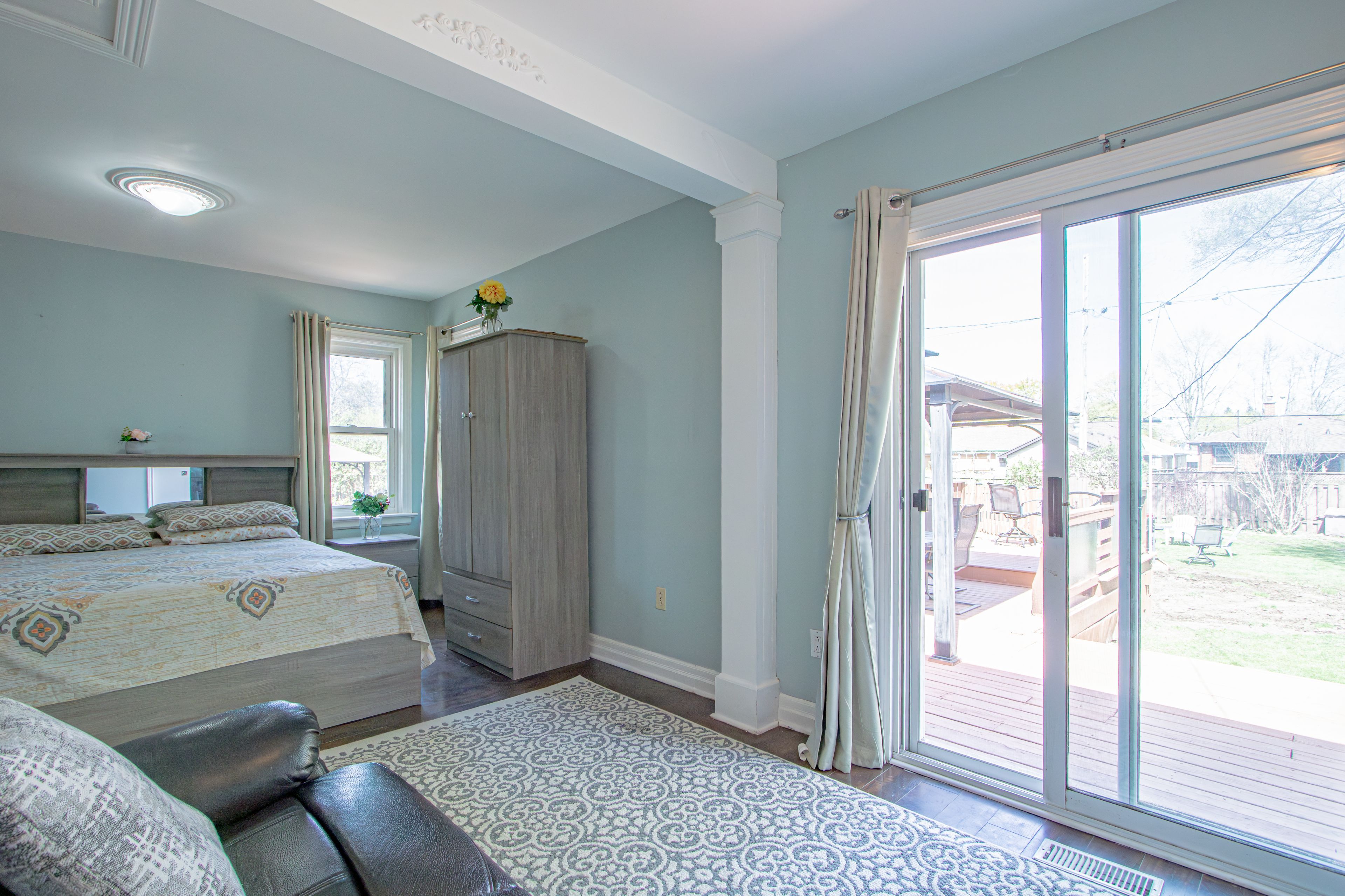 • Spacious primary bedroom with a walkout to the backyard deck.