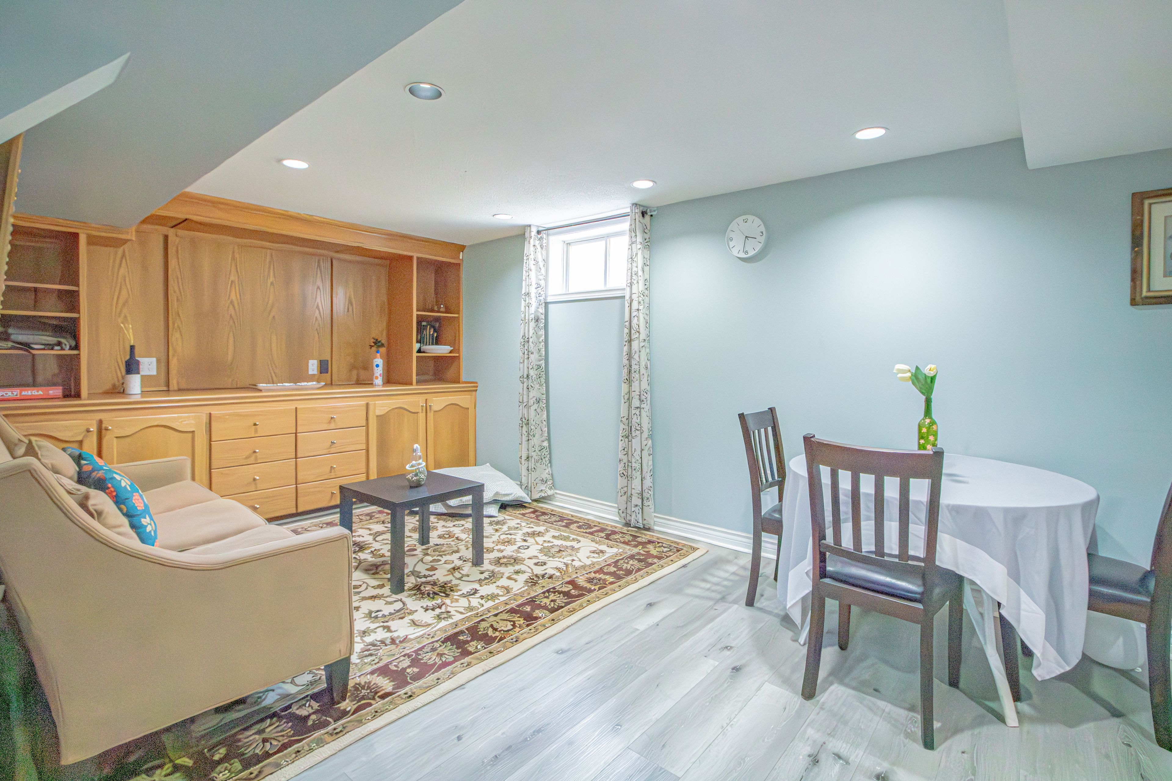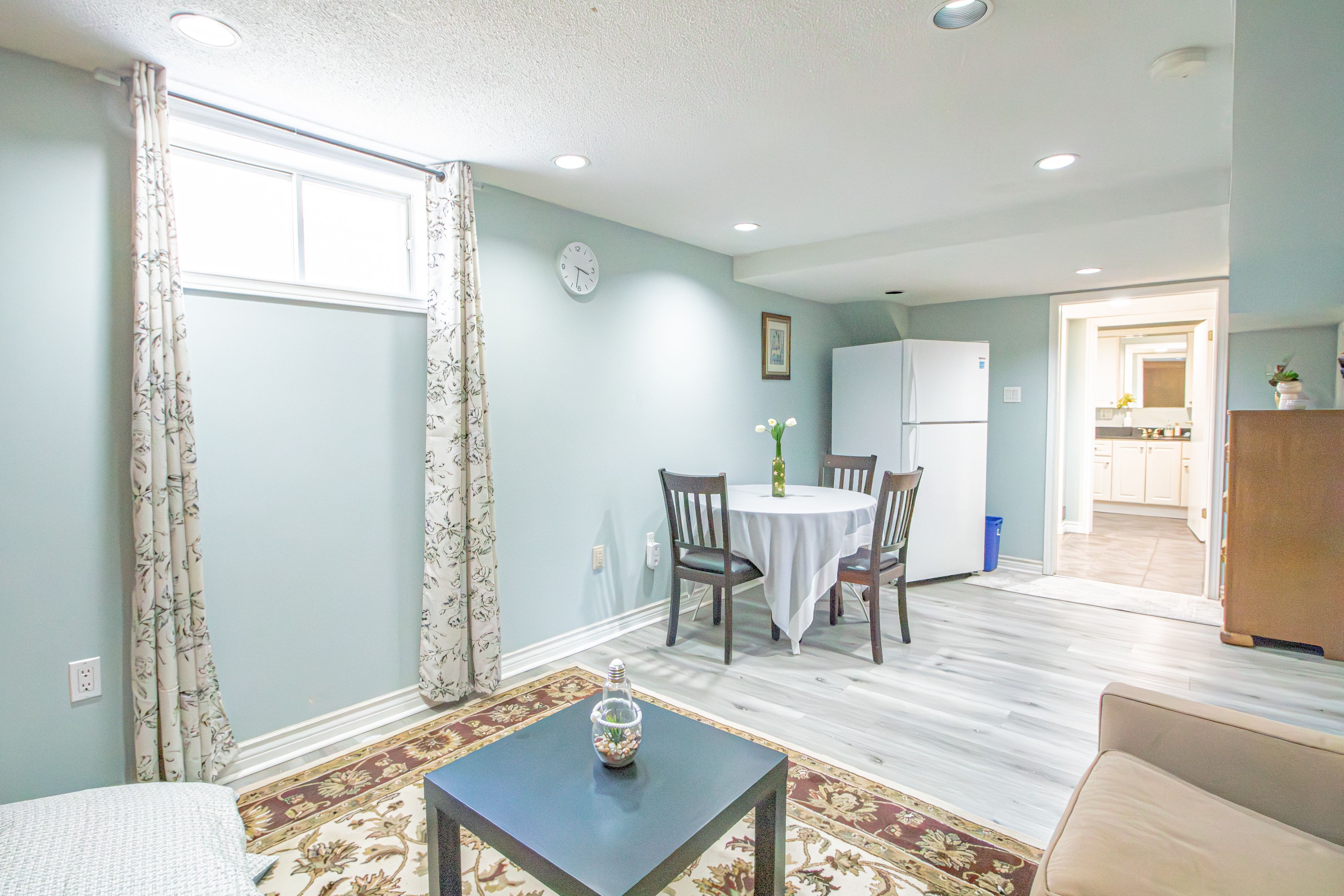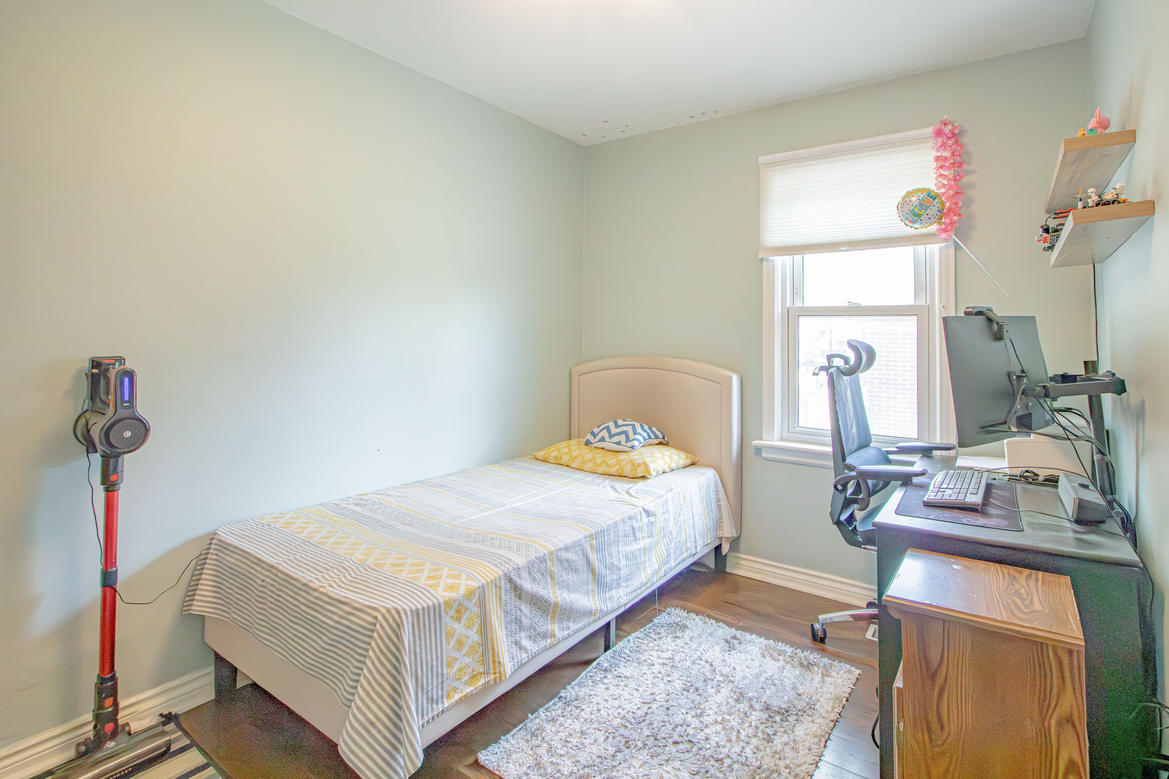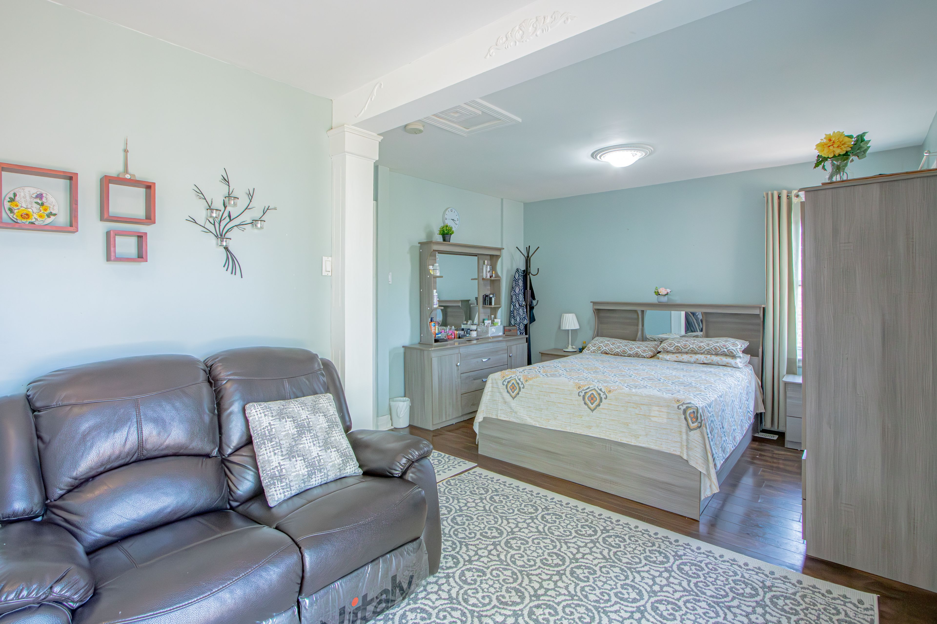 • Spacious primary bedroom with a walkout to the backyard deck.