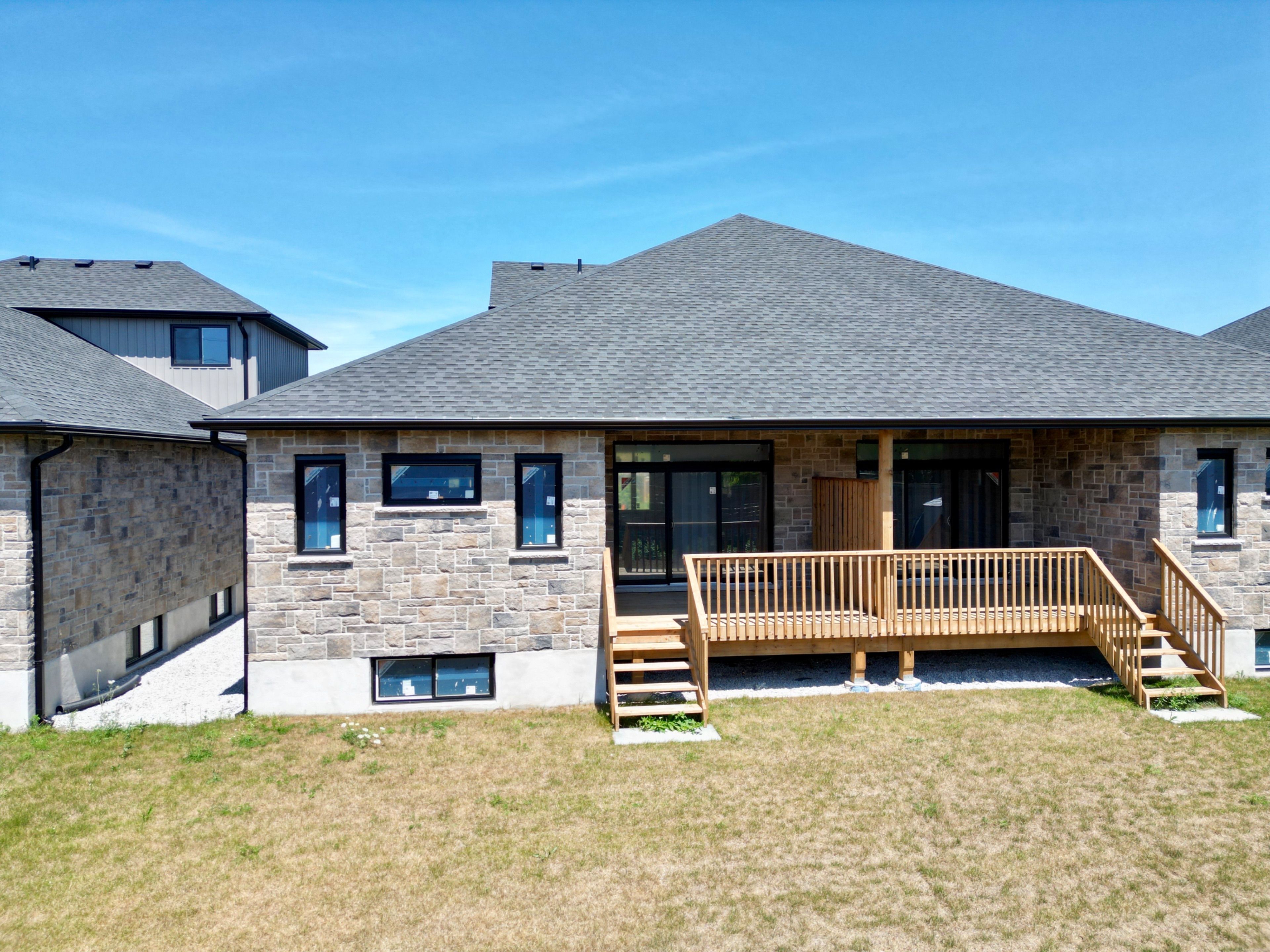 The exterior is complete for this brand new 2 storey freehold townhome at 360 rosner drive in port elgin. This model is 1703 sqft with a full unfinished basement that can be finished for an additional $30,000 including hst. The basement would include a family room with gas fireplace, full bath, den and 4th bedroom. The main floor will feature 9ft ceilings, quartz counters in the kitchen, hardwood and ceramic flooring, 9ft patio doors to a covered back deck measuring 10 x 12'6, primary bedroom with ensuite and laundry. Upstairs there are 2 bedrooms and a 4pc bath. The yard will be entirely sodded and the driveway is concrete. Hst is included in the asking price provided the buyer qualifies for the rebate and assigns it to the seller on closing. Interior colour selections maybe available for those that act early. Prices subject to change without notice
