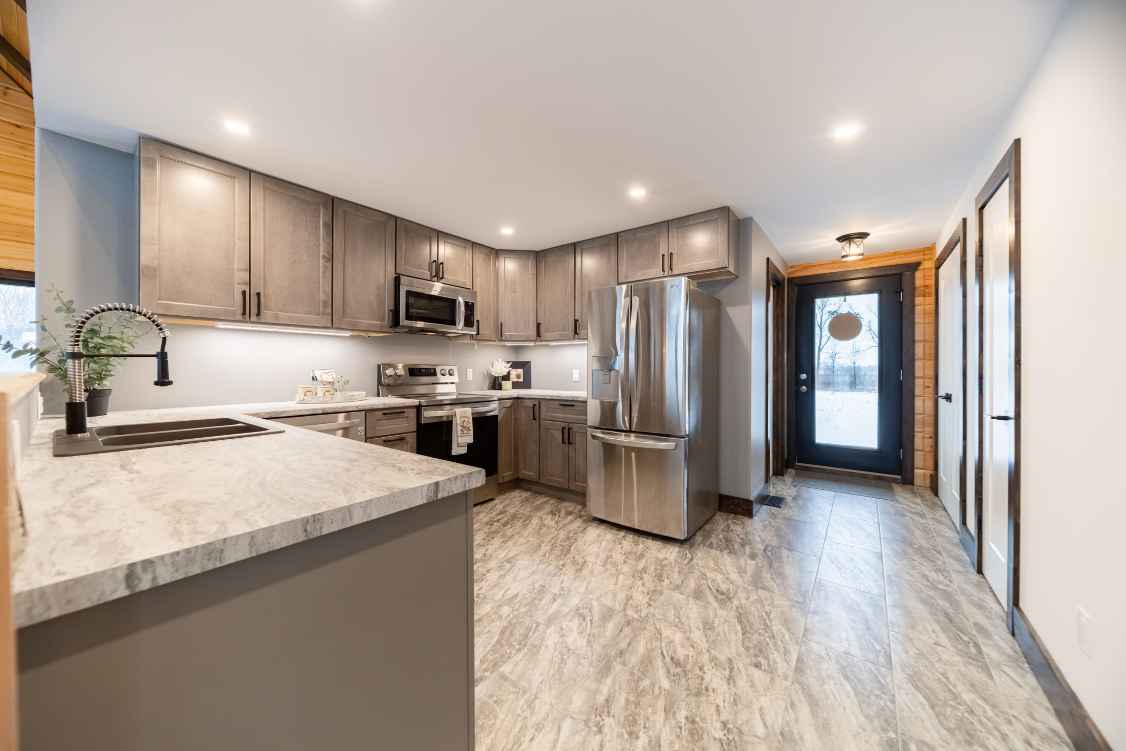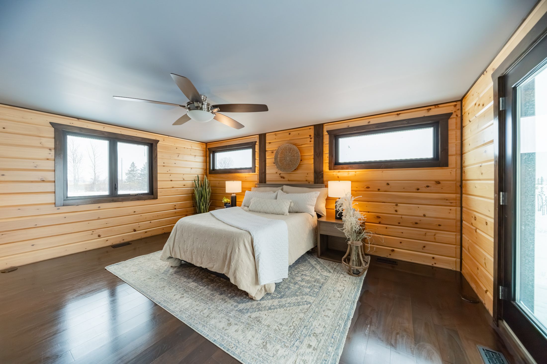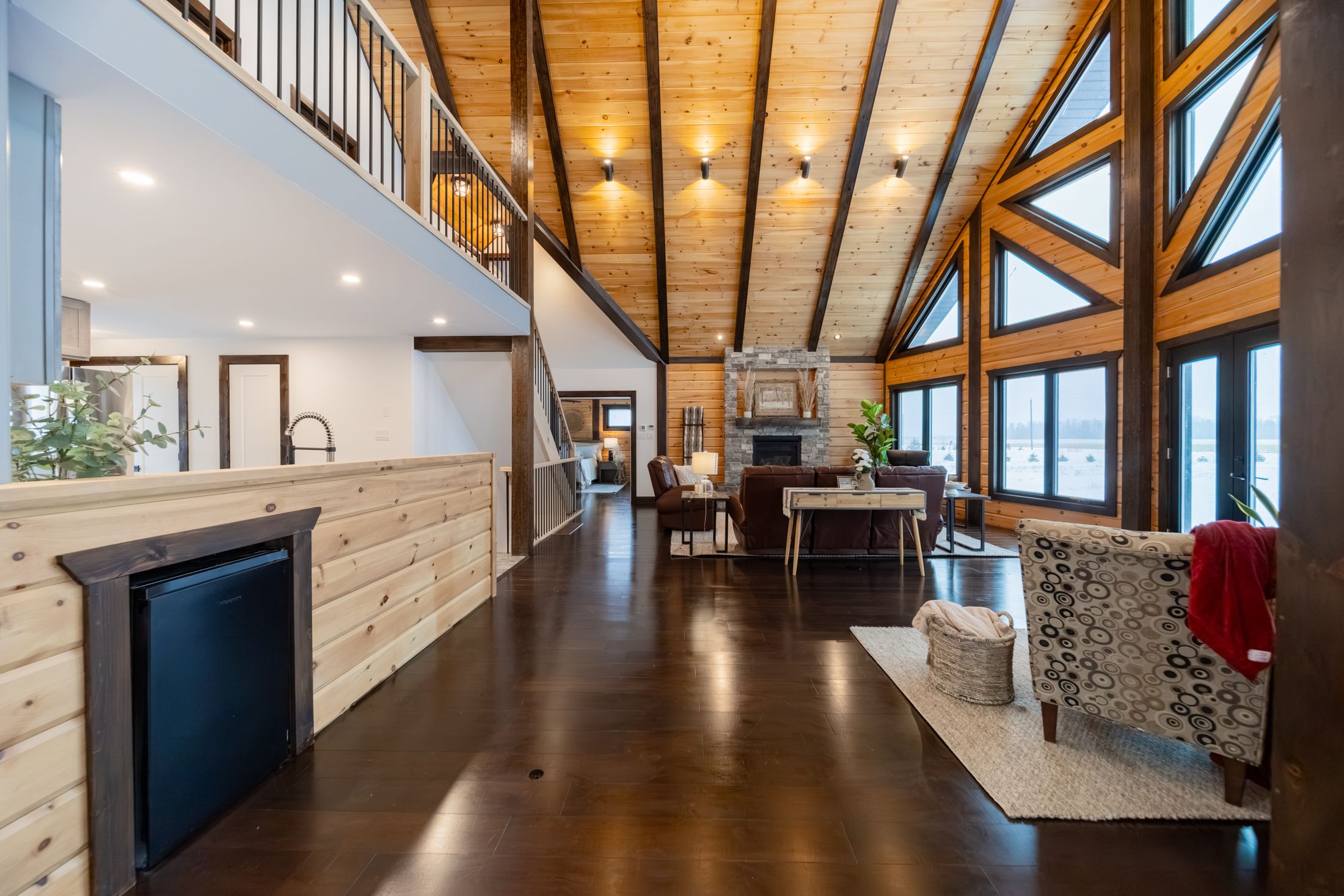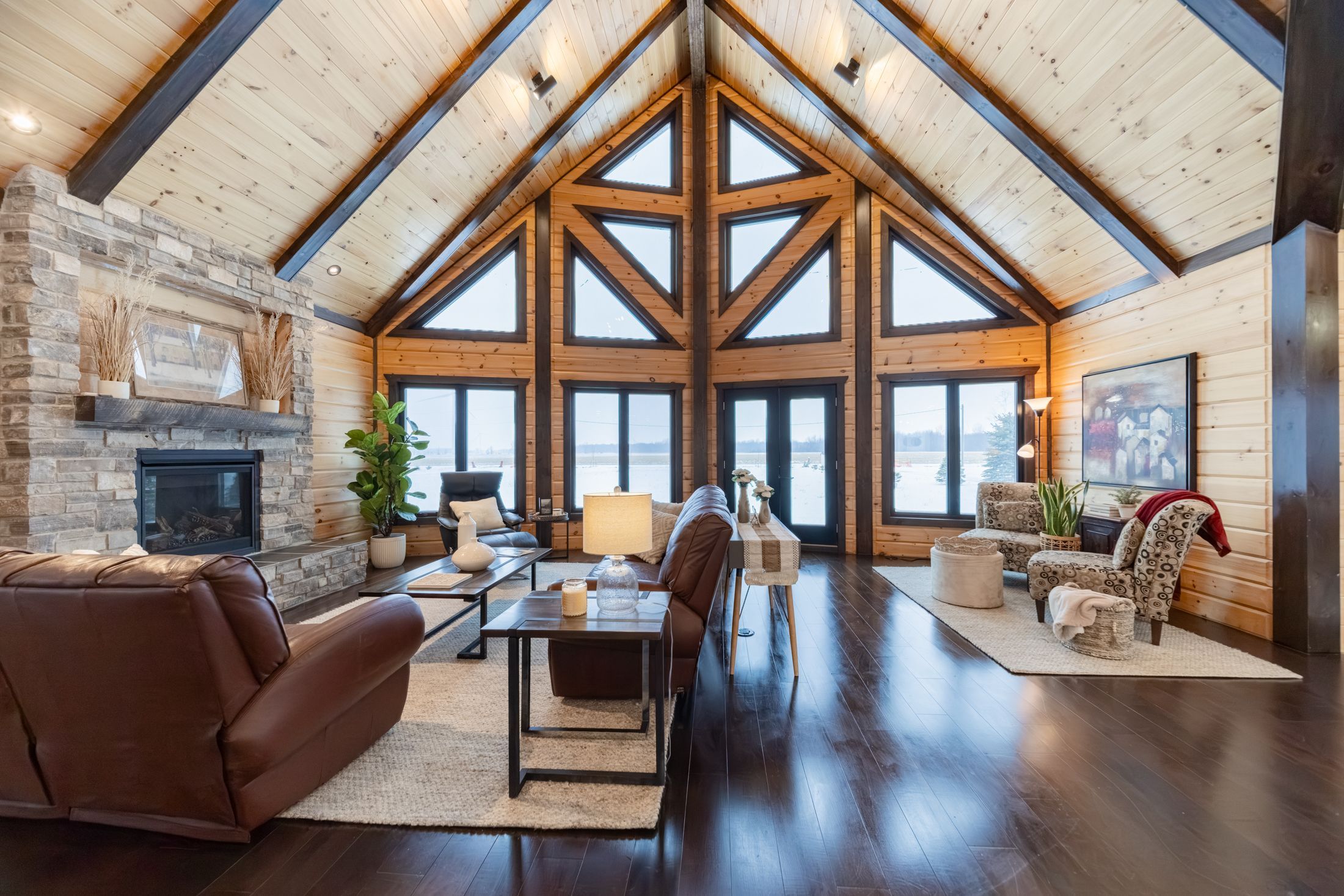 Available under power of sale! Log home style lovers, contractors, builders, and real estate investors! Take note! Just minutes from grand bend, huron country playhouse, dark horse winery and nearby beach, discover an impressive 97% finished timber block home nestled on a 4 acre property. Timber block recently quoted a value of $1. 1 million for this modified dakota model that combines classic charm with modern eco-friendliness. A-frame architecture meets comfort in this 3+2 bedroom home. Patented factory made wood panels provide superior insulation and an aesthetically charming log home appearance. The 2100 sq foot upper level consists of stunning wood cathedral ceilings, top to bottom windows that allow an abundance of natural light, gas stone fireplace, main floor ensuite with walk-in closet and a bathroom/mudroom area. A wooden stairway with black metal spindles leads to a cozy loft area plus two bedrooms and a bathroom. The partially finished 1400 sq foot lower level offers 9 ft high ceilings, ample space and abundant natural light to create your dream area. With drywall in place it features two bedrooms , a family room with rough in fireplace, and a three-piece bathroom rough-in just waiting for your personal touches. Endless outdoor space to design and build your dream garage/workshop, garden or landscaping project. Additional features include a gas furnace, tankless water heater, sump pump, heat recovery ventilation (lifebreath hrv), a generator for power outages (generac) and a reliable easy access septic system (polylok).