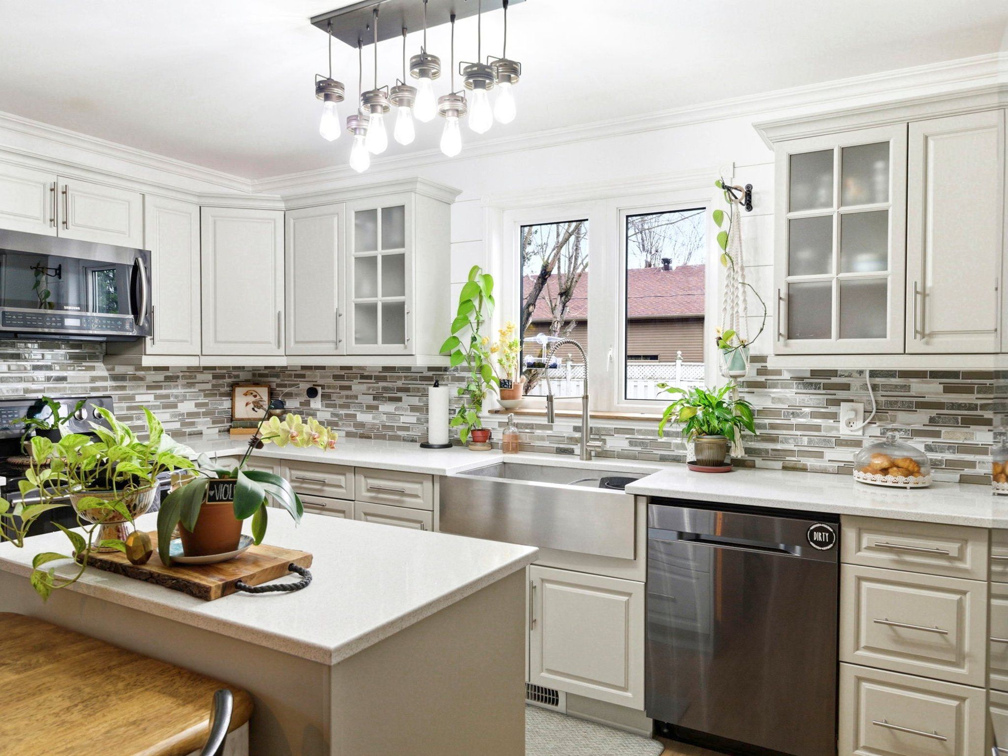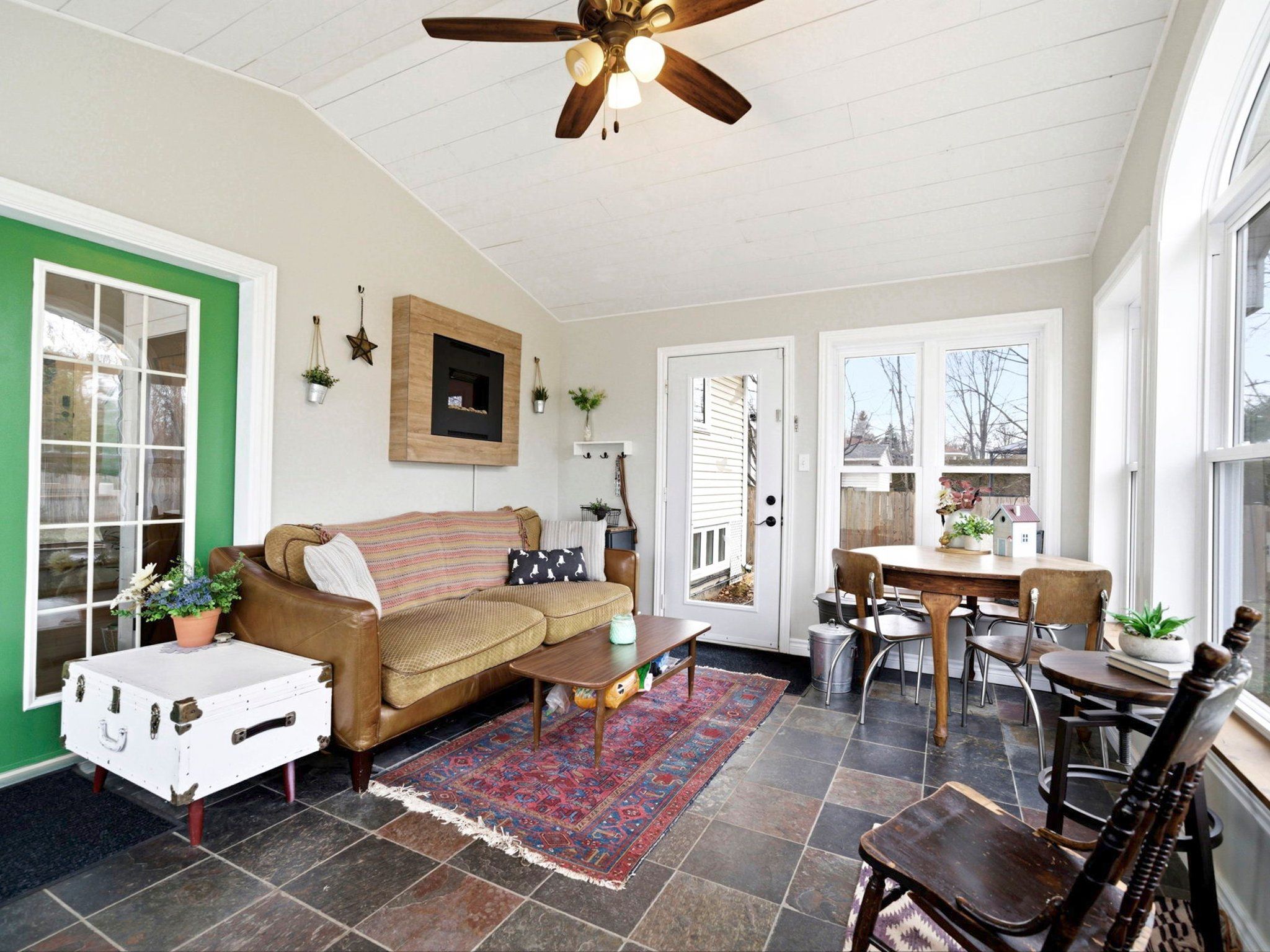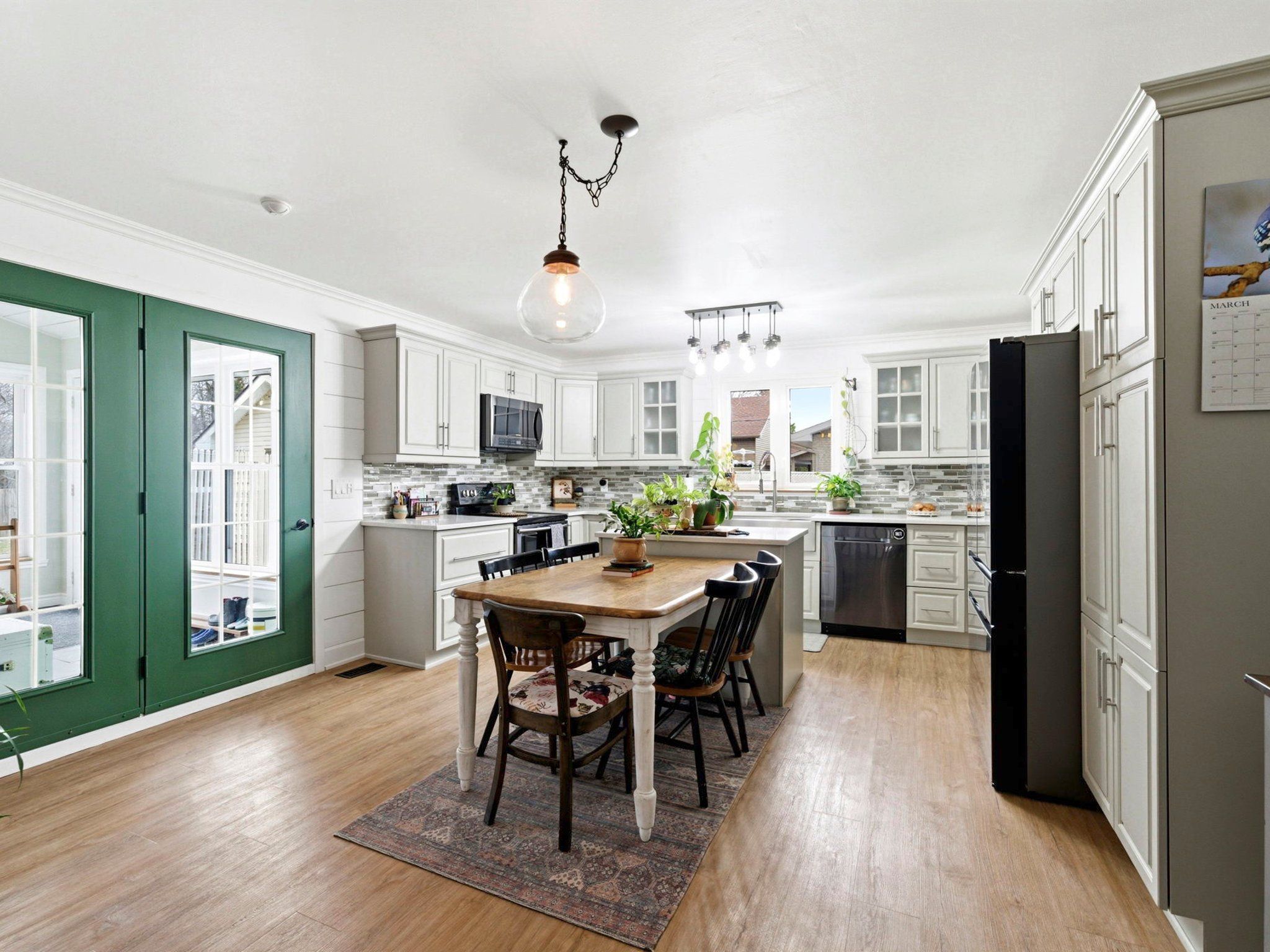 • Updated eat-in kitchen flowing into a charming sunroom.