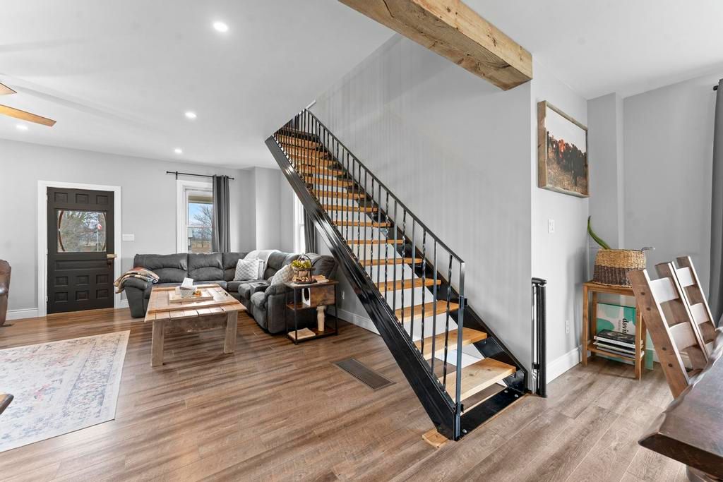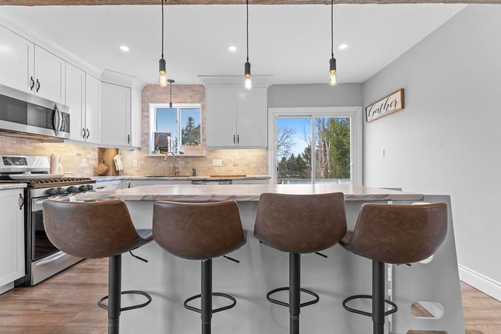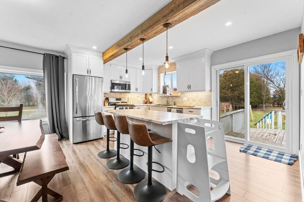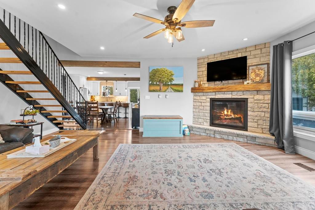 Beautifully updated 2 bed/ 2 bath house on greenway drive... Located between parkhill and grand bend. Large lot. Insulated detached garage with hydro. Brand new kitchen includes white shaker cabinets, island with bar seating and stainless steel appliances including a dishwasher & gas stove (2022). Glass sliders to the back deck. Designated dining area. Living room boasts a lovely gas fireplace and lots of windows. The barnboard beams on the ceiling and barn doors throughout the home add tons of character. New lvp flooring. Stunning 4-piece main floor bathroom with large walk-in shower and stand alone tub. Upstairs you'll find a large primary bedroom, medium sized 2nd bedroom and 3-piece bathroom including another stand alone tub. Lots of closets. Unfinished basement with laundry and storage rooms has spray foam insulation and a sump pump. Forced-air gas furnace (2015) and hwt (2015). Central air (2020). Metal roof (2020). Breaker panel (2019). Invisible fence. Fibre optics. Some updated windows. Covered veranda. Only 5 minutes from all the amenities that parkhill has to offer, 8 minutes to grand bend and 8 minutes to the pinery provincial park. You won't want to miss this one!