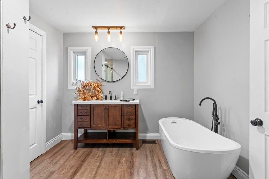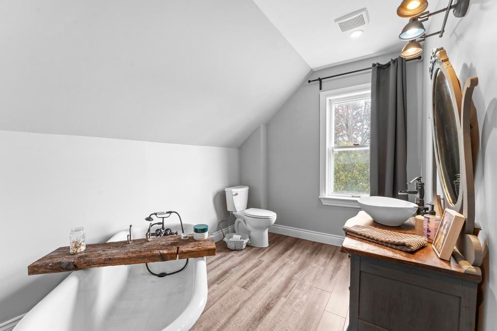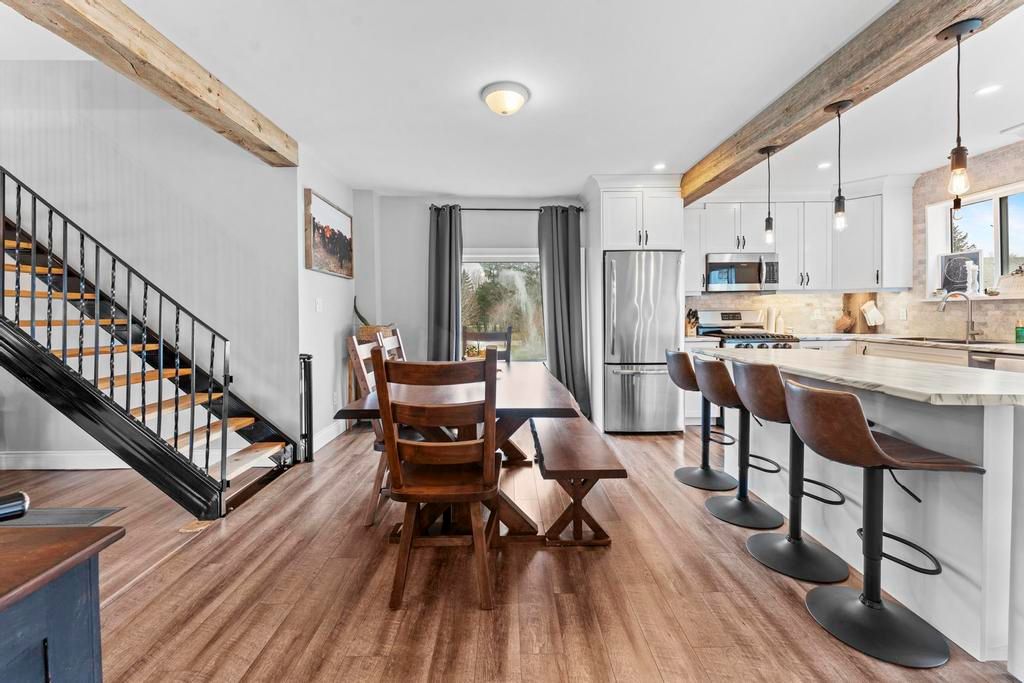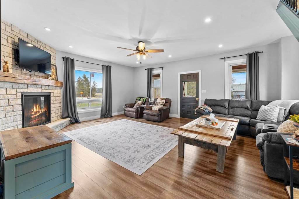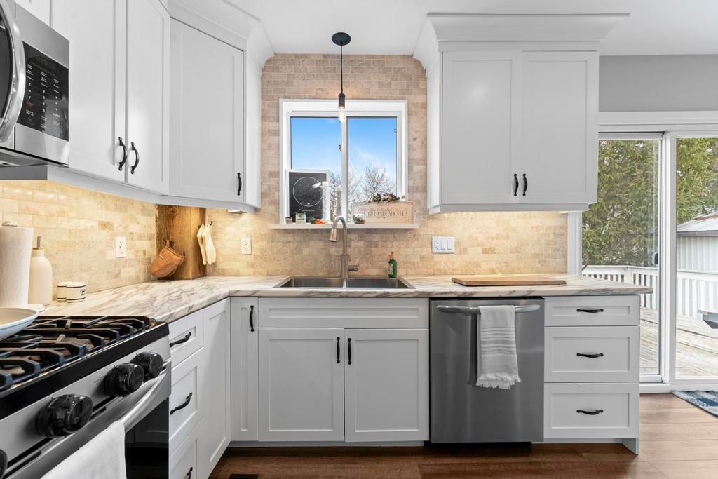 Beautifully updated 2 bed/ 2 bath house on greenway drive... Located between parkhill and grand bend. Large lot. Insulated detached garage with hydro. Brand new kitchen includes white shaker cabinets, island with bar seating and stainless steel appliances including a dishwasher & gas stove (2022). Glass sliders to the back deck. Designated dining area. Living room boasts a lovely gas fireplace and lots of windows. The barnboard beams on the ceiling and barn doors throughout the home add tons of character. New lvp flooring. Stunning 4-piece main floor bathroom with large walk-in shower and stand alone tub. Upstairs you'll find a large primary bedroom, medium sized 2nd bedroom and 3-piece bathroom including another stand alone tub. Lots of closets. Unfinished basement with laundry and storage rooms has spray foam insulation and a sump pump. Forced-air gas furnace (2015) and hwt (2015). Central air (2020). Metal roof (2020). Breaker panel (2019). Invisible fence. Fibre optics. Some updated windows. Covered veranda. Only 5 minutes from all the amenities that parkhill has to offer, 8 minutes to grand bend and 8 minutes to the pinery provincial park. You won't want to miss this one!