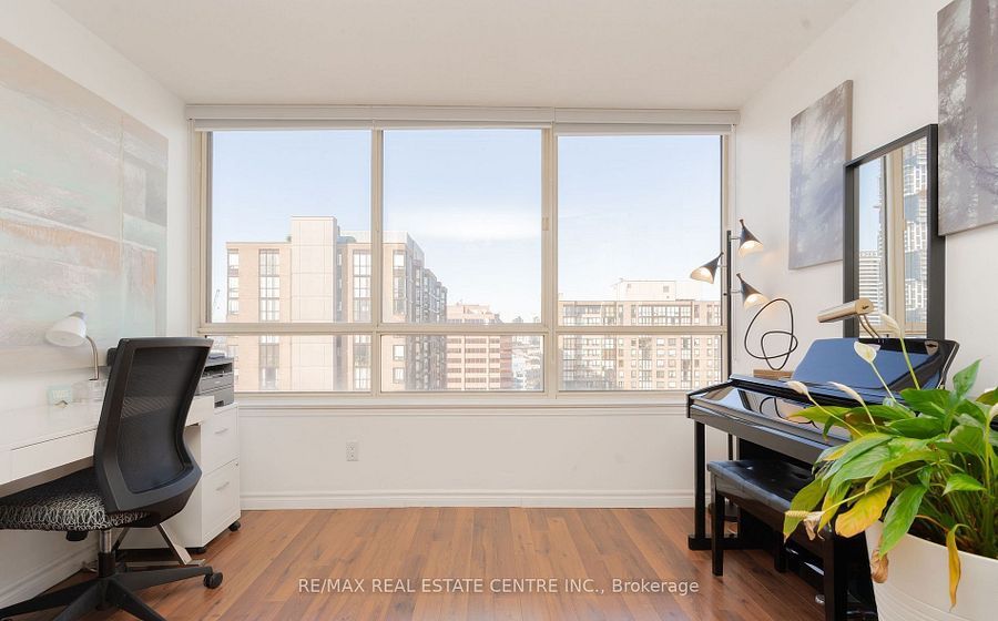 This unit shows 10++ don't miss out - den is a private separate room currently used as a 2nd bedroom!!! Only a few mins walk to sheridan college, square one mall & transit. Situated in prime location 836 sqft 1 bdrm + den (den is closed off and currently being used as a second bdrm). Wonderful amenities include - 24 hr gate house security, indoor saltwater swimming pool, guest suites, squash courts, tennis, theatre, party room, sauna, hot tub, gym. Close to public transit, restaurants and shops and kariya park. Maintenance fee includes *(hydro, cable tv, internet, heat and water)*.