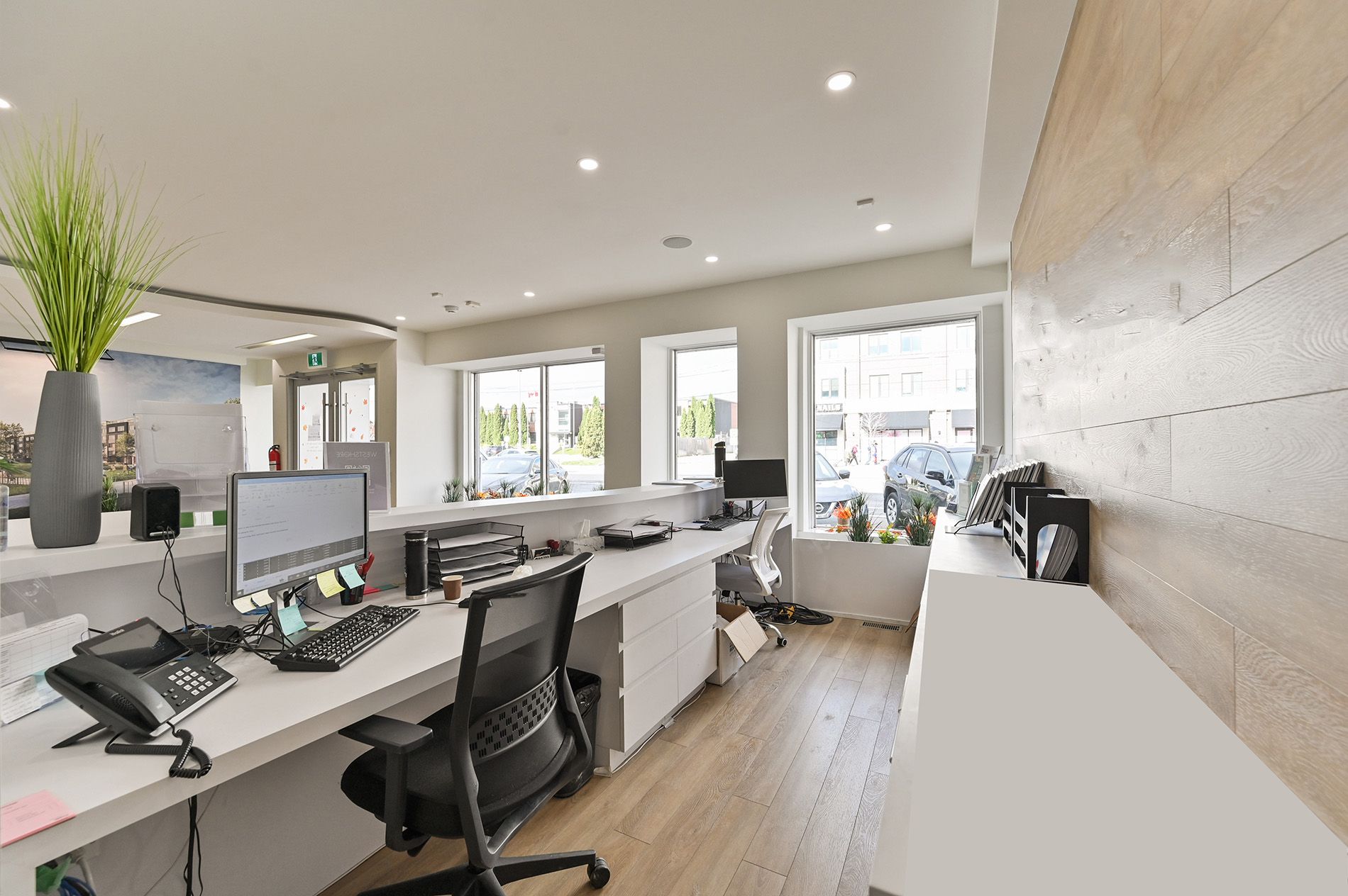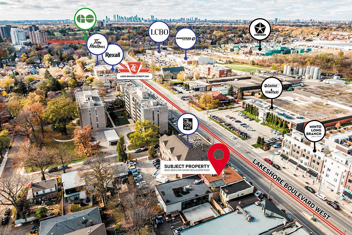 41' high visibility signage opportunity on lake shore blvd w with pedestrian traffic and ttc at your door! Located at the busy intersection of lake shore & long branch, the ground floor has 5,392 sf of fully-renovated retail space with large windows providing display opportunities and tons of natural light, high-end finishes, glass partitioned offices, a built-out reception area with back office space and a handicap accessible washroom as well as plenty of space, as well as access to 2,231 sf of basement storage space. Recently upgraded mechanicals in the building ensure low operating costs. Located on lake shore near humber college and long branch go with newly constructed residential homes in the area, and other complementary retailers to drive traffic to your business. Streetfront parking and limited parking available at the rear of the building. Second floor also for lease, mls#w12545806. Can be leased together or separately, each have their own private streetfront entrance.