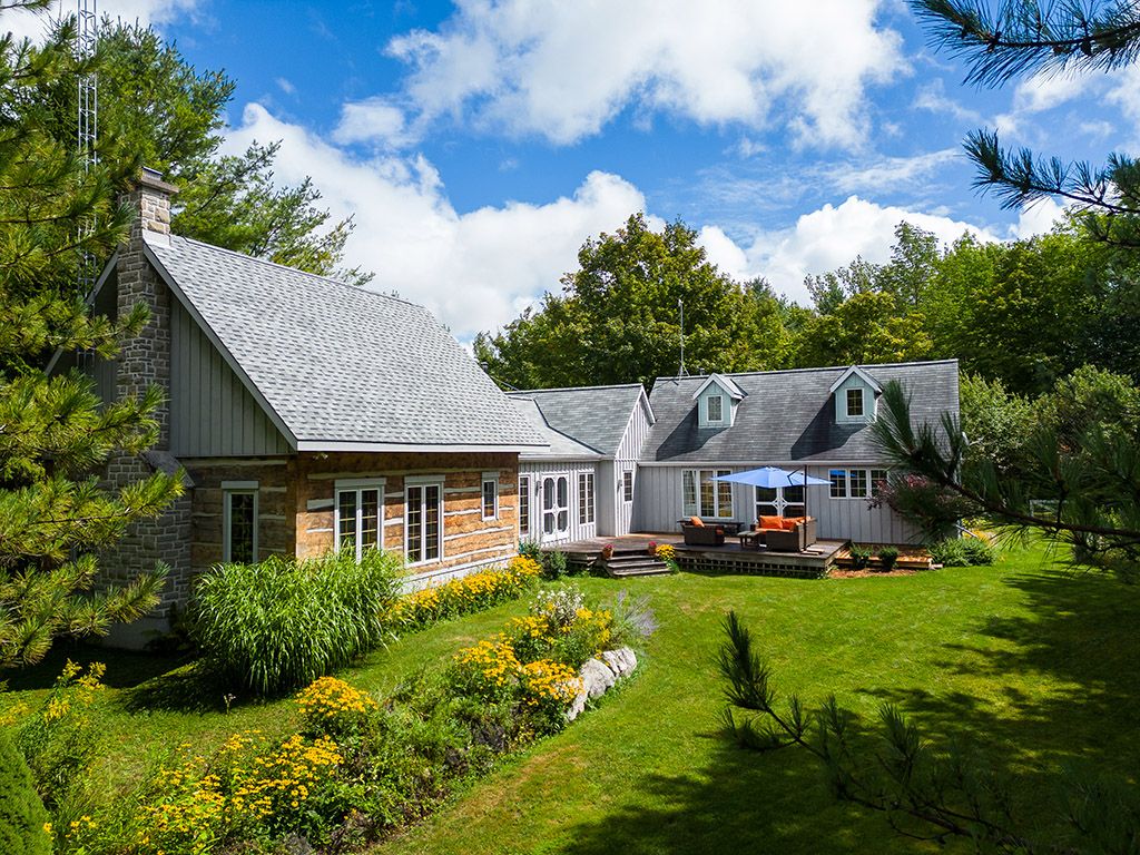 Welcome to this private and versatile 10-acre property in the heart of grey highlands. Tucked at the end of a quiet dead-end road it offers privacy with whimsical gardens, open spaces, expansive forest, walking and biking trails and several multi-purpose buildings. The main residence spans approximately 3,500 square feet and features 3 bedrooms and 3 bathrooms. The kitchen encompasses the dining room and a cozy sitting area with wood stove. With sub zero fridge, gas stove and maple cabinetry it welcomes the chef in the family. Walk out from the dining room to the deck surrounded by wildflowers and mature trees. The guest bedroom has a renovated 3pc ensuite bath and built ins for storage. A stunning 2005 log addition adds warmth and character with a rumford fireplace with limestone hearth, spacious primary bedroom with ensuite, walk-in closet. Pine floors run throughout, and a whitewashed loft provides additional sleeping space for the family, and has easy access to a 3pc bath off the kitchen. The entire house is sunlit filled with several rooms for gathering friends and family for a meal, or lively games. The lower level is unfinished, and includes a sauna, workshop, dark room, and plenty of storage. Plenty of room and unlimited potential. Steps away, the fully equipped guest house includes a kitchen, bathroom, and bedroom--ideal for guests or rental use. A handcrafted stone casita with a sleeping loft and wood-burning fireplace sits tucked in the woods, perfect for peaceful getaways or kids playhouse. The land features raised vegetable beds, a potting shed, wildflowers, apple trees. The setting is truly special. Enjoy trails throughout the forested acreage, ideal for hiking and mountain biking and snowshoeing. An open area lends itself to fun and games and it is adjacent to the tobogganing hill. It is less than 2 hours from the gta, and 10 minutes to beaver valley ski club, making this a perfect weekend retreat or seasonal base for nature lovers and ski families.