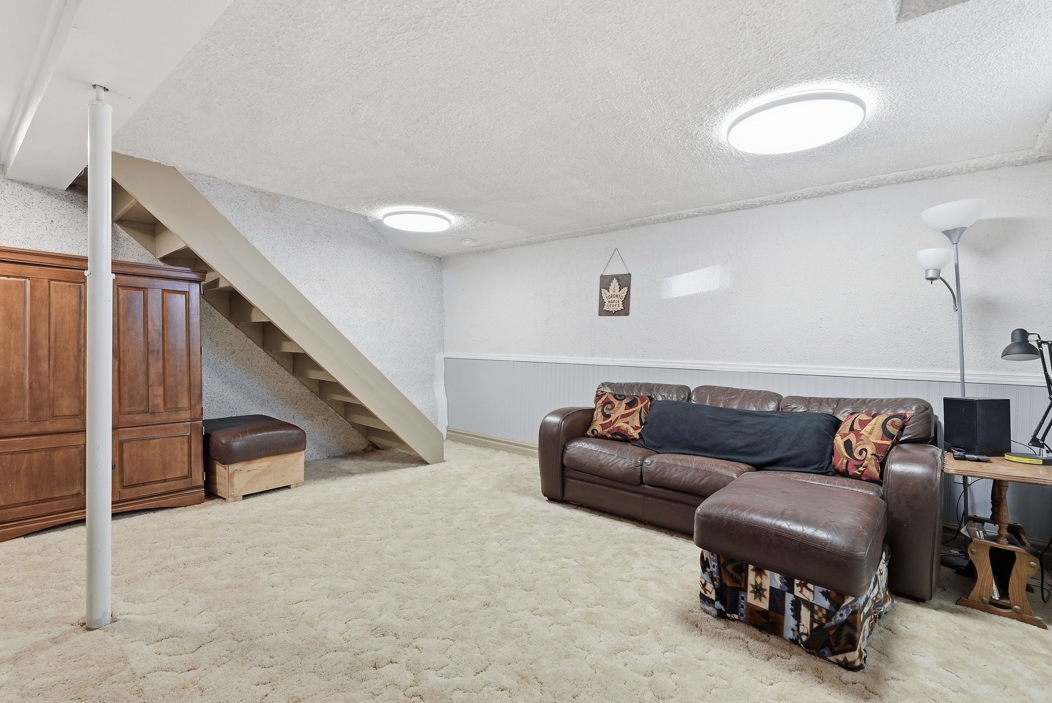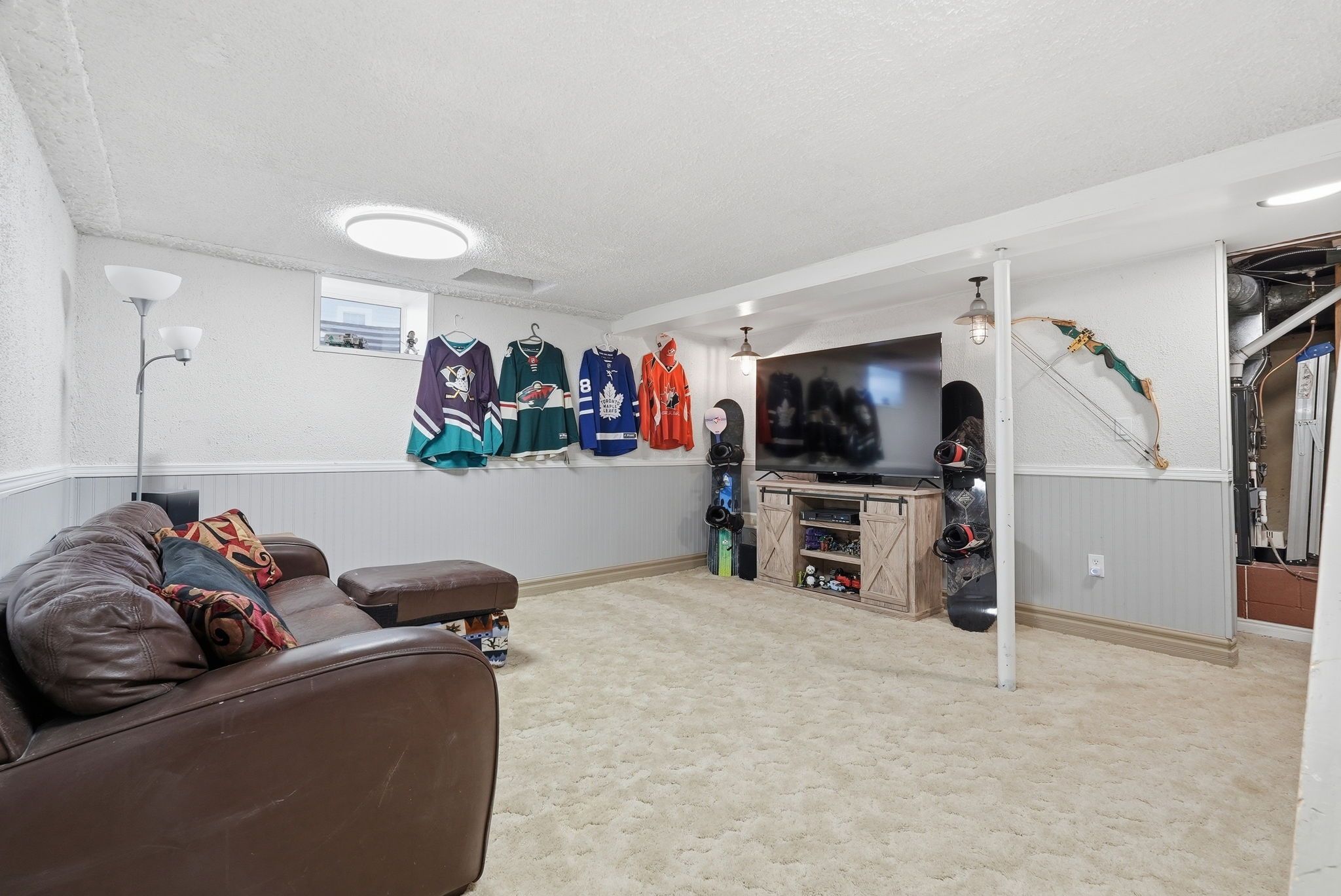 • Finished basement with rec room and additional bathroom for extra space.